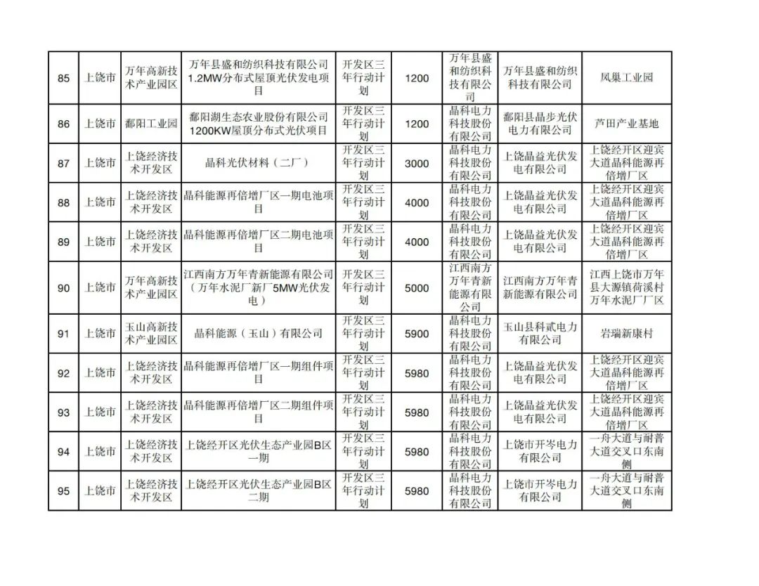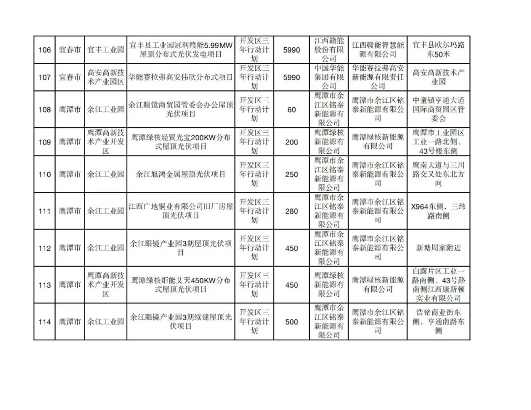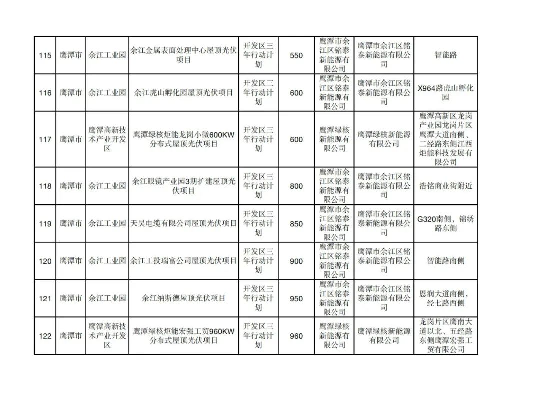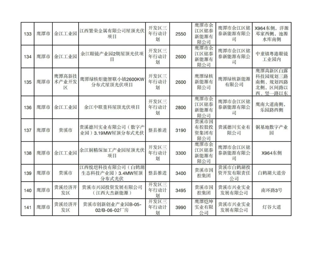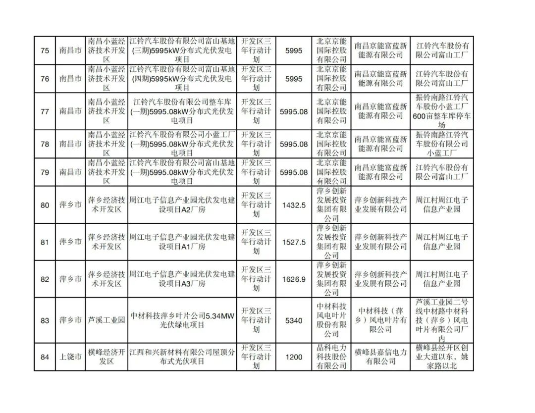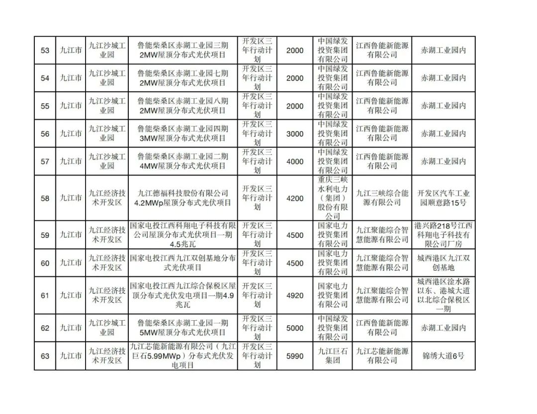 總體來看,國家能源集團(tuán)在第一批中獲取69.2MW規(guī)模,暫時仍列第一位;第二批中京能、晶科分別以56.4MW、47.1MW領(lǐng)跑第二批榜單,總榜則進(jìn)入TOP 3。其次則為貴溪市國有控股、國家電投、華能、贛能股份等企業(yè)緊隨其后。需要注意的是,相比于第一批優(yōu)選結(jié)果,第二批企業(yè)數(shù)量顯著增加,除大型央國企外,江西本土企業(yè)投資意愿高漲。 今年1月,江西省下發(fā)了《整體推進(jìn)開發(fā)區(qū)屋頂光伏建設(shè)三年行動計(jì)劃(2022-2024年)》的通知,明確了自2022年底,實(shí)現(xiàn)全省各開發(fā)區(qū)具備開發(fā)條件的屋頂光伏發(fā)電覆蓋度達(dá)到30%以上;到2023年底,全省各開發(fā)區(qū)具備開發(fā)條件的屋頂光伏發(fā)電覆蓋度達(dá)到60%以上;到2024年底,全省各開發(fā)區(qū)具備開發(fā)條件的屋頂光伏發(fā)電覆蓋度達(dá)到80%以上的發(fā)展目標(biāo)。 此外,文件明確為最大限度保障開發(fā)區(qū)行動計(jì)劃光伏發(fā)電建設(shè)目標(biāo)的實(shí)現(xiàn),省發(fā)展改革委(省能源局)將加強(qiáng)指導(dǎo)協(xié)調(diào),為列入開發(fā)區(qū)開發(fā)方案的光伏發(fā)電項(xiàng)目試行線上滾動納規(guī)并直接納入近期庫,同步試行線上月度優(yōu)選,對符合條件項(xiàng)目做到“應(yīng)納盡納”,優(yōu)選勝出的屋頂分布式光伏發(fā)電項(xiàng)目納入保障性規(guī)模。 本次公示結(jié)果為7月份優(yōu)選項(xiàng)目,江西省可再生能源信息中心預(yù)計(jì)將于8月25日17:00前對已通過開發(fā)區(qū)、設(shè)區(qū)市發(fā)改委審核節(jié)點(diǎn)的項(xiàng)目進(jìn)行校核,符合條件的擬入圍項(xiàng)目報(bào)省能源局確認(rèn)和公布。 具體文件見下: 江西省開發(fā)區(qū)三年行動計(jì)劃及整縣開發(fā)試點(diǎn)項(xiàng)目7月競爭性優(yōu)選結(jié)果 根據(jù)《江西省整體推進(jìn)開發(fā)區(qū)屋頂光伏建設(shè)三年行動計(jì)劃(2022-2024年)》(贛發(fā)改能源〔2022〕27號)與《江西省能源局關(guān)于進(jìn)一步做好整縣屋頂分布式光伏開發(fā)試點(diǎn)工作的通知》(贛能新能字〔2022〕29號)要求,江西省能源局組織開展了開發(fā)區(qū)三年行動計(jì)劃及整縣開發(fā)試點(diǎn)項(xiàng)目7月競爭性優(yōu)選工作,江西省可再生能源信息中心對項(xiàng)目材料進(jìn)行合規(guī)性審查,經(jīng)省能源局同意,現(xiàn)將優(yōu)選結(jié)果予以線上公布,請優(yōu)選勝出的項(xiàng)目落實(shí)優(yōu)選承諾按期建設(shè),并在可再生能源規(guī)劃項(xiàng)目庫管理系統(tǒng)中及時更新建設(shè)進(jìn)度。 公布渠道: 江西省可再生能源規(guī)劃項(xiàng)目庫管理系統(tǒng)、江西省可再生能源信息中心公眾號。 查詢方法: 1.電腦查詢:登錄江西省可再生能源規(guī)劃項(xiàng)目庫管理系統(tǒng)(https://rep.dpv-jx.org.cn),點(diǎn)擊“入庫項(xiàng)目公示”,進(jìn)入項(xiàng)目公示頁面進(jìn)行查詢。 2.手機(jī)查詢:進(jìn)入“江西省可再生能源信息中心”微信公眾號,點(diǎn)擊底欄“項(xiàng)目規(guī)劃-項(xiàng)目公示”,進(jìn)入項(xiàng)目公示頁面進(jìn)行查詢。 下月安排: 按照贛發(fā)改能源〔2022〕27號文件明確的“常態(tài)化納規(guī)、月度優(yōu)選”工作要求,省可再生能源信息中心將對8月25日17:00前已通過設(shè)區(qū)市發(fā)改委校核節(jié)點(diǎn)的開發(fā)區(qū)三年行動計(jì)劃及整縣開發(fā)試點(diǎn)項(xiàng)目進(jìn)行校核,符合條件的擬入圍項(xiàng)目報(bào)省能源局確認(rèn)和公布。 附件:江西省2022年7月開發(fā)區(qū)三年行動計(jì)劃及整縣開發(fā)試點(diǎn)競爭優(yōu)選入圍項(xiàng)目清單.pdf