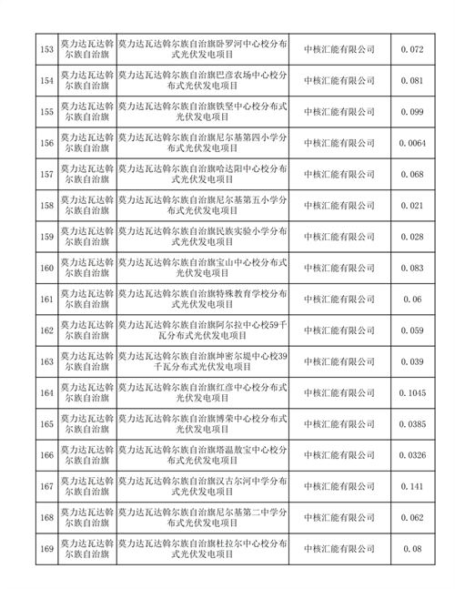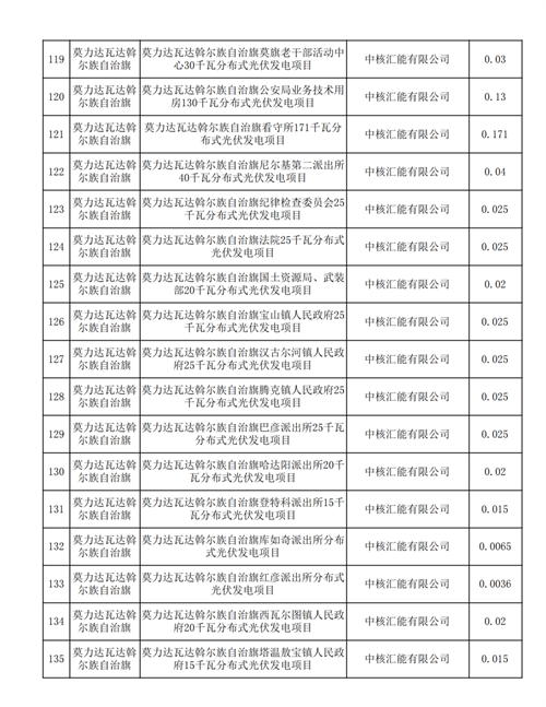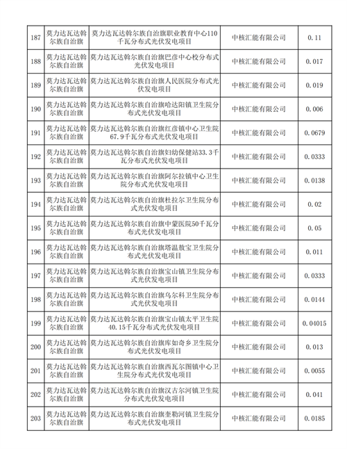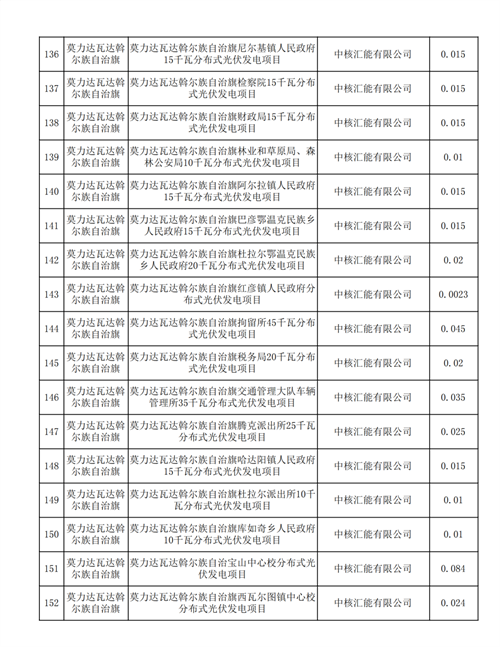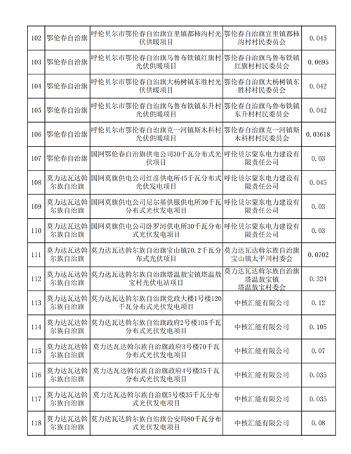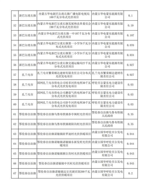 7月27日,呼倫貝爾市發(fā)展和改革委員會(huì)發(fā)布關(guān)于2022年度呼倫貝爾市分散式風(fēng)電、分布式光伏發(fā)電項(xiàng)目?jī)?yōu)選結(jié)果的公示。其中光伏項(xiàng)目71.01768MW、風(fēng)電項(xiàng)目28MW,合計(jì)99.01768MW。 原文如下: 呼倫貝爾市發(fā)展和改革委員會(huì)關(guān)于2022年度呼倫貝爾市分散式風(fēng)電、分布式光伏發(fā)電項(xiàng)目?jī)?yōu)選結(jié)果的公示 根據(jù)《內(nèi)蒙古自治區(qū)能源局關(guān)于印發(fā)〈內(nèi)蒙古自治區(qū)分散式風(fēng)電、分布式光伏發(fā)電項(xiàng)目三年行動(dòng)計(jì)劃(2021-2023年)〉的通知》(內(nèi)能新能字〔2021〕338號(hào))和《呼倫貝爾市發(fā)展和改革委員會(huì)關(guān)于開展2022年分散式風(fēng)電、分布式光伏發(fā)電項(xiàng)目競(jìng)爭(zhēng)配置工作的通知》(呼發(fā)改能源字〔2022〕339號(hào))要求,呼倫貝爾市發(fā)展改革委委托第三方機(jī)構(gòu)組織專家按照公平公正、科學(xué)客觀的原則,對(duì)各旗市區(qū)、呼倫貝爾經(jīng)濟(jì)技術(shù)開發(fā)區(qū)申報(bào)的項(xiàng)目進(jìn)行了客觀評(píng)分,經(jīng)征求國(guó)網(wǎng)呼倫貝爾供電公司接入和消納意見,優(yōu)選出了呼倫貝爾市2022年分散式風(fēng)電、分布式光伏發(fā)電項(xiàng)目名單,現(xiàn)予以公示。 公示期為2022年7月27日—29日。如對(duì)公示內(nèi)容有異議,請(qǐng)?jiān)诠酒谝詴嫘问教岢鲆庖姺答佒梁魝愗悹柺邪l(fā)展改革委新能源和可再生能源科。書面意見請(qǐng)寫明提出異議的事實(shí)依據(jù)和理由。單位提出意見應(yīng)注明單位名稱、地址、郵編、聯(lián)系人姓名、聯(lián)系方式等,并加蓋單位公章;個(gè)人提出意見應(yīng)注明姓名、身份證號(hào)碼、工作單位、地址、郵編和聯(lián)系方式。提出異議的單位或個(gè)人應(yīng)對(duì)異議材料的真實(shí)性和可靠性負(fù)責(zé),呼倫貝爾市發(fā)展改革委將對(duì)提出異議的單位和個(gè)人嚴(yán)格保密。對(duì)匿名或無(wú)事實(shí)依據(jù)的異議以及涉及自身利益的不正當(dāng)要求,不予受理。呼倫貝爾市發(fā)展改革委將對(duì)有效反饋意見認(rèn)真復(fù)核,對(duì)于反饋事實(shí)成立,影響優(yōu)選結(jié)果的相應(yīng)項(xiàng)目,不予納入2022年分散式風(fēng)電、分布式光伏發(fā)電項(xiàng)目建設(shè)規(guī)模。