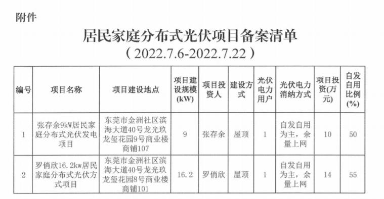8月1日,廣東省東莞市人民政府公布虎門鎮(zhèn)2022年第八期居民分布式光伏項(xiàng)目備案清單,張存余9kW居民家庭分布式光伏發(fā)電項(xiàng)目、羅俏欣16.2kW居民家庭分布式光伏項(xiàng)目成功獲批,項(xiàng)目建設(shè)規(guī)模合計(jì)25.2KW。 詳情如下: