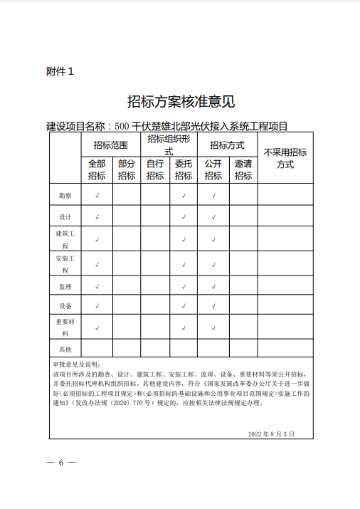 云南省發(fā)改委核準(zhǔn)批復(fù)云南500千伏楚雄北部光伏接入系統(tǒng)工程項目2022-08-11 15:17瀏覽數(shù):220次