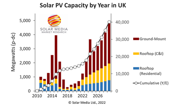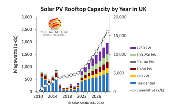 研究表明,英國光伏行業(yè)正在經(jīng)歷一場巨大的變化,如今已經(jīng)從2017~2018年基于生產(chǎn)的補貼(FiT和ROC)的終止而造成的沖擊中完全恢復(fù)。英國在2022年上半年安裝的光伏系統(tǒng)裝機容量達到0.5GW以上,今年將超過1GW。 現(xiàn)在人們關(guān)注的是2023年英國安裝的光伏系統(tǒng)裝機容量是多少,以及2023年能否安裝2GW光伏系統(tǒng),甚至不考慮英國最近進行的第四輪可再生能源差價合約(CfD)拍賣的影響。 如今英國光伏行業(yè)的所有發(fā)展指標(biāo)都暗示著將會實現(xiàn)一個更大的目標(biāo):到2030年初累計部署40GW光伏系統(tǒng)。 行業(yè)媒體Solar Media公司分析師日前撰寫一份研究報告,概述了英國如何到2030年實現(xiàn)累計安裝40GW光伏系統(tǒng)的目標(biāo),詳細研究了英國所有細分市場,以及在2023年至2029年期間可以在哪些方面增加額的24.2GW光伏系統(tǒng)。 這份報告還討論了將于2022年9月14日至15日在倫敦舉行的首屆英國光伏峰會的主要主題。本次活動主題演講者來自光伏行業(yè)相關(guān)廠商,這些公司將在英國從2023年至2029年期間投資和部署250億英鎊~300億英鎊中受益,預(yù)計這些資金將主要用于安裝光伏系統(tǒng),此外還闡述了如何參與本次會議(演講和參會)的更多詳細信息。 英國光伏市場處于增長模式 也許當(dāng)今英國光伏市場最令人興奮的動態(tài)是來自光伏市場各個細分市場貢獻,包括在屋頂光伏和地面安裝光伏發(fā)電場的市場活動,而這對于英國構(gòu)建增長強勁的光伏市場來說是關(guān)鍵舉措,因為總會存在導(dǎo)致某些細分市場發(fā)展暫時放緩的時期或季節(jié)性問題。 除了目前市場發(fā)展快速增長之外,另一個令人鼓舞的跡象是,英國在屋頂光伏和公用事業(yè)規(guī)模光伏發(fā)電場擬議/計劃擴建的項目裝機容量快速增長,事實上其增長遠遠超過了過去12~18個月安裝量的增長。 了解英國光伏市場的各處細分市場非常重要。在每個細分市場中,都有不同的市場驅(qū)動因素和不同的利益相關(guān)者(投資商、供應(yīng)商、安裝商、承購商等)。雖然一些光伏組件供應(yīng)商(少數(shù)組件和逆變器供應(yīng)商)涉足所有領(lǐng)域,但大多數(shù)供應(yīng)商傾向于專注于屋頂光伏或地面安裝光伏系統(tǒng)、住宅或商業(yè)、公共部門或私人融資等行業(yè)領(lǐng)域。 以下概述了到2030年英國屋頂光伏和地面安裝光伏市場的增長預(yù)測。 到2030年英國屋頂光伏市場的發(fā)展 屋頂光伏市場有兩個通用子類別:住宅和非住宅(商業(yè)和工業(yè)),然后再根據(jù)建造狀態(tài)將住宅光伏市場分為新建和改造兩部分。非住宅屋頂光伏系統(tǒng)按規(guī)模進行分類,而商業(yè)和工業(yè)屋頂光伏的命名區(qū)別是暫時的。 按安裝的規(guī)模劃分非住宅屋頂可以通過不同的方式完成。在上網(wǎng)電價補貼(FiT)T的早期以及屋頂可再生能源義務(wù)許可證(ROC),不同的基于生產(chǎn)的激勵范圍主要形成了商業(yè)屋頂光伏的細分市場(<4kW、4-~10kW、10~50kW等)。 然而,更恰當(dāng)?shù)淖龇ㄊ前磮龅仡愋蛣澐稚虡I(yè)屋頂光伏系統(tǒng),特別是考慮推動這部分市場的融資或商業(yè)模式。在這里有幾個因素需要考慮:業(yè)主融資或第三方投資;公共或私營部門;由同一實體占用/擁有的單個場地或全國性網(wǎng)點/場地。 事實上,擴大公共部門的傳統(tǒng)含義,將以類似方式運作但本身不從公共資金產(chǎn)生資金(或接受資本支出激勵)的其他部門包括在內(nèi)也是有意義的。 如今,這些屋頂光伏細分市場幾乎都處于高增長模式,其中一些細分市場增長更快。事實上,改造住宅光伏市場這一細分市場還沒有快速發(fā)展,而這是英國光伏行業(yè)的一部分,2010年首次引入上網(wǎng)電價補貼時,英國光伏行業(yè)推動了該領(lǐng)域的初步增長。 以下了解英國屋頂光伏系統(tǒng)的部署,其歷史回溯到2010年(實際值)并發(fā)展到2029年底(預(yù)測值)。圖1反映了英國住宅和屋頂光伏系統(tǒng)不同的規(guī)模,反映了上面討論的各種驅(qū)動因素,并將住宅光伏市場分為新建和改造。圖中顯示的(右側(cè)的垂直軸)是每年累積安裝屋頂光伏的裝機容量數(shù)據(jù)。 圖1 受到住宅市場反彈和大型屋頂光伏市場發(fā)展,2022年英國屋頂光伏市場進入新的增長階段 圖1表明,在未來七年(從023年至2029年),英國將安裝10.3GW的屋頂光伏系統(tǒng),其中包括4.2GW的屋頂光伏和6.1GW的商業(yè)/工業(yè)光伏系統(tǒng)。這個數(shù)值可能很低,這是因為屋頂光伏還有大量尚未開發(fā)的潛力,特別是改造住宅光伏市場部分。 屋頂光伏市場(與大型公用事業(yè)地面安裝光伏系統(tǒng)的市場相比)在部署確定性方面幾乎沒有風(fēng)險。而光伏行業(yè)的相關(guān)利益者似乎都完全支持屋頂光伏:政府部門、國會議員、地方議會、公眾,當(dāng)然還包括投入資金并為光伏組件提供支持的實體(業(yè)主、屋頂光伏支持者、新建筑的利益相關(guān)者)。 到2030年英國的地面安裝光伏系統(tǒng)的市場發(fā)展 到目前為止,地面安裝光伏系統(tǒng)一直是英國光伏市場最大的貢獻者(63%),到2022年底累計部署的地面安裝光伏系統(tǒng)達到15.8GW。這種增長將持續(xù)到2030年,但在這里需要考慮更多的警告和風(fēng)險因素。 地面安裝光伏系統(tǒng)是是英