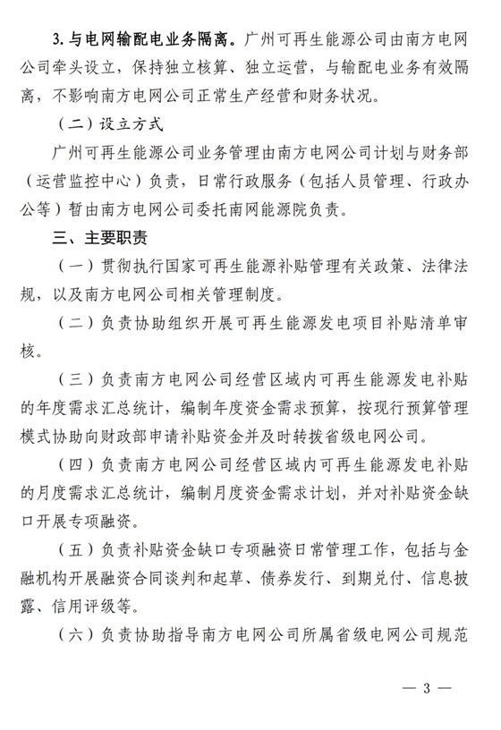 日前,為推動(dòng)可再生能源行業(yè)健康發(fā)展,助力實(shí)現(xiàn)碳達(dá)峰、碳中和目標(biāo),南方電網(wǎng)公司按照《國(guó)家發(fā)展改革委 財(cái)政部 國(guó)務(wù)院國(guó)資委關(guān)于授權(quán)設(shè)立北京、廣州可再生能源發(fā)展結(jié)算服務(wù)有限公司統(tǒng)籌解決可再生能源發(fā)電補(bǔ)貼問(wèn)題的復(fù)函》要求,研究成立廣州可再生能源發(fā)展結(jié)算服務(wù)有限公司(簡(jiǎn)稱“廣州可再生能源公司”)。 早在2020年下半年,中國(guó)可再生能源學(xué)會(huì)風(fēng)能專業(yè)委員會(huì)秘書(shū)長(zhǎng)秦海巖先生便撰寫(xiě)了《秦海巖:發(fā)行債券徹底解決可再生能源補(bǔ)貼支付滯后問(wèn)題》一文,詳談了“當(dāng)前是解決補(bǔ)貼拖欠問(wèn)題的最佳時(shí)機(jī)”,“發(fā)行債券解決可再生能源附加資金缺口是可行方式”,以及國(guó)家電網(wǎng)為何是首選的債券發(fā)行主體等內(nèi)容。 2年后,錘子終落定! 可再生能源長(zhǎng)期拖欠問(wèn)題一直是新能源行業(yè)企業(yè)發(fā)展的不可承受之重。 其實(shí),業(yè)內(nèi)一直希望通過(guò)借債解決補(bǔ)貼缺口,但鑒于未找到合適的操作方式以及涉及多方面利益博弈等原因,這一計(jì)劃始終未能成形。 在2020年下半年,業(yè)內(nèi)有眾多消息表明,國(guó)家主管部門(mén)正力推通過(guò)電網(wǎng)公司發(fā)行債券的形式解決可再生能源補(bǔ)貼拖欠的缺口問(wèn)題。 如今,解決方案已具象化。 據(jù)北極星電力網(wǎng)了解,廣州可再生能源公司將承擔(dān)可再生能源補(bǔ)貼資金管理業(yè)務(wù),并按市場(chǎng)化運(yùn)作。即,按照國(guó)家政策規(guī)定,開(kāi)展可再生能源補(bǔ)貼資金的統(tǒng)計(jì)和管理,以及缺口部分的專項(xiàng)融資和還本付息等工作。 該公司的市場(chǎng)化運(yùn)作具體解讀為,在財(cái)政撥款基礎(chǔ)上,補(bǔ)貼資金缺口按照市場(chǎng)化原則通過(guò)專項(xiàng)融資解決,專項(xiàng)融資本息在可再生能源發(fā)展基金預(yù)算中列支。 此外,該公司雖由南方電網(wǎng)公司牽頭設(shè)立,但保持獨(dú)立核算、獨(dú)立運(yùn)營(yíng),與輸配電業(yè)務(wù)有效隔離,不影響南方電網(wǎng)公司正常生產(chǎn)經(jīng)營(yíng)和財(cái)務(wù)狀。 運(yùn)營(yíng)后,該公司將主要負(fù)責(zé)補(bǔ)貼資金缺口專項(xiàng)融資日常管理工作,包括與金融機(jī)構(gòu)開(kāi)展融資合同談判和起草、債券發(fā)行、到期兌付、信息披露、信用評(píng)級(jí)等工作,以期解決可再生能源發(fā)電補(bǔ)貼缺口問(wèn)題。 同時(shí),北京可再生能源發(fā)展結(jié)算服務(wù)有限公司應(yīng)該也在國(guó)網(wǎng)的籌備下待成立或已成立,其設(shè)立的原則、方式及主要職責(zé)應(yīng)與廣州可再生能源公司類似。 文件如下: