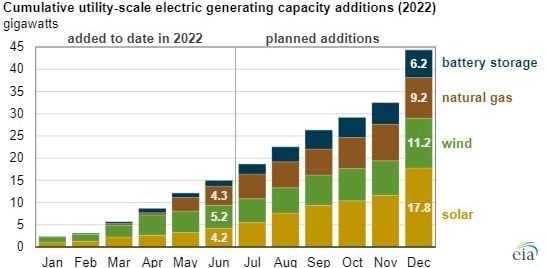 根據(jù)美國(guó)能源信息署(EIA)日前發(fā)布的一份調(diào)查報(bào)告,能源開(kāi)發(fā)商和項(xiàng)目規(guī)劃者預(yù)計(jì)美國(guó)在2022年下半年將新增29.4GW的發(fā)電量,幾乎是上半年新增的15.1GW的兩倍。 而今年下半年計(jì)劃新增的裝機(jī)容量中約有一半來(lái)自光伏系統(tǒng),預(yù)計(jì)新增13.6GW,其次是風(fēng)力發(fā)電,預(yù)計(jì)新增6GW。 在今年上半年,風(fēng)力發(fā)電占新增裝機(jī)容量15.1GW的比例最高,達(dá)5.2GW(占34%),其次是天然氣發(fā)電、光伏發(fā)電和電池儲(chǔ)能系統(tǒng)。 光伏系統(tǒng)新增裝機(jī)容量的預(yù)測(cè)已經(jīng)從2022年初的21.5GW降至現(xiàn)在的17.8GW。美國(guó)能源信息署(EIA)指出:“供應(yīng)鏈中與新冠疫情相關(guān)的挑戰(zhàn),以及美國(guó)商務(wù)部的關(guān)稅調(diào)查可能是造成這種下降的原因?!?/span> 此外,據(jù)《華爾街日?qǐng)?bào)》在8月9日?qǐng)?bào)道,美國(guó)光伏行業(yè)正面臨新的供應(yīng)中斷,因?yàn)樵谶^(guò)去幾周中,幾家國(guó)外光伏電池板供應(yīng)商的光伏組件被扣留或被退回。 盡管面臨這些挑戰(zhàn),可再生能源發(fā)電仍引領(lǐng)美國(guó)2022年的新增產(chǎn)能計(jì)劃。預(yù)計(jì)《降低通貨膨脹法案》將通過(guò)新的和更新的稅收優(yōu)惠以激勵(lì)美國(guó)可再生能源和其他清潔能源的發(fā)展。 美國(guó)能源信息署(EIA)預(yù)計(jì)將今年將有44.4GW的公用事業(yè)規(guī)模發(fā)電容量上線運(yùn)營(yíng),其中光伏系統(tǒng)處于領(lǐng)先地位(17.8GW),其次是風(fēng)力發(fā)電(11.2GW)、天然氣發(fā)電(9.2GW)和電池儲(chǔ)能系統(tǒng)(6.2GW)。