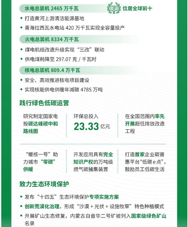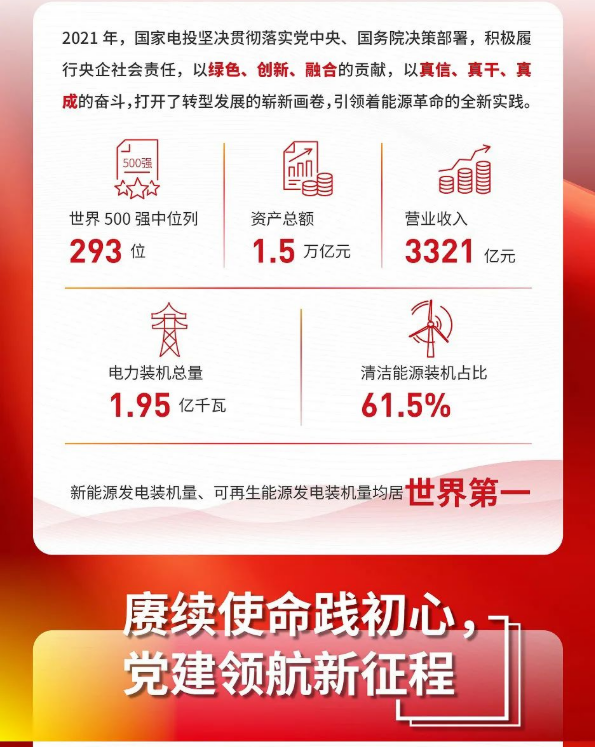 8月23日,國家電投發(fā)布《國家電力投資集團有限公司企業(yè)社會責(zé)任報告(2021)》,這是國家電投自2015年重組成立以來連續(xù)第7年發(fā)布企業(yè)社會責(zé)任報告。 2021年,國家電投電力裝機總量1.95億千瓦,清潔能源裝機占比61.5%,光伏總裝機4113萬千瓦,風(fēng)電3823萬千瓦,水電2465萬千瓦,火電8334萬千瓦,核電809.4萬千瓦。新能源發(fā)電裝機量、可再生能源發(fā)電裝機量均居世界第一。