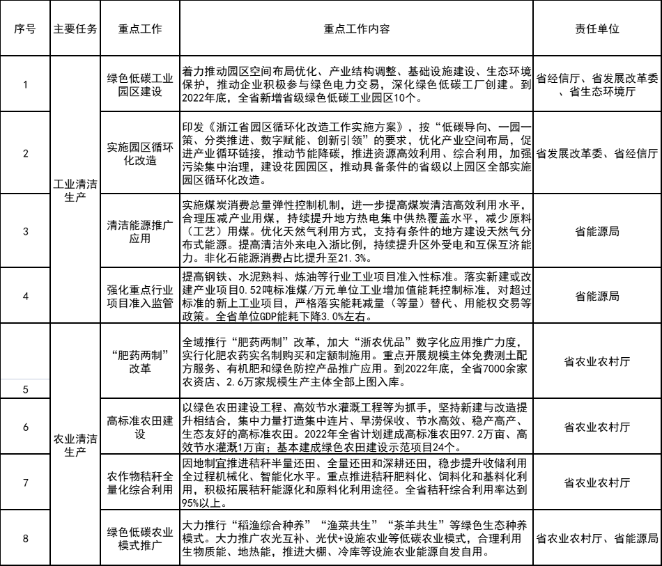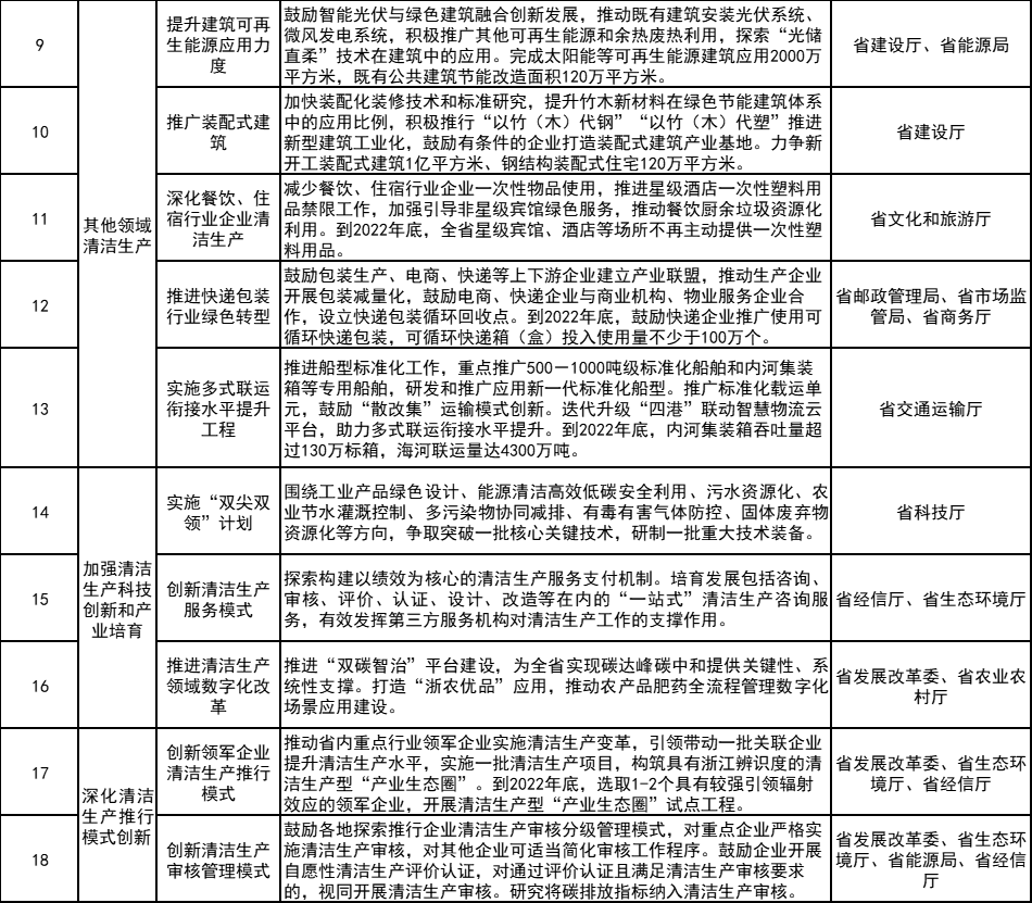 8月8日,浙江省發(fā)展改革委 省生態(tài)環(huán)境廳 省經(jīng)信廳 省科技廳 省財(cái)政廳 省建設(shè)廳 省交通運(yùn)輸廳 省農(nóng)業(yè)農(nóng)村廳 省商務(wù)廳 省市場(chǎng)監(jiān)管局 關(guān)于印發(fā)《浙江省清潔生產(chǎn)推行方案(2022—2025年)》的通知,通知指出,大力推廣農(nóng)光互補(bǔ)、光伏+設(shè)施農(nóng)業(yè)等低碳農(nóng)業(yè)模式,合理利用生物質(zhì)能、地?zé)崮?,逐步減少設(shè)施農(nóng)業(yè)對(duì)化石燃料需求,推進(jìn)大棚、冷庫(kù)等設(shè)施農(nóng)業(yè)能源自發(fā)自用。 提高新建建筑節(jié)能設(shè)計(jì)標(biāo)準(zhǔn),推進(jìn)既有建筑和市政基礎(chǔ)設(shè)施節(jié)能改造,組織開展建筑領(lǐng)域綠色低碳技術(shù)與政策研究。提升建筑可再生能源應(yīng)用力度,鼓勵(lì)智能光伏與綠色建筑融合創(chuàng)新發(fā)展,鼓勵(lì)既有建筑安裝光伏系統(tǒng),探索應(yīng)用微風(fēng)發(fā)電系統(tǒng),積極推廣其他可再生能源和余熱廢熱利用,探索“光儲(chǔ)直柔”技術(shù)在建筑中的應(yīng)用。到2025年,新建民用建筑設(shè)計(jì)節(jié)能率達(dá)75%,裝配式建筑占新建建筑比例達(dá)35%。強(qiáng)化綠色低碳建筑的建設(shè)管理、評(píng)估審查、能效監(jiān)測(cè)等。(省建設(shè)廳)大力發(fā)展鋼結(jié)構(gòu)等裝配式建筑,鼓勵(lì)有條件的企業(yè)打造裝配式建筑產(chǎn)業(yè)基地,加快推進(jìn)裝配化裝修。 原文如下: 各市、縣(市、區(qū))人民政府,省級(jí)有關(guān)單位: 為貫徹落實(shí)《清潔生產(chǎn)促進(jìn)法》《“十四五”全國(guó)清潔生產(chǎn)推行方案》,經(jīng)省政府同意,現(xiàn)將《浙江省清潔生產(chǎn)推行方案(2022—2025年)》印發(fā)給你們,請(qǐng)結(jié)合實(shí)際認(rèn)真組織實(shí)施。 附件:《浙江省清潔生產(chǎn)推行方案(2022—2025年)》 浙江省發(fā)展和改革委員會(huì) 浙江省生態(tài)環(huán)境廳 浙江省經(jīng)濟(jì)和信息化廳 浙江省科學(xué)技術(shù)廳 浙江省財(cái)政廳 浙江省住房和城鄉(xiāng)建設(shè)廳 浙江省交通運(yùn)輸廳 浙江省農(nóng)業(yè)農(nóng)村廳 浙江省商務(wù)廳 浙江省市場(chǎng)監(jiān)督管理局 2022年8月8日 浙江省清潔生產(chǎn)推行方案 (2022—2025年) 推行清潔生產(chǎn)是貫徹落實(shí)節(jié)約資源和保護(hù)環(huán)境基本國(guó)策的重要舉措,是推進(jìn)生態(tài)文明建設(shè)、推動(dòng)減污降碳協(xié)同增效的重要內(nèi)容,是加快推進(jìn)綠色高質(zhì)量發(fā)展、促進(jìn)經(jīng)濟(jì)社會(huì)全面綠色轉(zhuǎn)型的有效途徑。為貫徹落實(shí)《清潔生產(chǎn)促進(jìn)法》《“十四五”全國(guó)清潔生產(chǎn)推行方案》,加快推行清潔生產(chǎn),制定本方案。 一、總體要求 (一)指導(dǎo)思想。堅(jiān)持以習(xí)近平新時(shí)代中國(guó)特色社會(huì)主義思想為指導(dǎo),以節(jié)約資源、降低能耗、減污降碳、提質(zhì)增效為目標(biāo),以清潔生產(chǎn)審核為抓手,系統(tǒng)推進(jìn)工業(yè)、農(nóng)業(yè)、服務(wù)業(yè)等領(lǐng)域清潔生產(chǎn),加快實(shí)施重點(diǎn)行業(yè)、重點(diǎn)領(lǐng)域清潔生產(chǎn)改造,綜合集成技術(shù)、數(shù)字、制度、管理等領(lǐng)域創(chuàng)新舉措,積極探索大企業(yè)帶動(dòng)、大圈層協(xié)同清潔生產(chǎn)推進(jìn)新模式,積極推動(dòng)碳排放管理領(lǐng)軍企業(yè)帶動(dòng)傳統(tǒng)企業(yè)協(xié)同減排新方法,培育壯大清潔生產(chǎn)第三方服務(wù),促進(jìn)實(shí)現(xiàn)碳達(dá)峰碳中和目標(biāo),努力打造美麗中國(guó)先行示范區(qū)、高質(zhì)量發(fā)展建設(shè)共同富裕示范區(qū)。 (二)主要目標(biāo)。到2025年,清潔生產(chǎn)推行制度體系基本建立,高水平全面推行工業(yè)領(lǐng)域清潔生產(chǎn),深層次創(chuàng)新推進(jìn)農(nóng)業(yè)、服務(wù)業(yè)、建筑業(yè)、交通運(yùn)輸業(yè)等領(lǐng)域清潔生產(chǎn),寬領(lǐng)域探索實(shí)施清潔生產(chǎn)新模式、新技術(shù)、新產(chǎn)品,全省清潔生產(chǎn)水平大幅提升,能源資源利用效率顯著提高,重點(diǎn)行業(yè)污染物和碳排放強(qiáng)度明顯降低。 到2025年,工業(yè)能效、水效大幅提升,化學(xué)需氧量、氨氮、氮氧化物、揮發(fā)性有機(jī)物排放下降完成國(guó)家下達(dá)指標(biāo),全省單位GDP能耗降低14.5%,主要資源產(chǎn)出率較2020年提高20%,新增高效節(jié)水灌溉面積12萬(wàn)畝,廢舊農(nóng)膜回收率達(dá)90%,秸稈綜合利用率穩(wěn)定在96%以上,新建民用建筑設(shè)計(jì)節(jié)能率達(dá)75%,主城區(qū)公共領(lǐng)域車輛新能源化比例達(dá)80%。 二、突出抓好工業(yè)清潔生產(chǎn) (三)加快構(gòu)建綠色制造體系。深入實(shí)施綠色制造工程,推行工業(yè)產(chǎn)品綠色設(shè)計(jì),開發(fā)工業(yè)綠色產(chǎn)品,培育龍頭企業(yè)打造綠色供應(yīng)鏈,培育綠色制造服務(wù)體系。推進(jìn)綠色低碳工業(yè)園區(qū)建設(shè),著力推動(dòng)園區(qū)空間布局優(yōu)化、產(chǎn)業(yè)結(jié)構(gòu)調(diào)整、基礎(chǔ)設(shè)施建設(shè)、生態(tài)環(huán)境保護(hù),推動(dòng)企業(yè)積極參與綠色電力交易,深化綠色低碳工廠創(chuàng)建。到2025年,建成綠色低碳