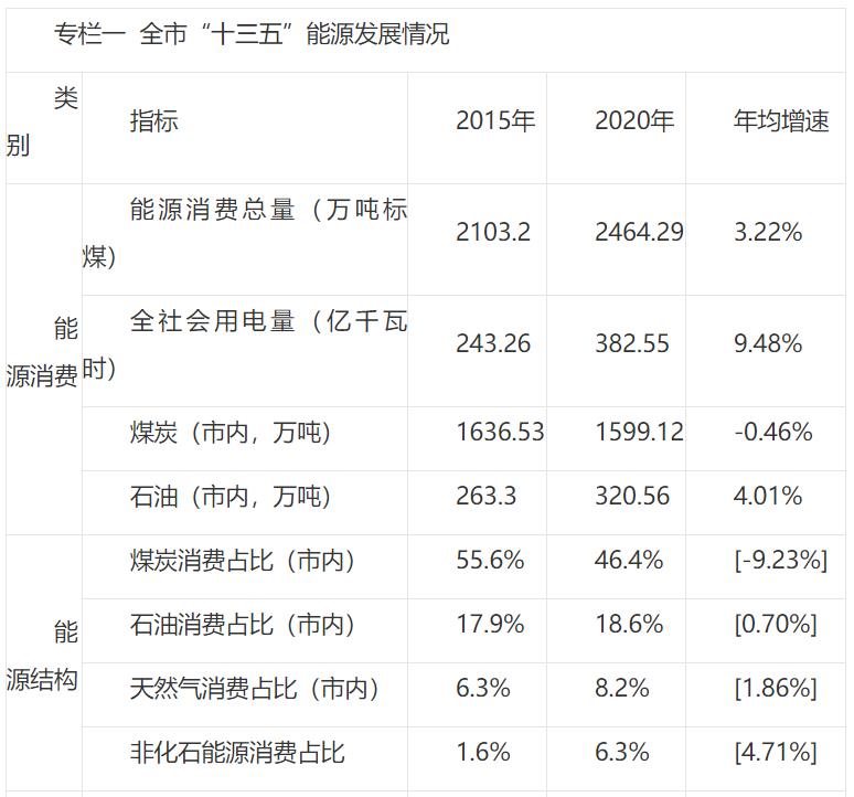 2.能源基礎(chǔ)設(shè)施不斷完善,保障能力持續(xù)增強(qiáng) 電力供應(yīng)能力顯著提升?!笆濉逼陂g,全市新增發(fā)電裝機(jī)332萬千瓦,其中神皖廬江電廠裝機(jī)容量2×66萬千瓦,是安徽省能源發(fā)展“十三五”規(guī)劃的燃煤火電項(xiàng)目和省“861”重點(diǎn)建設(shè)項(xiàng)目。全市新增可再生能源近200萬千瓦,特別是光伏發(fā)電高速增長,新增裝機(jī)178萬千瓦。截至2020年底,全社會發(fā)電裝機(jī)達(dá)到731萬千瓦、年發(fā)電量249.55億千瓦時(shí),較2015年分別增長83.08%、42.26%。全市新建500千伏龍門變,擴(kuò)建500千伏長臨河變、肥西變,新增220千伏變電站8座。截至2020年底,合肥電網(wǎng)擁有500千伏變電站4座、總?cè)萘?000萬千伏安,220千伏變電站37座、總?cè)萘?374萬千伏安,電力供應(yīng)能力總體充裕。 燃?xì)庠O(shè)施建設(shè)進(jìn)度加快。截至2020年底,全市建成定合支線、定合復(fù)線等天然氣長輸管線8條,省級主環(huán)管網(wǎng)機(jī)場至六安段基本建設(shè)完成,廬北至池州高壓管線和巢湖至江北產(chǎn)業(yè)集中區(qū)干線正在加快推進(jìn)。全市擁有6家城鎮(zhèn)燃?xì)饨?jīng)營企業(yè),城燃管網(wǎng)累計(jì)長度約10863公里,基本覆蓋主城區(qū)和周邊城鎮(zhèn)。全市擁有應(yīng)急調(diào)峰儲配站6座,儲罐總規(guī)模約3.6萬立方米(液態(tài)儲備規(guī)模),可滿足緊急情況下全市域3天的天然氣需求量。 供熱服務(wù)范圍不斷擴(kuò)大。“十三五”期間,全市共有供熱熱源18座、冷暖聯(lián)供綜合能源站1座,總供熱規(guī)模達(dá)16522噸/時(shí),其中10座熱源已實(shí)現(xiàn)對外供熱。全市敷設(shè)熱網(wǎng)干管607公里,總供熱能力超過3300噸/時(shí),其中主城區(qū)集中供熱負(fù)荷1992噸/時(shí),供熱總面積超過2500萬平方米,實(shí)現(xiàn)集中供熱的工商業(yè)戶400余家,居民小區(qū)約200個(gè),居民約12萬戶。全市采用生物質(zhì)、天然氣、太陽能、地?zé)岬惹鍧嵞茉垂崦娣e已達(dá)到200萬平方米,清潔能源供熱占比約為8.7%,逐步形成夏熱冬冷城市集中供熱、冷暖聯(lián)供的“合肥模式”。 3.能源消費(fèi)強(qiáng)度逐年下降,節(jié)能降耗成效顯著 單位GDP能耗持續(xù)下降。2020年,全市單位GDP能耗為0.2913噸標(biāo)煤/萬元,處于全國先進(jìn)水平?!笆濉币詠砣心茉聪M(fèi)強(qiáng)度累計(jì)下降19.15%,超額完成了省下達(dá)能耗強(qiáng)度下降17%的目標(biāo)任務(wù)。 重點(diǎn)領(lǐng)域節(jié)能工作穩(wěn)步推進(jìn)?!笆濉逼陂g,全市工業(yè)、交通、建筑、商業(yè)等重點(diǎn)領(lǐng)域節(jié)能工作成效顯著,35噸/時(shí)及以下燃煤小鍋爐全部完成清潔能源替代或關(guān)停,8臺大、中型燃煤發(fā)電機(jī)組全部實(shí)現(xiàn)超低排放。2020年,全市火電平均供電煤耗299克標(biāo)煤/千瓦時(shí),較2015年下降3.95克標(biāo)煤/千瓦時(shí);全市電網(wǎng)線損率4.2%,較2015年下降3.26個(gè)百分點(diǎn);全市工業(yè)企業(yè)能源消費(fèi)占全社會能源消費(fèi)總量的比重為41.3%,較2015年下降3.3個(gè)百分點(diǎn)。 4.能源消費(fèi)結(jié)構(gòu)持續(xù)優(yōu)化,可再生能源占比提升 可再生能源快速發(fā)展。全市可再生能源發(fā)電裝機(jī)容量由2015年的50萬千瓦增長到2020年的245萬千瓦,裝機(jī)比重由12.5%增加到33.5%。2020年,全市光伏裝機(jī)規(guī)模達(dá)到214萬千瓦,占全社會電力總裝機(jī)規(guī)模的29.3%,位居全國省會城市前列。全市可再生能源發(fā)電量由2015年的3.6億千瓦時(shí)增長到2020年的28.13億千瓦時(shí),2020年可再生能源發(fā)電量占全社會發(fā)電量的11.3%、全社會用電量的7.4%。全市先后被國家能源局列為國家新能源示范城市、國家分布式光伏應(yīng)用示范區(qū)。 清潔能源消費(fèi)比重持續(xù)提升。全市天然氣消費(fèi)比重由2015年的6.3%提升至2020年的8.2%,非化石能源消費(fèi)比重由2015年的1.6%提升至2020年的6.3%。市內(nèi)煤炭消費(fèi)比重由2015年的55.6%下降到2020年的46.4%。 5.能源產(chǎn)業(yè)規(guī)模不斷擴(kuò)大,新能源科技快速發(fā)展 光伏產(chǎn)業(yè)得到迅猛發(fā)展。集聚形成光伏玻璃—電池片—組件—逆變器—儲能系統(tǒng)—發(fā)電工程等較為完整的產(chǎn)業(yè)鏈,形成以光伏逆變器、電池片、組件企業(yè)為龍頭引領(lǐng),光伏玻璃、邊框支架、儲能系統(tǒng)、系統(tǒng)集成上下游產(chǎn)業(yè)為支撐的產(chǎn)業(yè)格局,世界級光伏產(chǎn)業(yè)集群初具雛形。截至2020年底,電池片、組件、逆變器等主要產(chǎn)品綜合出貨量超過50吉瓦,光伏控制、逆變設(shè)備出貨量繼續(xù)穩(wěn)居行業(yè)首位,光伏逆變器、儲能系統(tǒng)、晶硅電池片、高效組件等產(chǎn)品處于行業(yè)領(lǐng)先水平。 新能源汽車發(fā)展態(tài)勢良好。形成了“整車—電池—電機(jī)—電控”產(chǎn)業(yè)鏈,擁有蔚來、江淮、大眾、安凱、長安、比亞迪、中創(chuàng)新航等汽車品牌,形成以國軒高科、華霆?jiǎng)恿?、凱博能源、巡鷹新能源為代表的動力電池企業(yè),以巨一動力為代表的電機(jī)及控制系統(tǒng)生產(chǎn)企業(yè),以國網(wǎng)電力、合肥充電為代表的充電設(shè)施建設(shè)運(yùn)營服務(wù)企業(yè)。 核聚變能源應(yīng)用邁出重要一步。合肥“人造小太陽”全