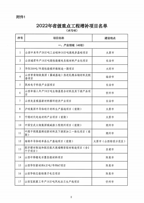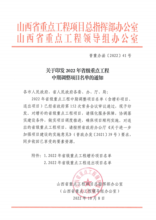 10月9日,山西省重點(diǎn)工程項(xiàng)目總指揮部辦公室(山西省重點(diǎn)工程領(lǐng)導(dǎo)組辦公室)公開發(fā)布《關(guān)于印發(fā)2022年省級(jí)重點(diǎn)工程中期調(diào)整項(xiàng)目名單的通知》。強(qiáng)調(diào)對(duì)增補(bǔ)項(xiàng)目請(qǐng)強(qiáng)化服務(wù)保障、協(xié)調(diào)落實(shí)建設(shè)條件、做實(shí)調(diào)度推進(jìn)并確保順利實(shí)施,對(duì)退出項(xiàng)目請(qǐng)按要求同步收回已享受的要素資源。 中期調(diào)整, 增補(bǔ)項(xiàng)目72項(xiàng)、退出項(xiàng)目18項(xiàng)。其中,山西中來年產(chǎn)20萬噸工業(yè)硅和10萬噸高純多晶硅項(xiàng)目進(jìn)入2022年省級(jí)重點(diǎn)工程增補(bǔ)項(xiàng)目名單。 原文如下: