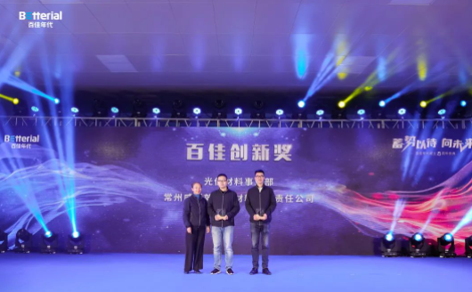 圖//百佳年代董事長茹正偉致辭 茹正偉董事長提到,百佳年代創(chuàng)辦十五年來,緊跟市場發(fā)展趨勢,從最初涉足家居裝飾、制卡領域,到現(xiàn)在深度布局光伏行業(yè),進駐消費電子和鋰電市場等,業(yè)務實現(xiàn)了多元化發(fā)展。從初創(chuàng)百余人的常州基地到如今鹽城、咸陽、滁州、越南五大生產基地1700多名員工的全球化企業(yè),公司經營版圖穩(wěn)健擴張。十五年間,公司從千萬營收發(fā)展為如今幾十億銷售體量,業(yè)績呈破竹勢增長。順利完成股改,成功引進中石化、國電投、招商局、三峽資本等優(yōu)質股東加持,籌備進軍資本市場。全球五大基地光伏封裝膠膜產能未來年規(guī)劃產能將達100GW。 深耕高分子功能薄膜市場十五載,公司高度重視技術研發(fā)和科研成果轉化,成立了新材料研究院,打造了百佳年代創(chuàng)新應用平臺。并于2020年被國家工信部認定為第二批專精特新“小巨人”企業(yè),被江蘇省科技廳認定為“江蘇省柔性顯示與照明新材料工程技術研究中心”。截至2022年8月,公司累計申請專利 257 項(含分子公司),其中已授權有效發(fā)明專利 39 項。公司推出的應用于鈣鈦礦、異質結、N-TOPCon等新型高效電池組件封裝解決方案,具有行業(yè)領先水平。除注重自身科研能力提升外,百佳年代還陸續(xù)加入中國光伏行業(yè)協(xié)會、中國光伏行業(yè)協(xié)會標準委員會、組件回收產業(yè)發(fā)展中心、雙向拉伸聚酯薄膜薄膜專業(yè)委員會會員單位等行業(yè)權威平臺,積極參與行業(yè)技術交流、行業(yè)標準制定等,為新材料產業(yè)發(fā)聲,在新材料領域獲得了相當?shù)钠放泼雷u度。 全球能源轉型已是大勢所趨,在全球“碳中和”目標、清潔能源轉型的推動下,預計2025 年全球光伏年新增裝機量將達到400GW左右,光伏將成為未來清潔能源發(fā)展的主力軍。公司將持續(xù)深耕光伏賽道,不斷推出高可靠性、高增益率的封裝膠膜解決方案,助力光伏行業(yè)發(fā)展。茹正偉董事長表示,未來除了持續(xù)做優(yōu)做強現(xiàn)有的光伏、鋰電產業(yè)外,公司也將積極開發(fā)新興清潔能源領域的新產品、新技術,為公司未來可持續(xù)發(fā)展做技術儲備。積極與國內外知名高校、科研機構展開深入交流,加強“產學研”項目合作,推進科研項目的成果轉化,積極探尋突破性、甚至是顛覆性的產品技術研究,進一步夯實公司的科研實力和“高分子功能薄膜創(chuàng)新應用專家”的形象。 表彰先進百佳系列獎項揭曉