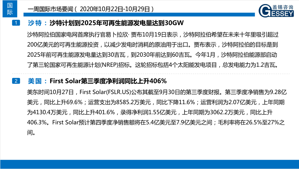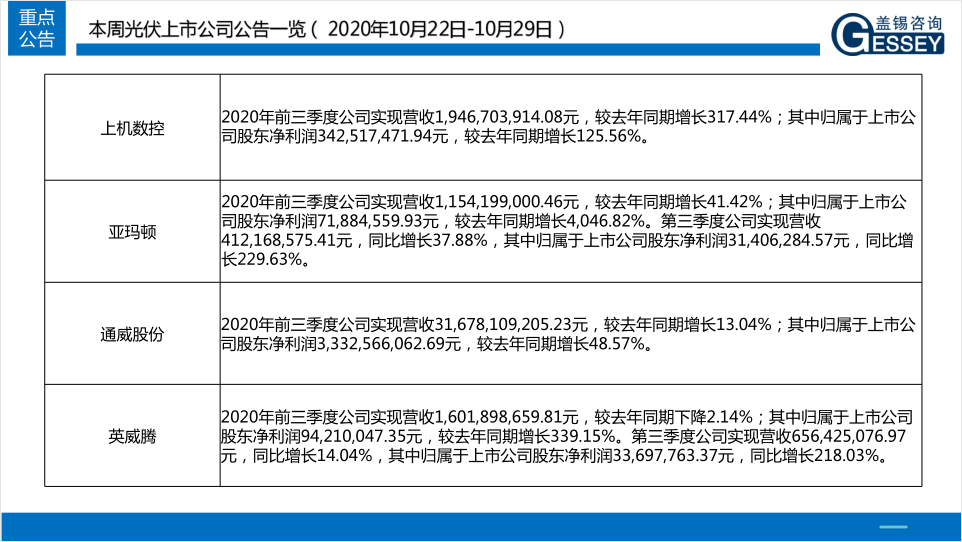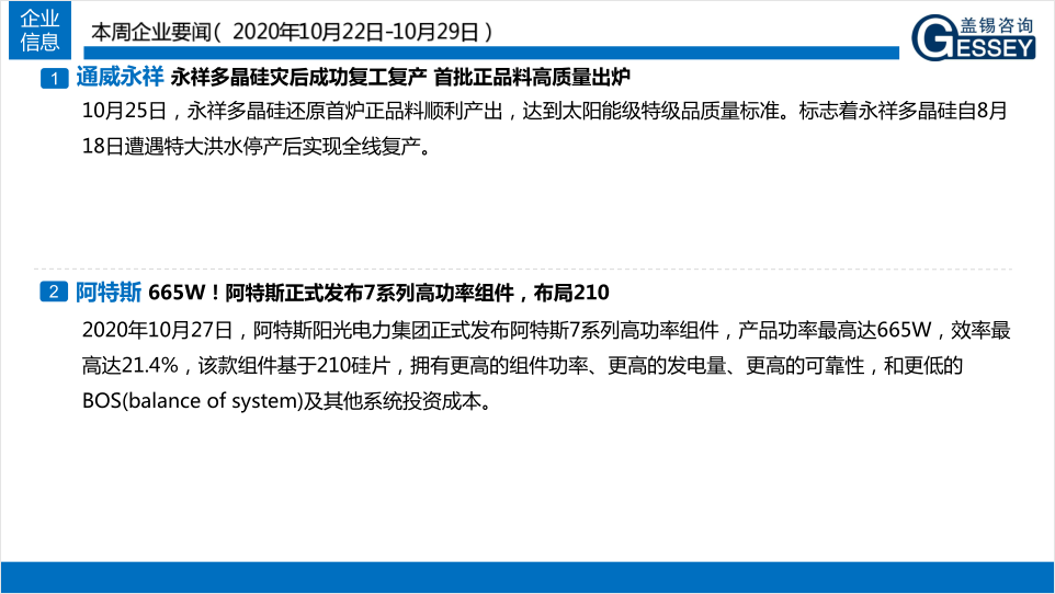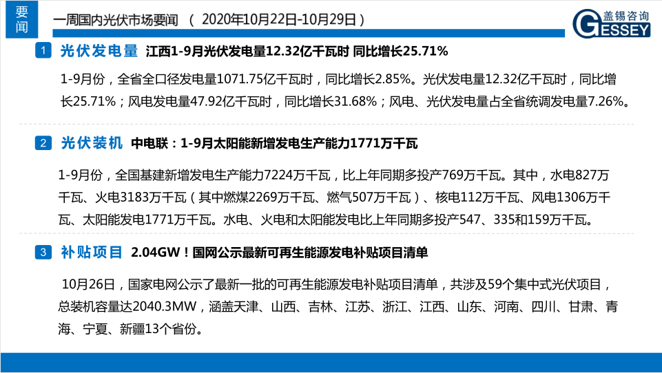 一周光伏市場洞察(2020年10月22日-10月29日)