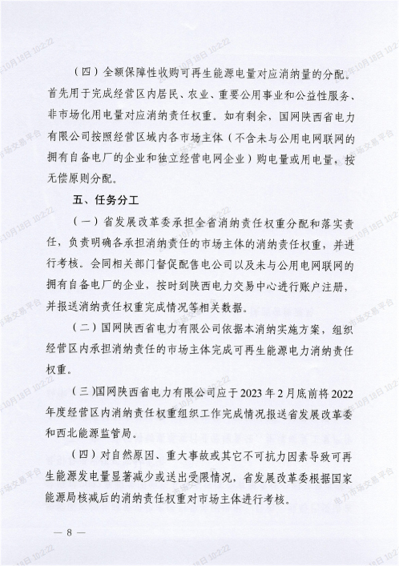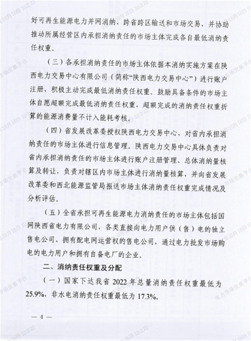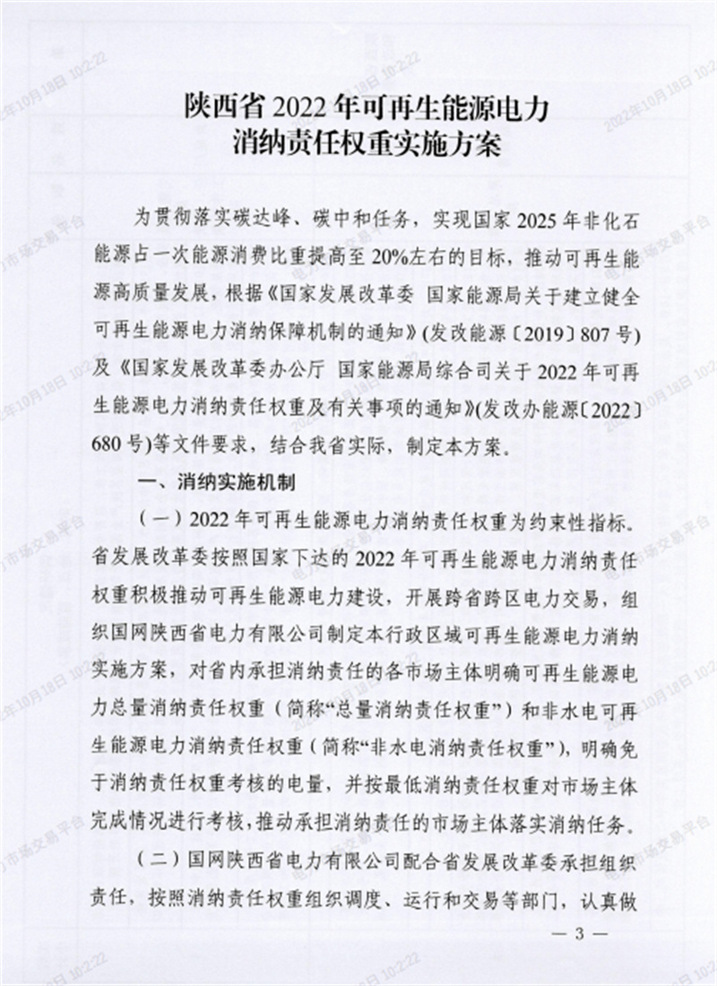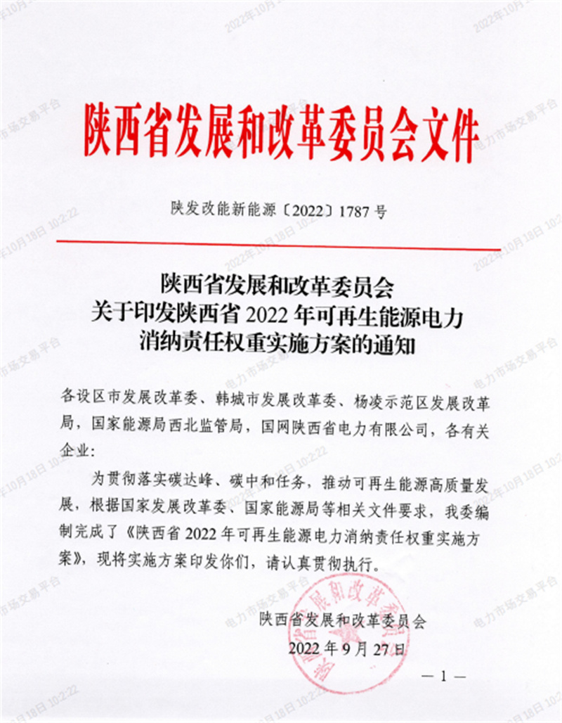 日前,陜西省發(fā)改委發(fā)布陜西省2022年可再生能源電力消納責(zé)任權(quán)重實(shí)施方案。 ![]()