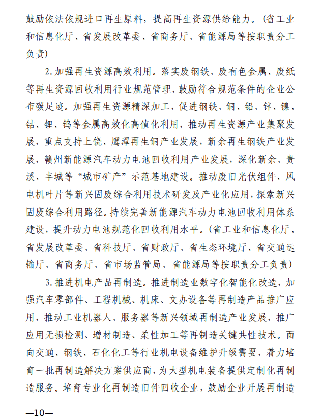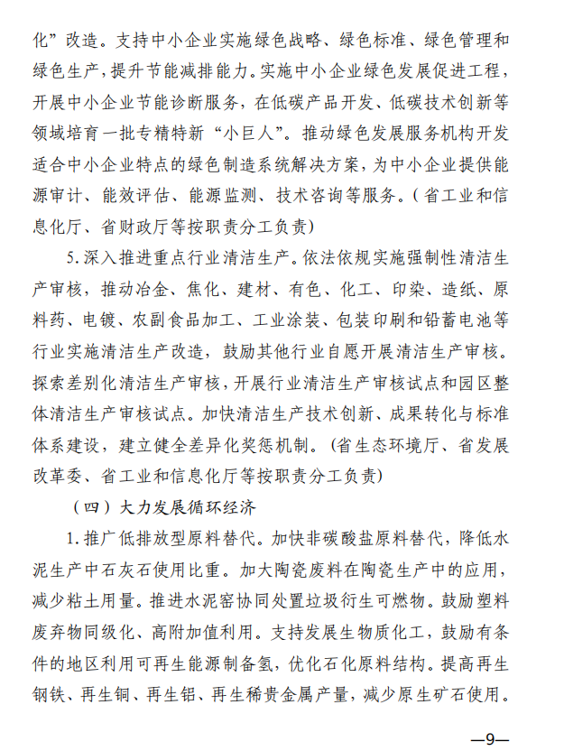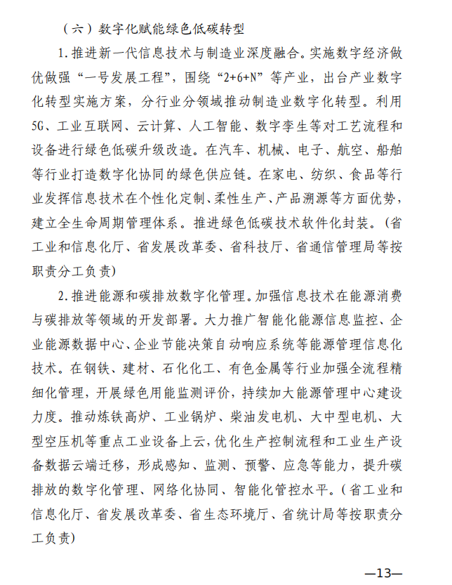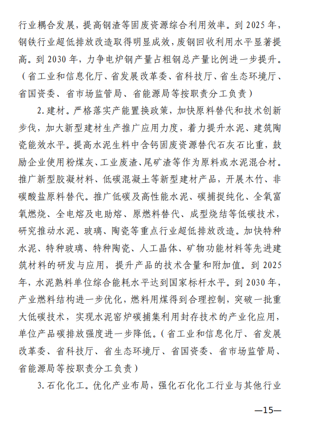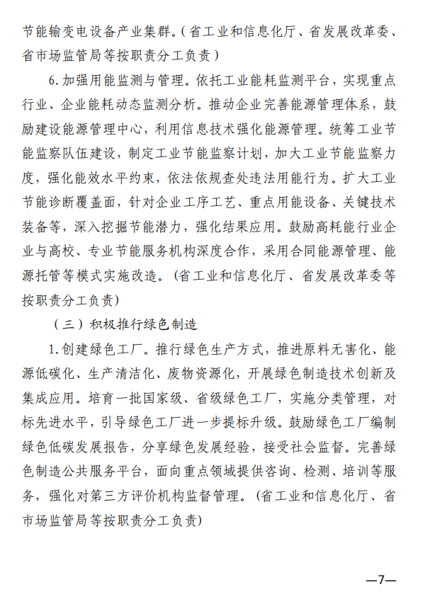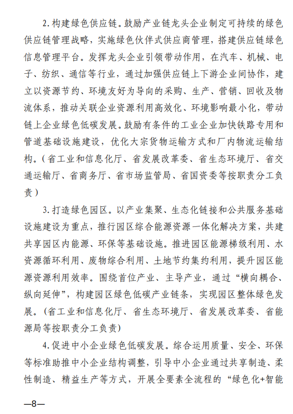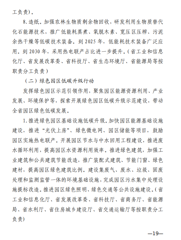 10月10日,江西省工業(yè)和信息化廳、江西省發(fā)展和改革委員會和江西省生態(tài)環(huán)境廳發(fā)布《關(guān)于印發(fā)江西省工業(yè)領(lǐng)域碳達峰實施方案的通知》,《江西省工業(yè)領(lǐng)域碳達峰實施方案》提出,“十四五”期間,江西力爭產(chǎn)業(yè)結(jié)構(gòu)與用能結(jié)構(gòu)優(yōu)化取得積極進展,能源資源利用效率明顯提升,綠色工廠和綠色園區(qū)分別達到200家和50家;到2025年,全省規(guī)模以上工業(yè)單位增加值能耗較2020年下降12%以上?!笆逦濉逼陂g,力爭一批重點產(chǎn)品工藝能效達到國內(nèi)領(lǐng)先水平,基本建立以高效、綠色、循環(huán)、低碳為特征的現(xiàn)代工業(yè)體系;確保工業(yè)領(lǐng)域二氧化碳排放在2030年前達峰。 方案提出,逐步擴大可再生能源供給。加快工業(yè)綠色微電網(wǎng)建設(shè),增強源網(wǎng)荷儲協(xié)調(diào)互動,合理發(fā)展分布式光伏、分散式風電、多元 儲能等項目,鼓勵具備條件的企業(yè)開展“光伏+儲能”等自備電廠、自備電源建設(shè)。謀劃布局氫能及裝備產(chǎn)業(yè),加快新型儲能規(guī)?;瘧?yīng)用,推進氫能“制儲輸用”全鏈條發(fā)展,適時開發(fā)氫能應(yīng)用示范。建設(shè)電、熱、冷、氣等多種能源協(xié)同互補的綜合能源項目,推進多能高效互補利用。 發(fā)揮綠色園區(qū)示范引領(lǐng)作用,聚焦園區(qū)能源資源利用、產(chǎn)業(yè) 發(fā)展、環(huán)境保護等,探索開展綠色園區(qū)低碳升級示范建設(shè),帶動 全省園區(qū)綠色低碳發(fā)展。 推進綠色園區(qū)基礎(chǔ)設(shè)施低碳升級。加快園區(qū)能源基礎(chǔ)設(shè)施建設(shè),推進“光伏上房”、綠色微電網(wǎng)、園區(qū)儲能等項目,鼓勵園區(qū)實施熱電聯(lián)產(chǎn)。 原文如下: