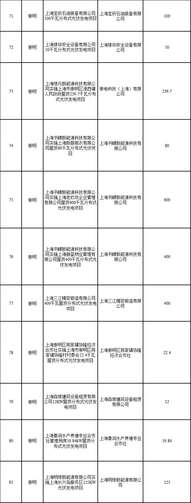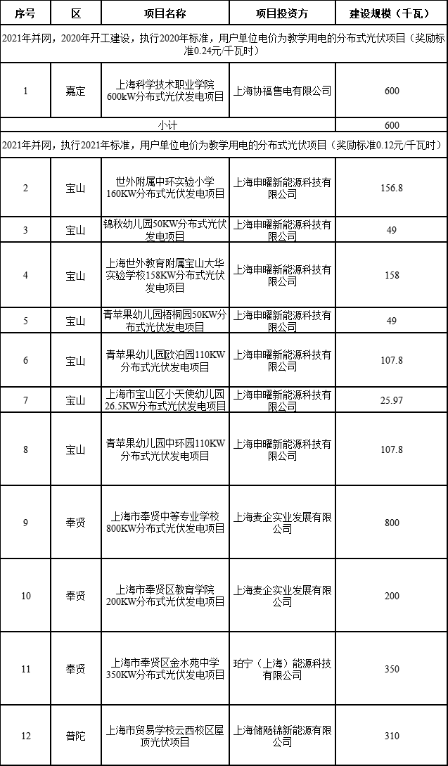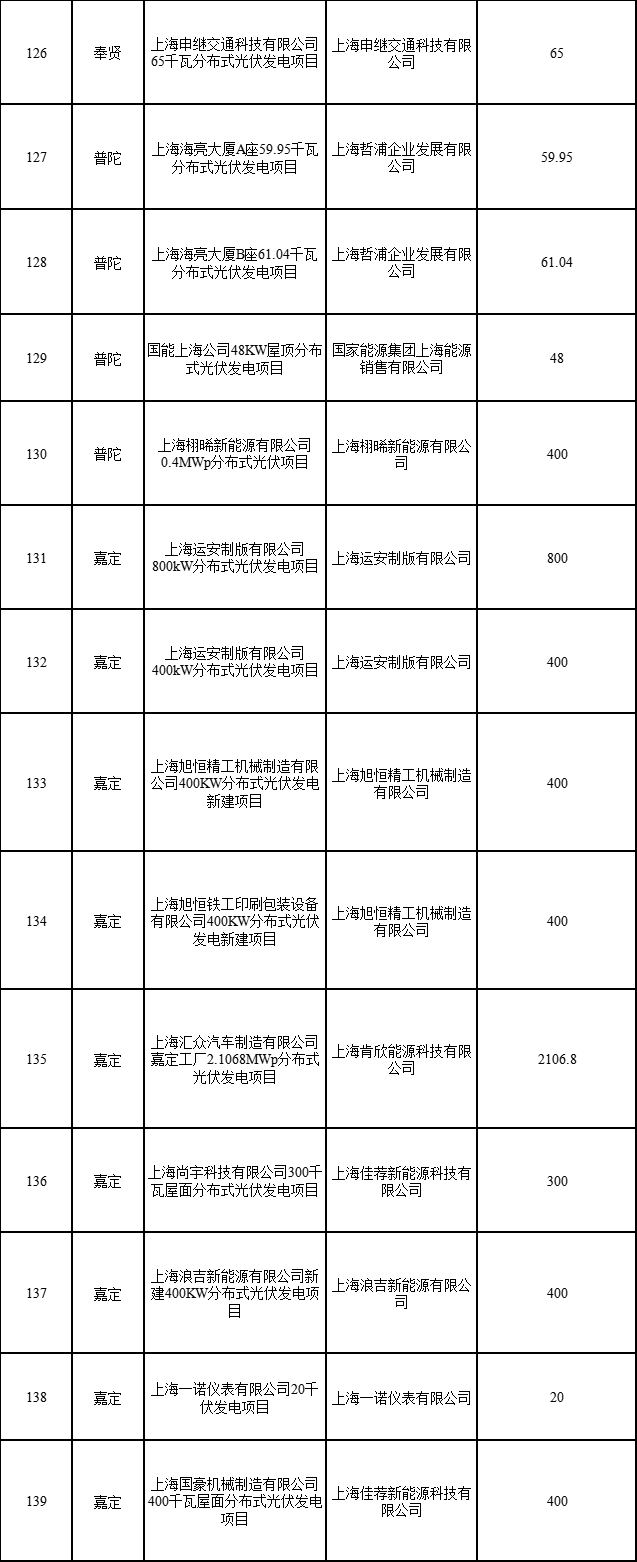 日前,上海市發(fā)展改革委公布2022年第二批可再生能源和新能源發(fā)展專項(xiàng)資金獎(jiǎng)勵(lì)目錄的通知,通知指出,共有1775個(gè)項(xiàng)目納入獎(jiǎng)勵(lì)目錄,總裝機(jī)容量249376.418千瓦。其中,海上風(fēng)電項(xiàng)目1個(gè)(合計(jì)45500千瓦)、光伏電站項(xiàng)目1個(gè)(3499.97)、企業(yè)分布式光伏項(xiàng)目315個(gè)(合計(jì)183784.37千瓦)、居民光伏項(xiàng)目1458個(gè)(合計(jì)16592.078千瓦)。 原文如下: 上海市發(fā)展改革委關(guān)于公布2022年第二批可再生能源和新能源發(fā)展專項(xiàng)資金獎(jiǎng)勵(lì)目錄的通知 各有關(guān)單位: 根據(jù)《上海市可再生能源和新能源發(fā)展專項(xiàng)資金扶持辦法》(滬發(fā)改能源〔2016〕136號,以下稱“136號文”)、《上海市可再生能源和新能源發(fā)展專項(xiàng)資金扶持辦法(2020版)》(滬發(fā)改規(guī)范〔2020〕7號,以下稱“7號文”)和《關(guān)于做好2021年可再生能源和新能源發(fā)展專項(xiàng)資金扶持項(xiàng)目申報(bào)和獎(jiǎng)勵(lì)資金申請工作的通知》(滬發(fā)改能源〔2021〕18號,以下稱“18號文”),我委會(huì)同市財(cái)政局組織開展了2022年第二批可再生能源專項(xiàng)資金扶持項(xiàng)目申報(bào)和評審工作。經(jīng)各區(qū)初審、委托市節(jié)能減排中心評審和社會(huì)公示,現(xiàn)將有關(guān)事項(xiàng)通知如下。 一、關(guān)于新列入專項(xiàng)資金獎(jiǎng)勵(lì)目錄項(xiàng)目情況 共有1775個(gè)項(xiàng)目納入獎(jiǎng)勵(lì)目錄,總裝機(jī)容量249376.418千瓦。其中,海上風(fēng)電項(xiàng)目1個(gè)(合計(jì)45500千瓦)、光伏電站項(xiàng)目1個(gè)(3499.97)、企業(yè)分布式光伏項(xiàng)目315個(gè)(合計(jì)183784.37千瓦)、居民光伏項(xiàng)目1458個(gè)(合計(jì)16592.078千瓦)。 二、關(guān)于已納入專項(xiàng)資金獎(jiǎng)勵(lì)目錄項(xiàng)目的信息變更情況 13個(gè)項(xiàng)目申請項(xiàng)目變更條件予以確認(rèn),其中:企業(yè)分布式項(xiàng)目5個(gè)。(1)經(jīng)青浦區(qū)發(fā)展改革委申請核實(shí),“上海電氣建筑節(jié)能有限公司利用國展中心屋頂建設(shè)2.2MW分布式光伏電站項(xiàng)目(2017年第二批目錄)”,單位名稱從“上海電氣建筑節(jié)能有限公司”變更為“上海電氣數(shù)智生態(tài)科技有限公司”。(2)經(jīng)崇明區(qū)發(fā)展改革委申請核實(shí),“上海綠兆新能源科技有限公司實(shí)施崇匠建設(shè)(上海)有限公司52.02KW屋頂分布式光伏發(fā)電項(xiàng)目(2021年第一批目錄)”,單位名稱從“上海綠兆新能源科技有限公司”變更為“崇電科技(上海)有限公司”。(3)經(jīng)嘉定區(qū)發(fā)展改革委申請核實(shí),“上海圣飛新能源嘉定區(qū)興賢路789號上海連盈螺絲有限公司559千瓦分布式光伏發(fā)電項(xiàng)目(2021年第一批目錄)”,單位名稱從“上海圣飛新能源科技有限公司”變更為“嘉興勝錦新能源有限公司”。(4)經(jīng)金山區(qū)發(fā)展改革委申請核實(shí),“上海復(fù)鏑實(shí)業(yè)有限公司20千瓦分布式光伏發(fā)電項(xiàng)目(2018年第一批目錄)”,單位名稱從“上海復(fù)鏑實(shí)業(yè)有限公司”變更為“上海復(fù)鐳投資管理有限公司”。(5)經(jīng)閔行區(qū)發(fā)展改革委申請核實(shí),“國核工程有限公司146.965KWp屋頂分布式光伏發(fā)電項(xiàng)目(2020年第一批目錄)”,單位名稱從“國核工程有限公司”變更為“上海核工程研究設(shè)計(jì)院有限公司”。 居民光伏8個(gè)。經(jīng)青浦區(qū)發(fā)展改革委申請核實(shí),(1)“上海市青浦區(qū)趙巷鎮(zhèn)業(yè)煌路168弄173號(2017年第二批)”用戶名從“孫仟花”變更為“侯笑宇”;(2)“上海市青浦區(qū)趙巷鎮(zhèn)業(yè)前路1688弄446號(2019年第一批)”用戶名從“宋厚波”變更為“王花”;(3)“上海市青浦區(qū)徐涇鎮(zhèn)滬青平公路1638弄156號(2018年第一批)”用戶名從“劉喜芝”變更為“夏永玲”;(4)“上海市青浦區(qū)朱家角鎮(zhèn)浦祥路581弄1801號(2019年第一批)”用戶名從“沈瓊”變更為“金紀(jì)寧”;(5)“上海市青浦區(qū)青浦鎮(zhèn)新園路509弄32號301室(2015年第一批)”用戶名從“趙林濤”變更為“周冠卿”;(6)“上海市青浦區(qū)趙巷鎮(zhèn)滬青平公路2558弄123號(2021年第一批)”用戶名從“田樹濤”變更為“TIANSHUTAO”;(7)“上海市青浦區(qū)趙巷鎮(zhèn)置發(fā)路68弄52號(2017年第三批)”用戶名從“方婷”變更為“陳芳”。經(jīng)奉賢區(qū)發(fā)展改革委申請核實(shí),(8)經(jīng)奉賢區(qū)發(fā)展改革委申請核實(shí),“上海市奉賢區(qū)海灣旅游區(qū)海馬路5888弄609號”用戶名從“蔣惠祥”變更為“印桂花”。 三、關(guān)于新增獎(jiǎng)勵(lì)目錄項(xiàng)目獎(jiǎng)勵(lì)資金申報(bào) 按照7號文、18號文要求,市電力公司應(yīng)按季度做好本批獎(jiǎng)勵(lì)目錄項(xiàng)目的電量統(tǒng)計(jì)和獎(jiǎng)勵(lì)資金申報(bào)工作,項(xiàng)目獎(jiǎng)勵(lì)電量總數(shù)達(dá)6050小時(shí)或者獎(jiǎng)勵(lì)期滿5年,獎(jiǎng)勵(lì)結(jié)束。各區(qū)發(fā)展改革委做好項(xiàng)目的監(jiān)督和管理,切實(shí)發(fā)揮專項(xiàng)資金的支持引導(dǎo)作用。 特此通知。 附件:1.2022年第二批上海市可再生能源和新能源專項(xiàng)資金 獎(jiǎng)勵(l