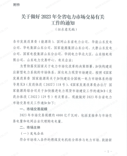 根據(jù)文件,2023年市場(chǎng)交易規(guī)模約4000億千瓦時(shí),鼓勵(lì)能源場(chǎng)站高比例參與電力市場(chǎng),推動(dòng)開展綠色電力交易和綠證交易,充分體現(xiàn)新能源環(huán)境屬性價(jià)值;按照“誰(shuí)受益、誰(shuí)承擔(dān)”的原則,有序推動(dòng)分布式新能源參與市場(chǎng)費(fèi)用分?jǐn)?;支持新能源與配建儲(chǔ)能聯(lián)合體參與電力市場(chǎng)。推動(dòng)地方燃煤電廠、生物質(zhì)發(fā)電實(shí)施分時(shí)計(jì)量改造,具備條件后自主申報(bào)參與電力市場(chǎng)。燃煤發(fā)電機(jī)組、新能源、獨(dú)立服務(wù)提供者等按照山東省電力市場(chǎng)交易規(guī)則參與電力市場(chǎng)交易。