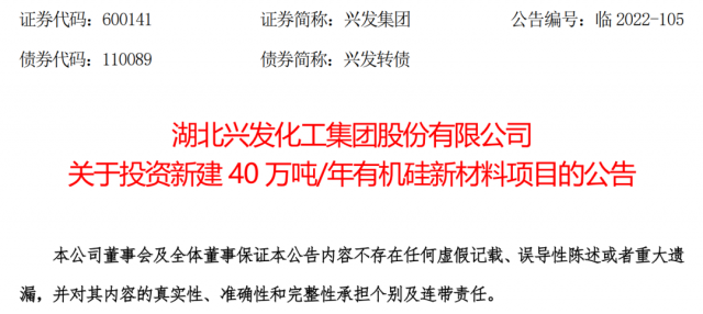 10月28日晚間,興發(fā)集團(tuán)發(fā)布公告,公司擬投資新建40萬噸/年有機(jī)硅新材料項(xiàng)目,投資金額25.13億元。