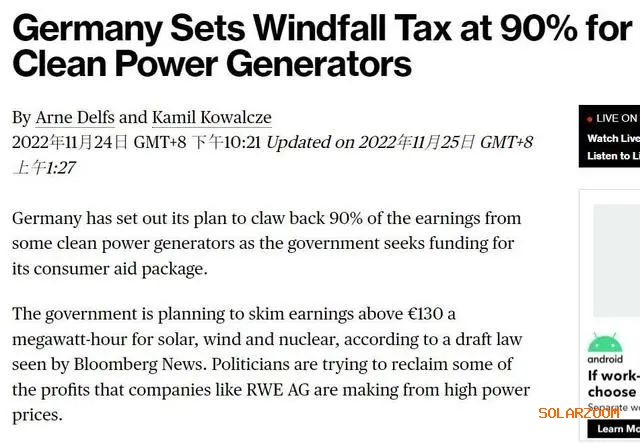 電價(jià)暴增,德國開啟限電+增收暴利稅,最高稅率達(dá)90%2022-11-28 15:14來源:gessey瀏覽數(shù):257次