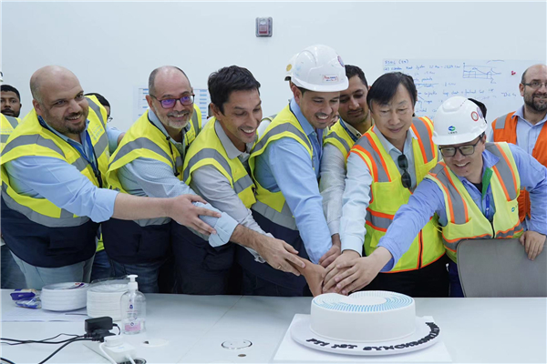 該機(jī)組采用全球最先進(jìn)的槽式光熱發(fā)電技術(shù),解決了常規(guī)光伏電站夜間無法發(fā)電的弊端,是踐行國家“一帶一路”倡議和實(shí)現(xiàn)全球“碳中和”目標(biāo)的典型示范。建設(shè)期間,由于疫情影響,項(xiàng)目面臨原材料漲價(jià)、航運(yùn)停滯、設(shè)備生產(chǎn)受阻、人員嚴(yán)重短缺、各項(xiàng)成本上升等困難。項(xiàng)目部嚴(yán)密規(guī)劃、科學(xué)統(tǒng)籌,克服疫情帶來的影響,運(yùn)用新思維攻克多個(gè)技術(shù)難題,順利實(shí)現(xiàn)這一里程碑節(jié)點(diǎn)。