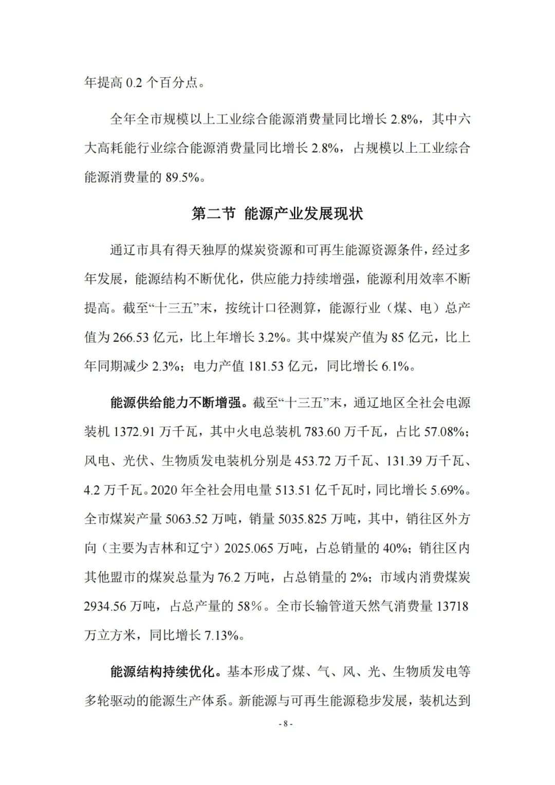 11月25日,內(nèi)蒙古自治區(qū)通遼市能源局印發(fā)《通遼市百億級(jí)現(xiàn)代能源示范產(chǎn)業(yè)集群發(fā)展規(guī)劃》,規(guī)劃到2025年,全市煤炭產(chǎn)能新增1535萬噸,新增電源裝機(jī)1940萬千瓦,其中火電520萬千瓦,風(fēng)電900萬千瓦,光伏發(fā)電500萬千瓦,生物質(zhì)發(fā)電20萬千瓦。 全文如下: