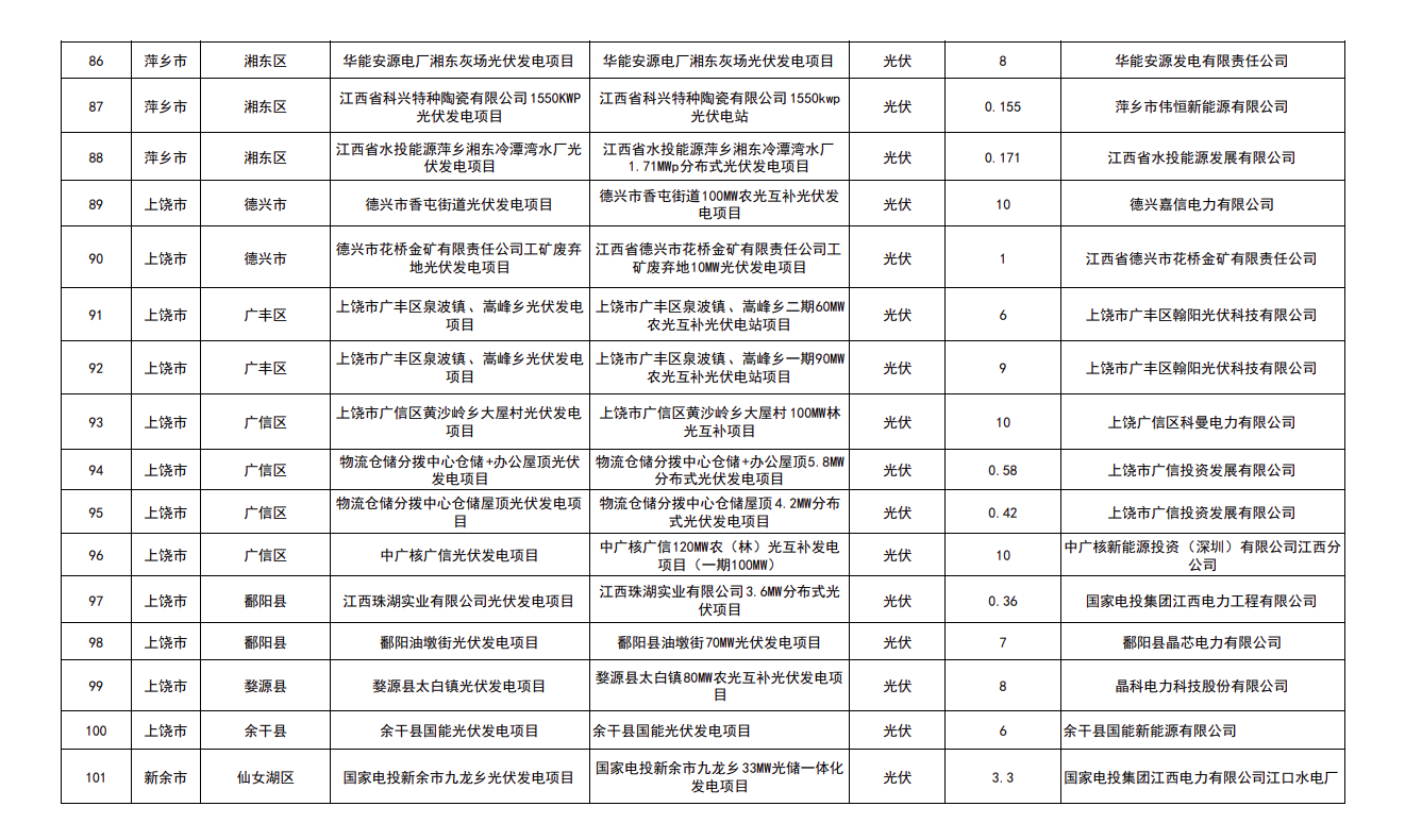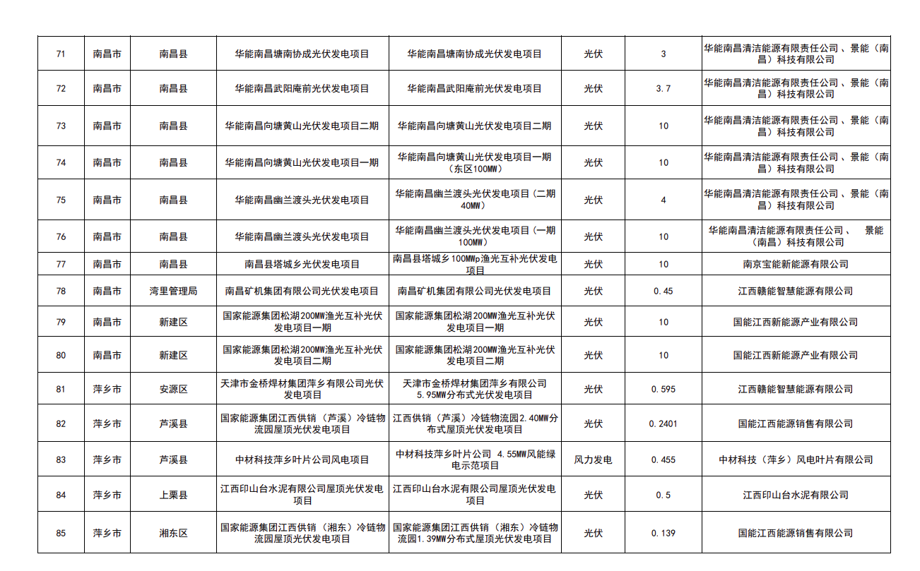 預(yù)計(jì)配儲(chǔ)805MW/805MWh!江西2022年風(fēng)電、光伏發(fā)電項(xiàng)目競(jìng)爭(zhēng)優(yōu)選結(jié)果公示12月6日,江西省能源局發(fā)布《關(guān)于江西省2022年風(fēng)電、光伏發(fā)電項(xiàng)目競(jìng)爭(zhēng)優(yōu)選結(jié)果的公示》,其中共包含146個(gè)項(xiàng)目,其中,風(fēng)電項(xiàng)目17項(xiàng),光伏項(xiàng)目129項(xiàng),總裝機(jī)規(guī)模為5.64GW。此次發(fā)布清單預(yù)計(jì)需配置儲(chǔ)能總規(guī)模達(dá)805MW/805MWh。 8月25日,江西省能源局關(guān)于開展風(fēng)電、光伏發(fā)電項(xiàng)目競(jìng)爭(zhēng)優(yōu)選工作的通知。文件強(qiáng)調(diào),火電靈活改造項(xiàng)目以及分布式項(xiàng)目在通過優(yōu)選后可納入保障性并網(wǎng),其余項(xiàng)目則納入市場(chǎng)化并網(wǎng),市場(chǎng)化項(xiàng)目要按照新能源容量的15%*1h的要求配置儲(chǔ)能。 詳情如下: 關(guān)于江西省2022年風(fēng)電、光伏發(fā)電項(xiàng)目競(jìng)爭(zhēng)優(yōu)選結(jié)果的公示 為深入貫徹碳達(dá)峰、碳中和重大戰(zhàn)略決策,加快推動(dòng)我省新能源行業(yè)健康有序發(fā)展,根據(jù)《江西省能源局關(guān)于開展風(fēng)電、光伏發(fā)電項(xiàng)目競(jìng)爭(zhēng)優(yōu)選工作的通知》(贛能新能字〔2022〕109號(hào))有關(guān)要求,省能源局委托相關(guān)機(jī)構(gòu)派出專家對(duì)項(xiàng)目進(jìn)行審查。根據(jù)審查結(jié)果,現(xiàn)將全省2022年風(fēng)電、光伏發(fā)電項(xiàng)目競(jìng)爭(zhēng)優(yōu)選擬入圍項(xiàng)目清單予以公示。 公示時(shí)間:2022年12月6日-12月8日。 聯(lián)系電話:0791-88915227 聯(lián)系人:謝楊 附件:公示項(xiàng)目清單.pdf 江西省能源局 2022年12月6日