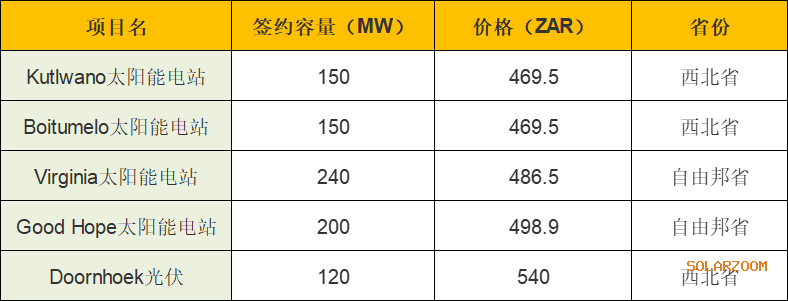 在南非可再生能源獨(dú)立發(fā)電商采購計(jì)劃(REIPPPP)第五輪招標(biāo)中,南非與13個(gè)太陽能光伏項(xiàng)目簽署了975MW購電協(xié)議(PPA)。 由Globeleq和Mainstream Renewable Power牽頭的可再生能源聯(lián)合體Ikamva簽署的項(xiàng)目最多,有六個(gè)位于自由邦省,其次是挪威獨(dú)立發(fā)電商(IPP)Scatec,簽署了三個(gè)273MW的項(xiàng)目,大型地面光伏巨頭Engie牽頭的聯(lián)合體也獲得了三個(gè)太陽能光伏項(xiàng)目——兩個(gè)在自由邦省,一個(gè)在北開普省,此外還有TotalEnergies在北開普的其余項(xiàng)目。 首席開發(fā)官Jonathan Hoffman表示, "我們致力于進(jìn)一步增加清潔的可持續(xù)電力,助力解決南非巨大的能源需求問題,支持公正能源轉(zhuǎn)型伙伴關(guān)系,提供就業(yè)崗位和技能開發(fā)機(jī)會(huì)。" 一旦這些項(xiàng)目達(dá)到商業(yè)和財(cái)務(wù)結(jié)算階段,它們會(huì)有24個(gè)月的完工時(shí)間,并有望在2025年實(shí)現(xiàn)商業(yè)運(yùn)營。 此外,政府還公布了去年4月第六輪REIPPPP招標(biāo)的優(yōu)選方案,該批次招標(biāo)共為五個(gè)太陽能光伏項(xiàng)目分配了860MW容量。這些項(xiàng)目的平均電價(jià)達(dá)到了490.48南非蘭特/MWh(合28.02美元/MWh),比此前招標(biāo)上浮了8%。 第六輪REIPPPP簽署的太陽能光伏項(xiàng)目清單。來源:礦產(chǎn)資源和能源部 第六個(gè)項(xiàng)目已確定符合條件,政府正在與投標(biāo)方展開討論,可能會(huì)將分配總量增至1GW。 這仍然沒有達(dá)到第六輪4.2GW的太陽能和風(fēng)能目標(biāo),南非在7月增加了容量并采取了一系列措施來應(yīng)對南非能源危機(jī),但南非沒有簽署任何風(fēng)電項(xiàng)目。 這些措施包括Eskom在Mpumalanga省發(fā)電站附近的供地,這將增加2GW可再生能源容量。 此外,礦產(chǎn)資源和能源部部長Gwede Mantashe稱,南非國家能源監(jiān)管機(jī)構(gòu)正在考慮確定近15GW的新電力容量,南非政府正在與Eskom討論解決南非目前面臨的電網(wǎng)挑戰(zhàn)問題。