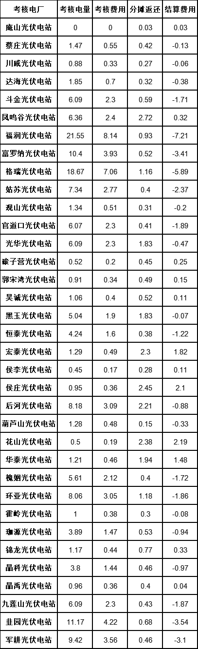 12月16日,河南能源監(jiān)管辦發(fā)布關(guān)于2022年10月份新能源電廠并網(wǎng)運行管理結(jié)算情況的通知,光伏電站項目116個。 原文如下: 國網(wǎng)河南省電力公司、有關(guān)發(fā)電企業(yè): 近期,國網(wǎng)河南省電力公司對我省2022年10月份“新能源并網(wǎng)運行管理”考核情況進行了匯總和披露,各發(fā)電企業(yè)對結(jié)算數(shù)據(jù)進行了復(fù)核和確認,國網(wǎng)河南省電力公司將公示后的結(jié)算情況上報河南能源監(jiān)管辦。 現(xiàn)將我省2022年10月份“新能源電廠并網(wǎng)運行管理”結(jié)算情況通知如下(見附件)。請國網(wǎng)河南省電力公司和各發(fā)電企業(yè)按照通知的結(jié)算費用,隨同電廠電費一并結(jié)算。執(zhí)行中有何問題,請及時報河南能源監(jiān)管辦。 附件:2022年10月份河南省“新能源電廠并網(wǎng)運行管理”結(jié)算情況 河南能源監(jiān)管辦 2022年12月12日 附件: 2022年10月份河南省“新能源電廠并網(wǎng)運行管理”結(jié)算情況(光伏) 單位:電量:萬千瓦時,費用:萬元