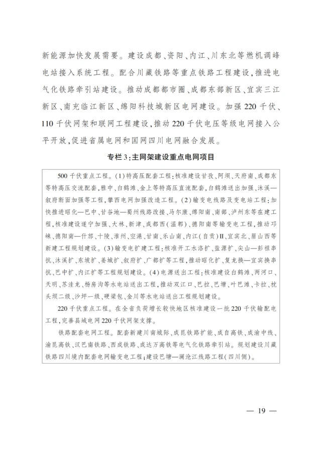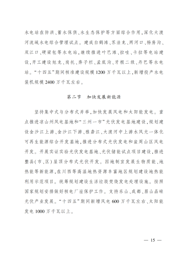 四川“十四五”能源規(guī)劃:光伏新增10GW、風(fēng)電6GW,重點(diǎn)建設(shè)多個(gè)風(fēng)光大基地3月3日,四川發(fā)改委發(fā)布了《四川省“十四五”能源發(fā)展規(guī)劃》。要求2025 年風(fēng)電、光伏發(fā)電裝機(jī)容量分別達(dá)到1000萬(wàn)千瓦、1200萬(wàn)千瓦。其中,“十四五”期間新增風(fēng)電600萬(wàn)千瓦左右、太陽(yáng)能發(fā)電1000萬(wàn)千瓦以上。 堅(jiān)持集中式與分布式并舉,加快發(fā)展風(fēng)電和太陽(yáng)能發(fā)電。重點(diǎn)推進(jìn)涼山州風(fēng)電基地和“三州一市”光伏發(fā)電基地建設(shè),規(guī)劃建設(shè)金沙江上游、金沙江下游、雅礱江、大渡河中上游水風(fēng)光一體化可再生能源綜合開發(fā)基地,推進(jìn)分布式光伏發(fā)電和盆周山區(qū)風(fēng)電開發(fā)。開展實(shí)證實(shí)驗(yàn)光伏發(fā)電基地、光伏儲(chǔ)能試點(diǎn)項(xiàng)目建設(shè),推進(jìn)整縣(市、區(qū))屋頂分布式光伏開發(fā)。因地制宜發(fā)展生物質(zhì)能、地?zé)崮艿刃履茉?在川西等高溫地?zé)豳Y源豐富地區(qū)規(guī)劃建設(shè)地?zé)崮芾檬痉俄?xiàng)目。統(tǒng)籌規(guī)劃建設(shè)生活垃圾焚燒發(fā)電處理設(shè)施。按照國(guó)家規(guī)劃安排做好核電廠址保護(hù)工作。支持樂(lè)山、成都、眉山晶硅光伏產(chǎn)業(yè)發(fā)展?!笆奈濉逼陂g新增風(fēng)電600萬(wàn)千瓦左右、太陽(yáng)能發(fā)電1000萬(wàn)千瓦以上。 光伏重點(diǎn)推進(jìn)項(xiàng)目包括:攀枝花市洼落、新九、仁和、米易4個(gè)片區(qū),阿壩州北部、中部、西北部、西南部4個(gè)基地,甘孜州北部、中部、南部3個(gè)基地,涼山州西部、南部、西北部、東部4個(gè)基地等“三州一市”大型光伏發(fā)電基地建設(shè)。 風(fēng)電重點(diǎn)推進(jìn)項(xiàng)目包括:建成西昌牦牛山、鹽源大壩、會(huì)東淌塘、寧南果木、普格則洛日、德昌臘巴山、布拖海博、昭覺(jué)補(bǔ)約、雷波阿合哈洛、美姑沙馬乃拖、廣元?jiǎng)﹂w、昭化白果等風(fēng)電項(xiàng)目。并研發(fā)超大功率陸上風(fēng)電機(jī)組、大功率海上風(fēng)電機(jī)組、漂浮式海上風(fēng)電機(jī)組、超高海拔(5000米以上)風(fēng)電機(jī)組。 分布式能源方面:穩(wěn)步推進(jìn)戶用光伏發(fā)電建設(shè),推動(dòng)分布式能源發(fā)展和鄉(xiāng)村振興有效銜接。創(chuàng)新分布式能源發(fā)展機(jī)制,完善分布式能源市場(chǎng)化交易政策,推進(jìn)分布式能源公平接入,鼓勵(lì)多種市場(chǎng)主體探索分布式能源商業(yè)運(yùn)作模式。 特高壓建設(shè)方面:“十四五”將建成雅礱江中游至江西、白鶴灘至江蘇、白鶴灘至浙江等±800千伏特高壓直流工程,開工建設(shè)金沙江上游至湖北多能互補(bǔ)外送特高壓直流工程。研究規(guī)劃與西北電網(wǎng)聯(lián)接第二通道,研究布局藏東南和雅魯藏布江下游水電入川接續(xù)轉(zhuǎn)送特高壓工程。重點(diǎn)推進(jìn)川渝電網(wǎng)特高壓交流目標(biāo)網(wǎng)架建設(shè),為成渝地區(qū)雙城經(jīng)濟(jì)圈建設(shè)提供堅(jiān)強(qiáng)電力保障。 此外,能源體制改革和機(jī)制創(chuàng)新亟待深化。電力交易機(jī)制有待完善,需求響應(yīng)機(jī)制還未完全建立;電力跨省跨區(qū)域輸送利益協(xié)調(diào)機(jī)制缺失,配套輔助成本尚未得到合理補(bǔ)償。上網(wǎng)電價(jià)形成機(jī)制和銷售電價(jià)改革需進(jìn)一步深化和完善,適應(yīng)油氣體制改革的天然氣價(jià)格形成機(jī)制改革需加快推進(jìn),價(jià)格引導(dǎo)能源資源配置的作用有待進(jìn)一步發(fā)揮。 原文如下: 四川省人民政府關(guān)于印發(fā)《四川省“十四五”能源發(fā)展規(guī)劃》的通知 川府發(fā)〔2022〕8號(hào) 各市(州)人民政府,省政府各部門、各直屬機(jī)構(gòu),有關(guān)單位: 現(xiàn)將《四川省“十四五”能源發(fā)展規(guī)劃》印發(fā)給你們,請(qǐng)認(rèn)真組織實(shí)施。 四川省人民政府 2022年3月3日