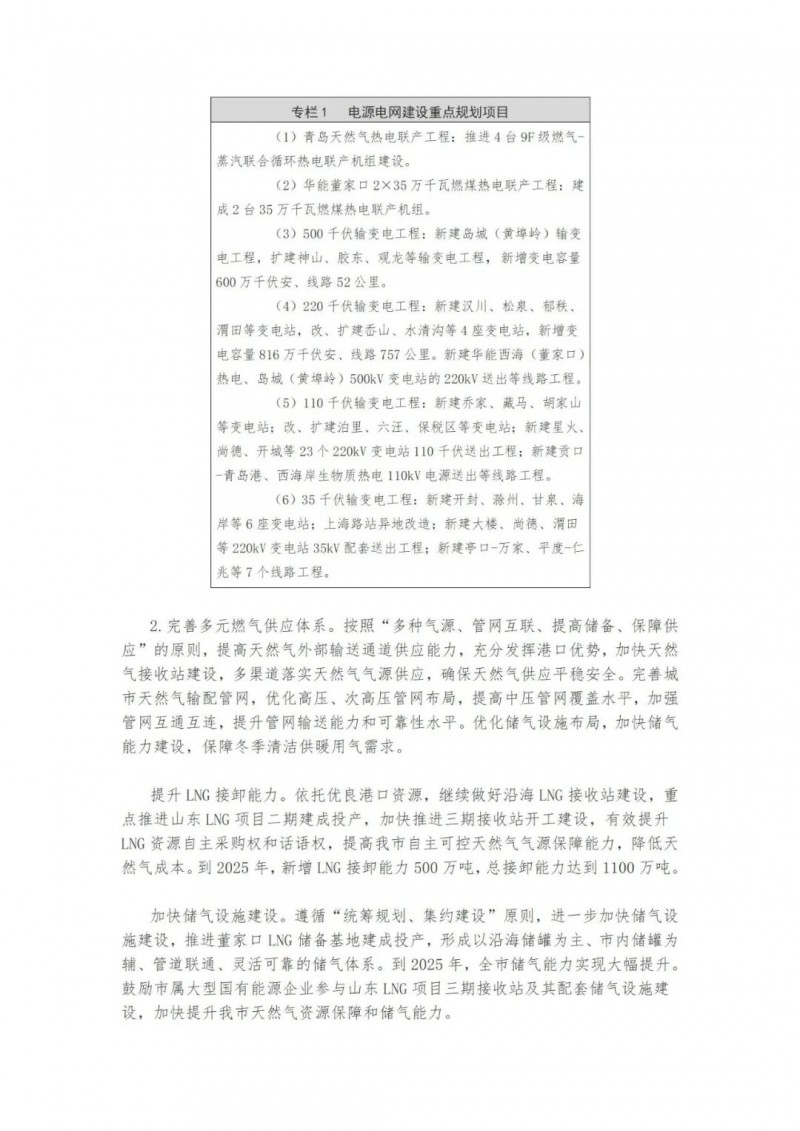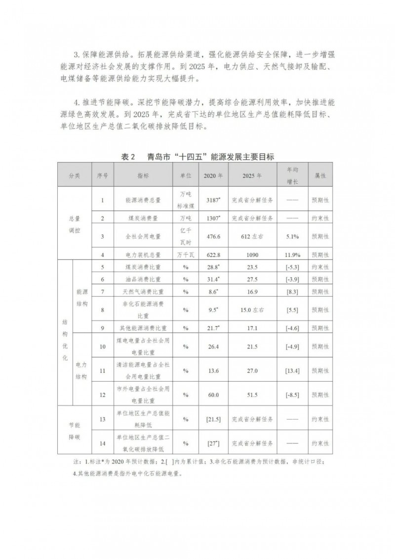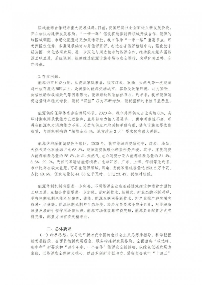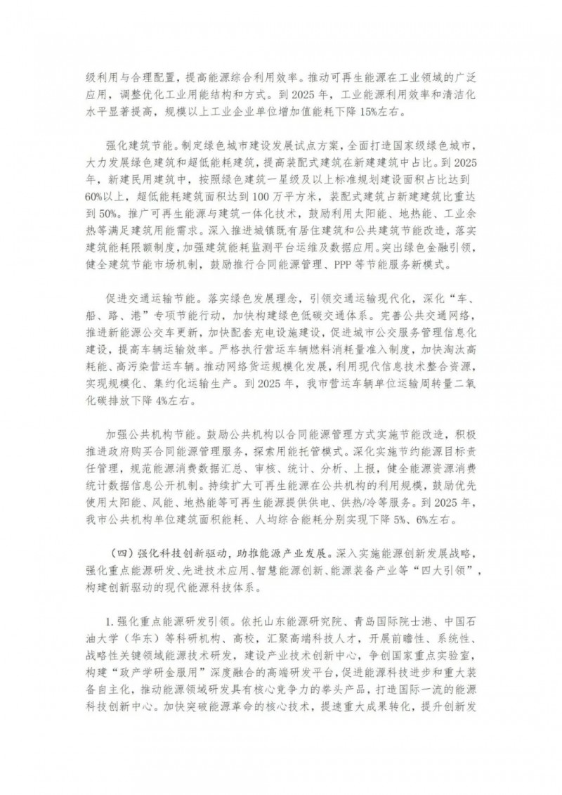 青島“十四五”能源規(guī)劃公示:風(fēng)光新增2.6GW,配儲(chǔ)不低于10%近日,山東青島市人民政府辦公廳印發(fā)了《關(guān)于印發(fā)青島市“十四五”能源發(fā)展規(guī)劃的通知》。提出了青島市“十四五”能源發(fā)展的主要任務(wù)和建設(shè)重點(diǎn)。實(shí)施可再生能源倍增計(jì)劃。以風(fēng)電、光伏發(fā)電為重點(diǎn),以生物質(zhì)能、海洋能、地?zé)崮艿葹檠a(bǔ)充。到2025年,可再生能源裝機(jī)容量新增270萬千瓦左右,總裝機(jī)容量達(dá)到523萬千瓦左右,占電力總裝機(jī)的比重提升至48%左右。 儲(chǔ)能方面: 鼓勵(lì)結(jié)合源、網(wǎng)、荷不同需求探索儲(chǔ)能多元化發(fā)展模式,以試點(diǎn)促推廣應(yīng)用、以示范促深化發(fā)展,將發(fā)展新型儲(chǔ)能作為構(gòu)建以新能源為主體的新型電力系統(tǒng)重要支撐。推進(jìn)電源側(cè)、電網(wǎng)側(cè)、用戶側(cè)儲(chǔ)能建設(shè),通過儲(chǔ)能協(xié)同優(yōu)化運(yùn)行,保障可再生能源高效消納。統(tǒng)籌電網(wǎng)消納能力與可再生能源項(xiàng)目協(xié)同發(fā)展,推進(jìn)風(fēng)光(火)儲(chǔ)一體化建設(shè),新增集中式風(fēng)電、光伏發(fā)電項(xiàng)目應(yīng)按照不低于10%比例配建或租賃儲(chǔ)能設(shè)施;鼓勵(lì)有條件的分散式風(fēng)電、分布式光伏發(fā)電項(xiàng)目按照不低于10%比例配建或租賃儲(chǔ)能設(shè)施。到2025年,推動(dòng)新型儲(chǔ)能新增容量規(guī)模達(dá)到50萬千瓦時(shí)以上。 光伏方面: 一是有序發(fā)展集中式光伏,鼓勵(lì)漁光互補(bǔ)、農(nóng)光互補(bǔ)、風(fēng)光儲(chǔ)多能互補(bǔ)等“光伏+”項(xiàng)目示范。重點(diǎn)推動(dòng)建設(shè)即墨區(qū)、青島西海岸新區(qū)百萬千瓦級光伏應(yīng)用基地,打造膠東半島光伏發(fā)電示范。加快推進(jìn)青島西海岸新區(qū)膠河上上農(nóng)業(yè)40MW光伏發(fā)電、即墨區(qū)200MW農(nóng)光互補(bǔ)、膠州市鋪集鎮(zhèn)150MW漁光互補(bǔ)、平度市安信電投200MW平價(jià)光伏等項(xiàng)目建成并網(wǎng)。 二是堅(jiān)持集散并舉,整縣制有序推進(jìn)分布式光伏發(fā)展。積極開發(fā)建筑一體化光伏發(fā)電系統(tǒng),鼓勵(lì)在特色小鎮(zhèn)、工業(yè)園區(qū)、經(jīng)濟(jì)技術(shù)開發(fā)園區(qū)、商場、學(xué)校、醫(yī)院等建筑屋頂開展分布式光伏應(yīng)用,優(yōu)先采用“自發(fā)自用”消納模式。提高太陽能綜合利用率,鼓勵(lì)發(fā)展太陽能耦合多種熱源在建筑供暖、生活熱水中的應(yīng)用。到2025年,新增光伏裝機(jī)規(guī)模220萬千瓦,增長2倍以上,總裝機(jī)規(guī)模達(dá)到320萬千瓦。 風(fēng)電方面: 一是根據(jù)省統(tǒng)一規(guī)劃部署,加快推進(jìn)海上風(fēng)電發(fā)展。2025年前,啟動(dòng)百萬千瓦級海上風(fēng)電場建設(shè),實(shí)現(xiàn)青島市海上風(fēng)電開發(fā)建設(shè)零的突破。發(fā)揮深海資源優(yōu)勢,打造千億級海上風(fēng)電產(chǎn)業(yè)集群。以海上風(fēng)電開發(fā)建設(shè)為契機(jī),推動(dòng)大型風(fēng)電整機(jī)裝備及關(guān)鍵部件制造產(chǎn)業(yè)發(fā)展,構(gòu)建海上風(fēng)電設(shè)計(jì)、施工、運(yùn)維、電網(wǎng)等全產(chǎn)業(yè)鏈一體化發(fā)展格局,全力打造海上風(fēng)電母港。推進(jìn)“海上風(fēng)電+”行動(dòng),探索開展海上風(fēng)電與海洋牧場、制氫、儲(chǔ)能、海洋能等產(chǎn)業(yè)融合創(chuàng)新發(fā)展示范,推動(dòng)海上風(fēng)電向規(guī)?;⒍嘣?、高效化、智能化方向發(fā)展。 二是堅(jiān)持陸海統(tǒng)籌,有序發(fā)展陸上風(fēng)電。著力推進(jìn)青島西海岸新區(qū)、膠州市、平度市、萊西市陸上風(fēng)電應(yīng)用示范,推動(dòng)華潤新能源膠州分散式風(fēng)電、鐵投能源平度分散式風(fēng)電、沃爾萊西分散式風(fēng)電等項(xiàng)目建成投產(chǎn)。到2025年,陸上風(fēng)電新增裝機(jī)規(guī)模40萬千瓦,總裝機(jī)規(guī)模達(dá)到154萬千瓦。 以下是原文件: