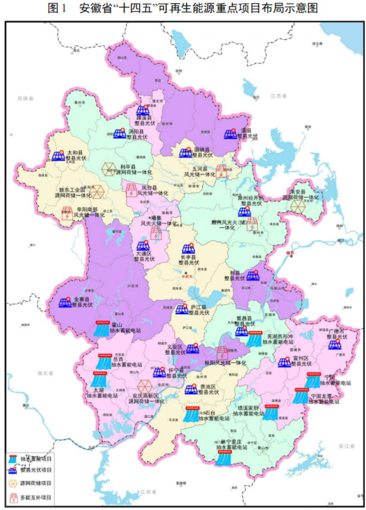安徽“十四五”能源規(guī)劃:5年新增風(fēng)光儲(chǔ)21GW,新能源重點(diǎn)項(xiàng)目布局圖公開8月1日,安徽省發(fā)展改革委、安徽省能源局印發(fā)了《安徽省能源發(fā)展“十四五”規(guī)劃》。文件顯示,安徽省“十四五”期間,新增并網(wǎng)風(fēng)電、光伏發(fā)電裝機(jī)1800萬千瓦左右,風(fēng)光裝機(jī)力爭(zhēng)實(shí)現(xiàn)倍增。其中光伏新增14.3GW、風(fēng)電新增3.88GW、新型儲(chǔ)能新增2.84GW;合計(jì)5年期間安徽省風(fēng)光儲(chǔ)將新增21.02GW。同時(shí)到2025年光伏裝機(jī)28GW、風(fēng)電裝機(jī)8GW、新型儲(chǔ)能3GW,風(fēng)光儲(chǔ)裝機(jī)合計(jì)39GW。