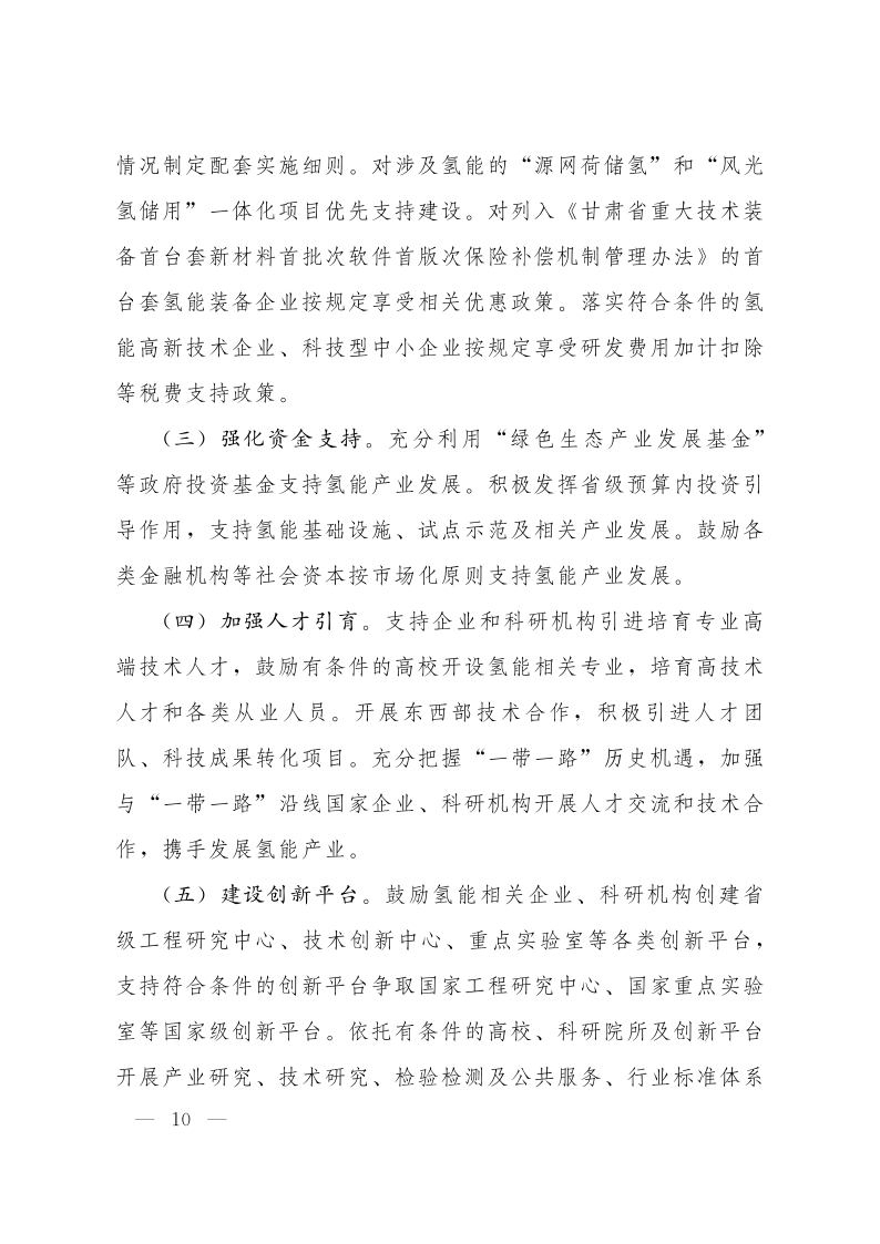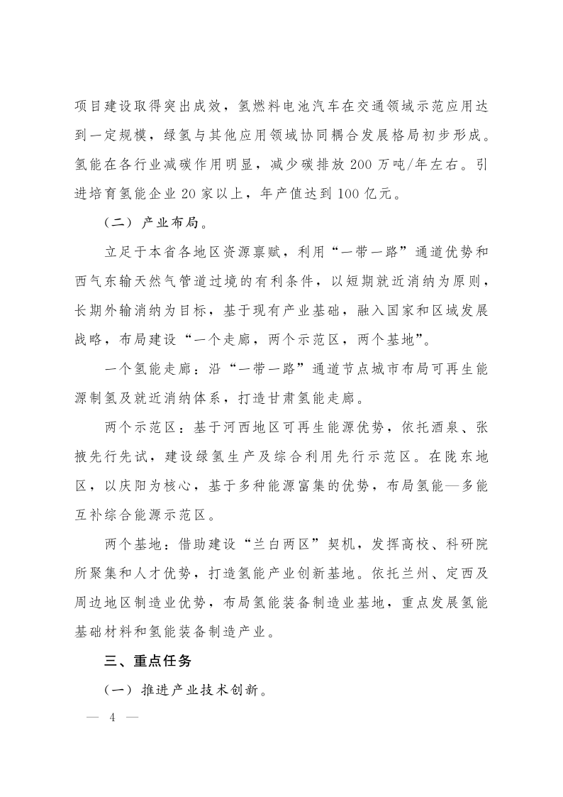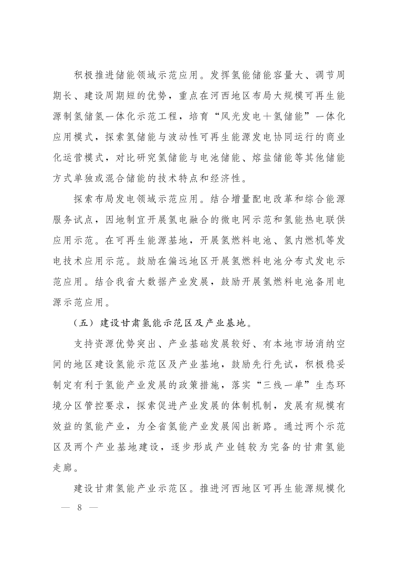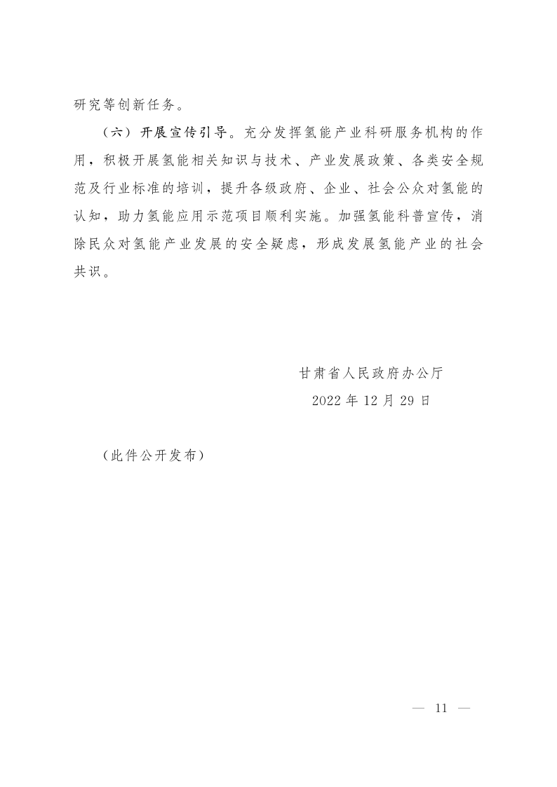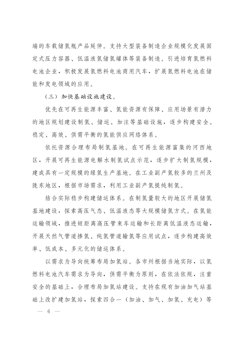 1月3日,甘肅省人民政府辦公廳發(fā)布關(guān)于氫能產(chǎn)業(yè)發(fā)展的指導(dǎo)意見,意見指出,支持在高速公路服務(wù)區(qū)內(nèi)布局建設(shè) “分布式光伏+制氫、儲氫、加氫”一體化示范應(yīng)用。培育 “風(fēng)光發(fā)電+氫儲能”一體化應(yīng)用模式,探索氫儲能與波動性可再生能源發(fā)電協(xié)同運(yùn)行的商業(yè)化運(yùn)營模式,對比研究氫儲能與電池儲能、熔鹽儲能等其他儲能方式單獨(dú)或混合儲能的技術(shù)特點(diǎn)和經(jīng)濟(jì)性。 原文如下: