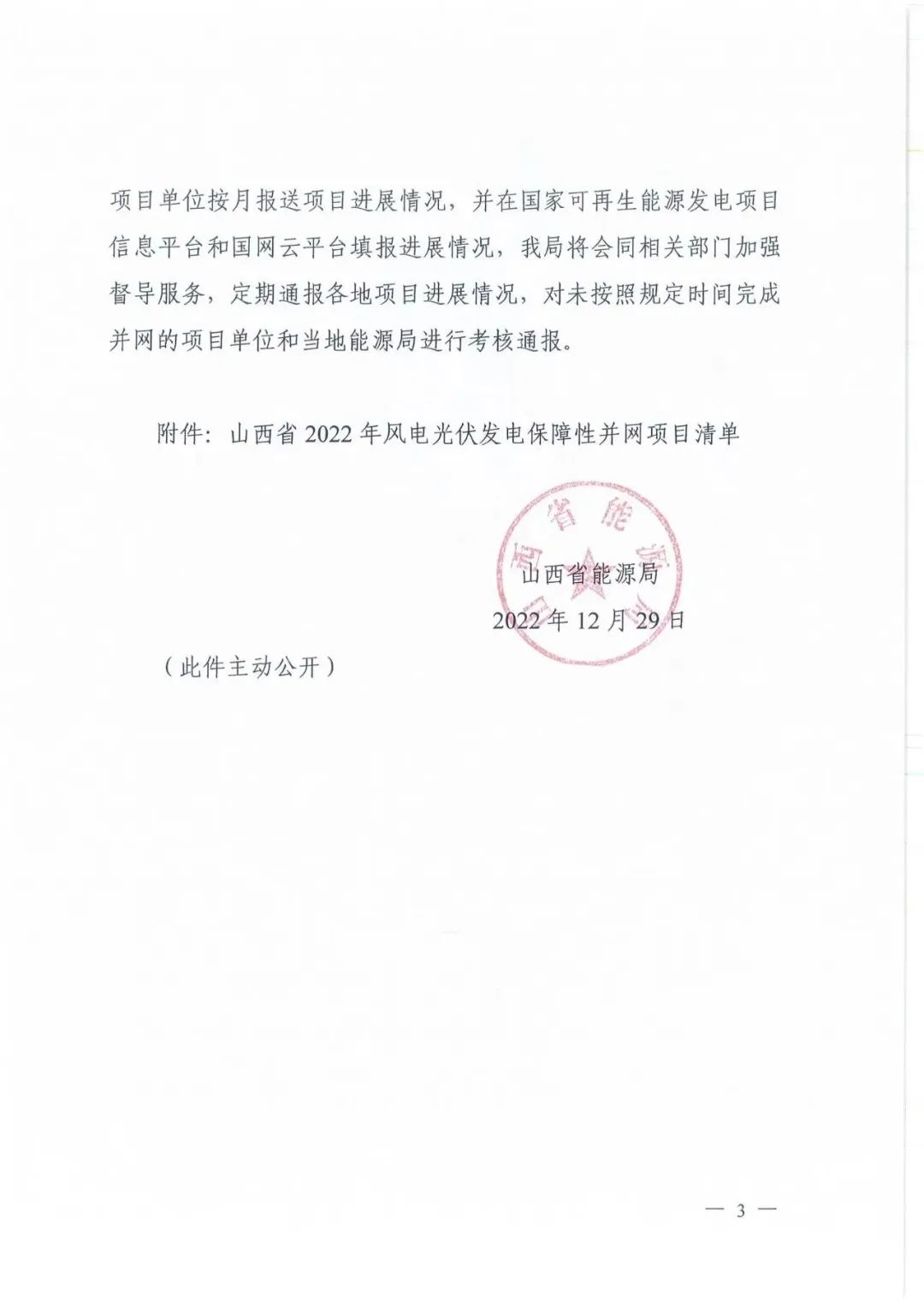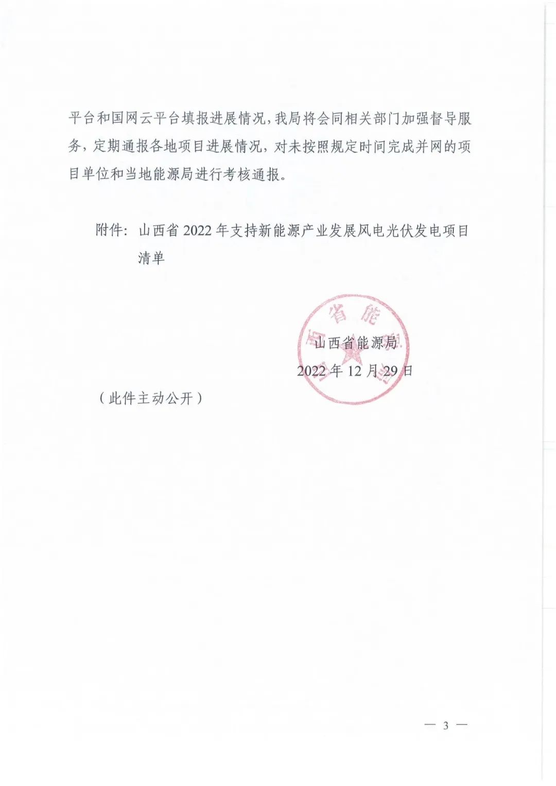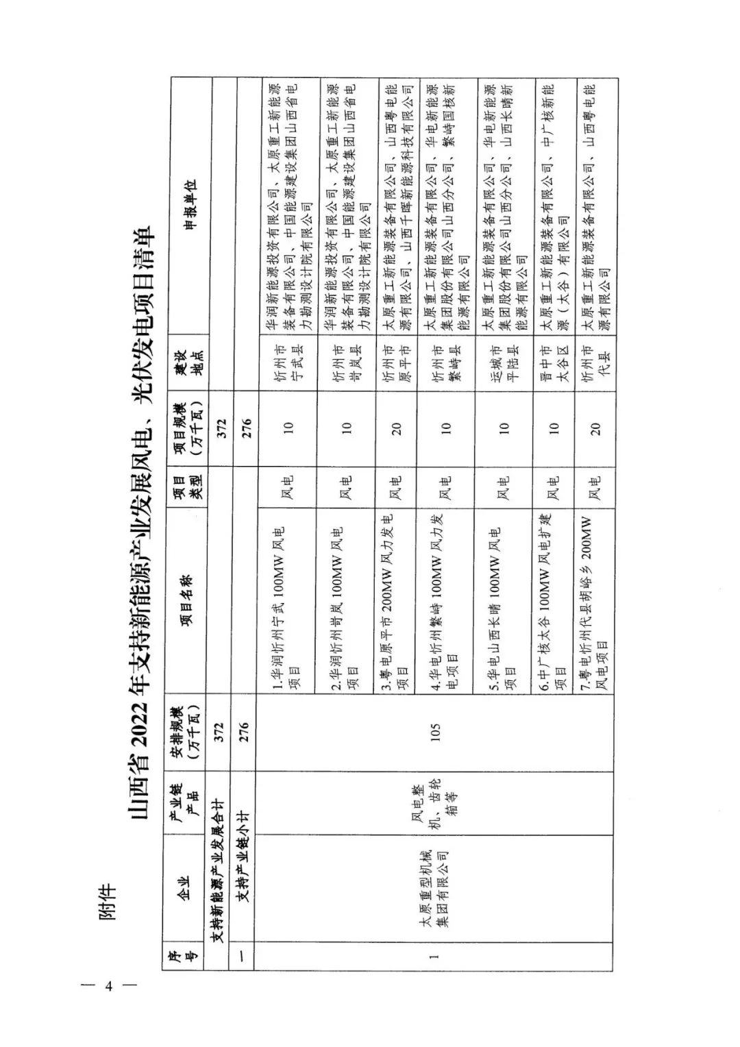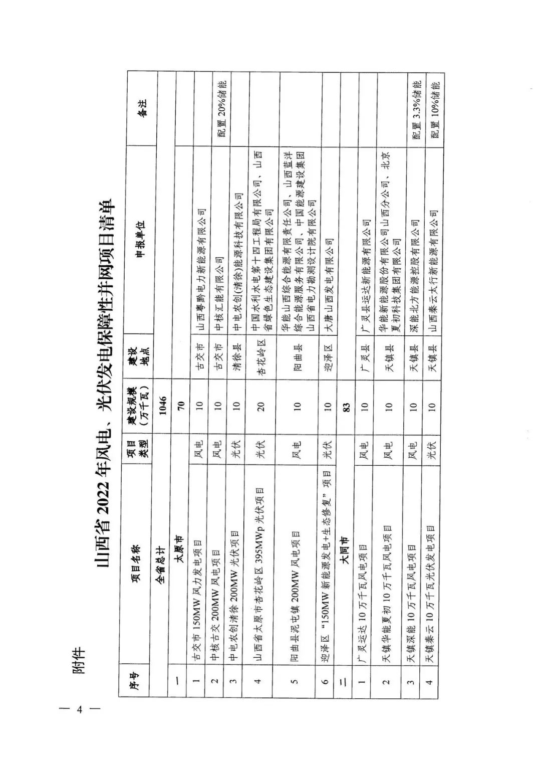 山西省能源局印發(fā)了《關(guān)于下達(dá)山西省2022年風(fēng)電光伏發(fā)電保障性并網(wǎng)年度建設(shè)計(jì)劃的通知》(晉能源新能源發(fā)〔2022〕428號)和《關(guān)于下達(dá)山西省2022年支持新能源產(chǎn)業(yè)發(fā)展風(fēng)電光伏發(fā)電建設(shè)計(jì)劃的通知》(晉能源新能源發(fā)〔2022〕429號),共下達(dá)風(fēng)電、光伏項(xiàng)目132個(gè),規(guī)模合計(jì)1418萬千瓦。保障性并網(wǎng)項(xiàng)目98個(gè),裝機(jī)1046萬千瓦(10.46GW)。其中,光伏項(xiàng)目68個(gè),裝機(jī)741萬千瓦(7.41GW),風(fēng)光儲一體項(xiàng)目2個(gè),裝機(jī)共25萬千瓦。要求確保光伏項(xiàng)目于2023年9月底前全容量并網(wǎng)發(fā)電。 支持新能源產(chǎn)業(yè)發(fā)展項(xiàng)目34個(gè),裝機(jī)372萬千瓦(3.72GW)。其中,光伏項(xiàng)目16個(gè),風(fēng)光一體項(xiàng)目1個(gè)(含光伏6萬千瓦),涉及光伏項(xiàng)目共197萬千瓦(1.97GW)。要求確保項(xiàng)目于2024年12月底全容量并網(wǎng)。 原文如下: