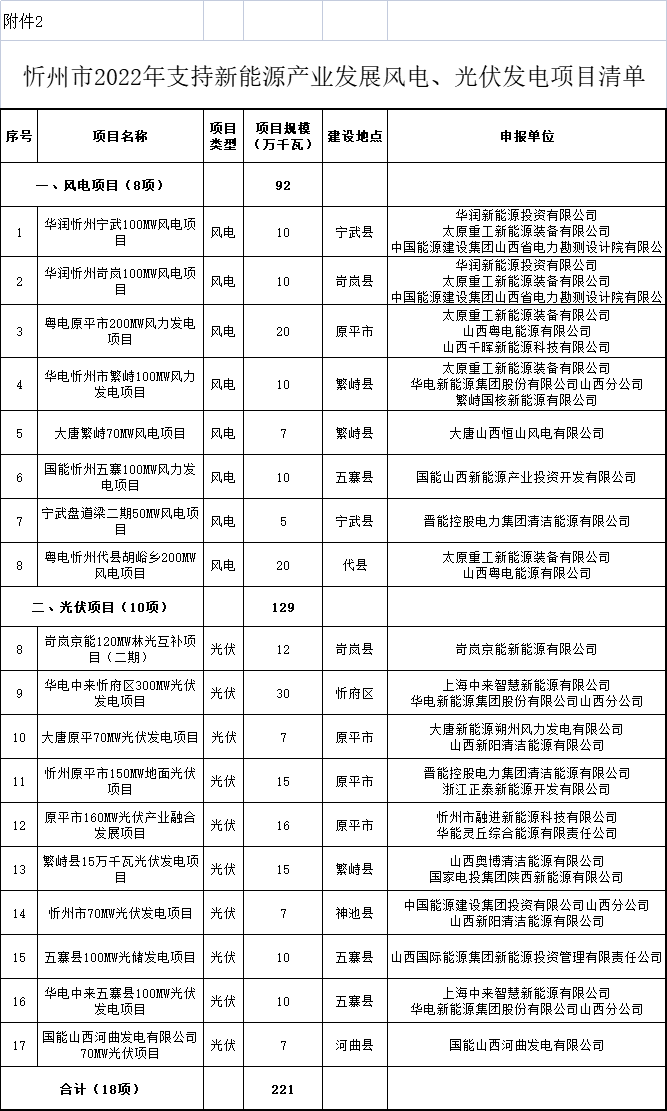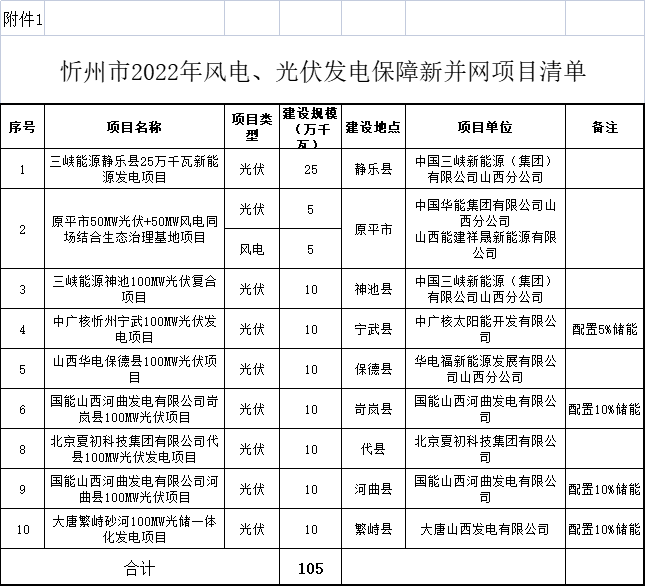 附件:忻州市2022年光伏發(fā)電保障性并網(wǎng)項目清單、忻州市2022年支持新能源產(chǎn)業(yè)發(fā)展風電、光伏發(fā)電項目清單
