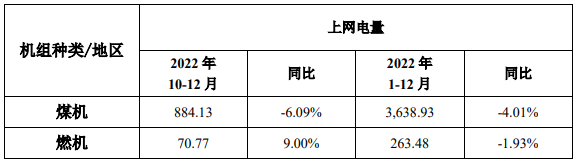 2022年第四季度,公司新投產(chǎn)機組情況如下: (單位:兆瓦)