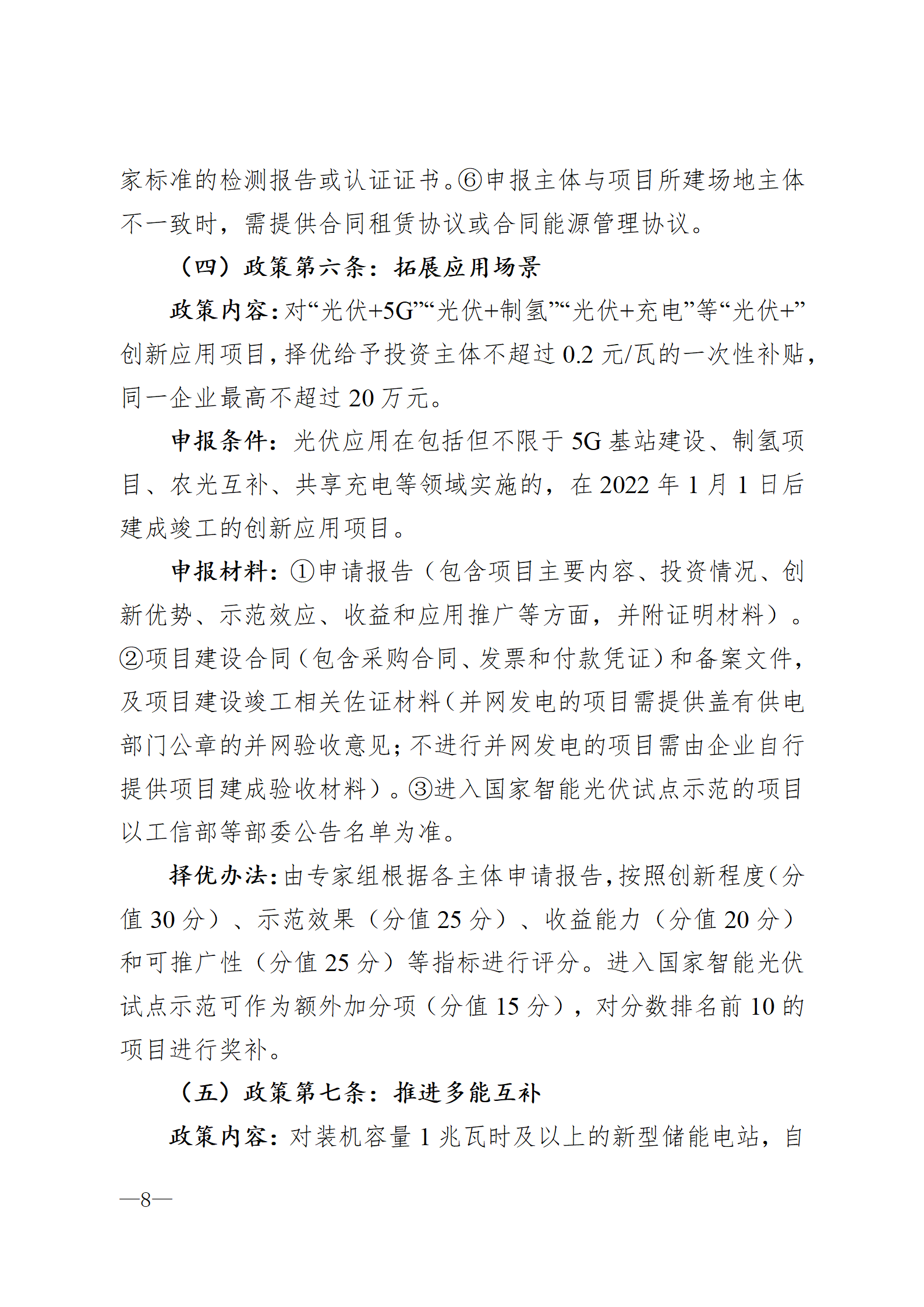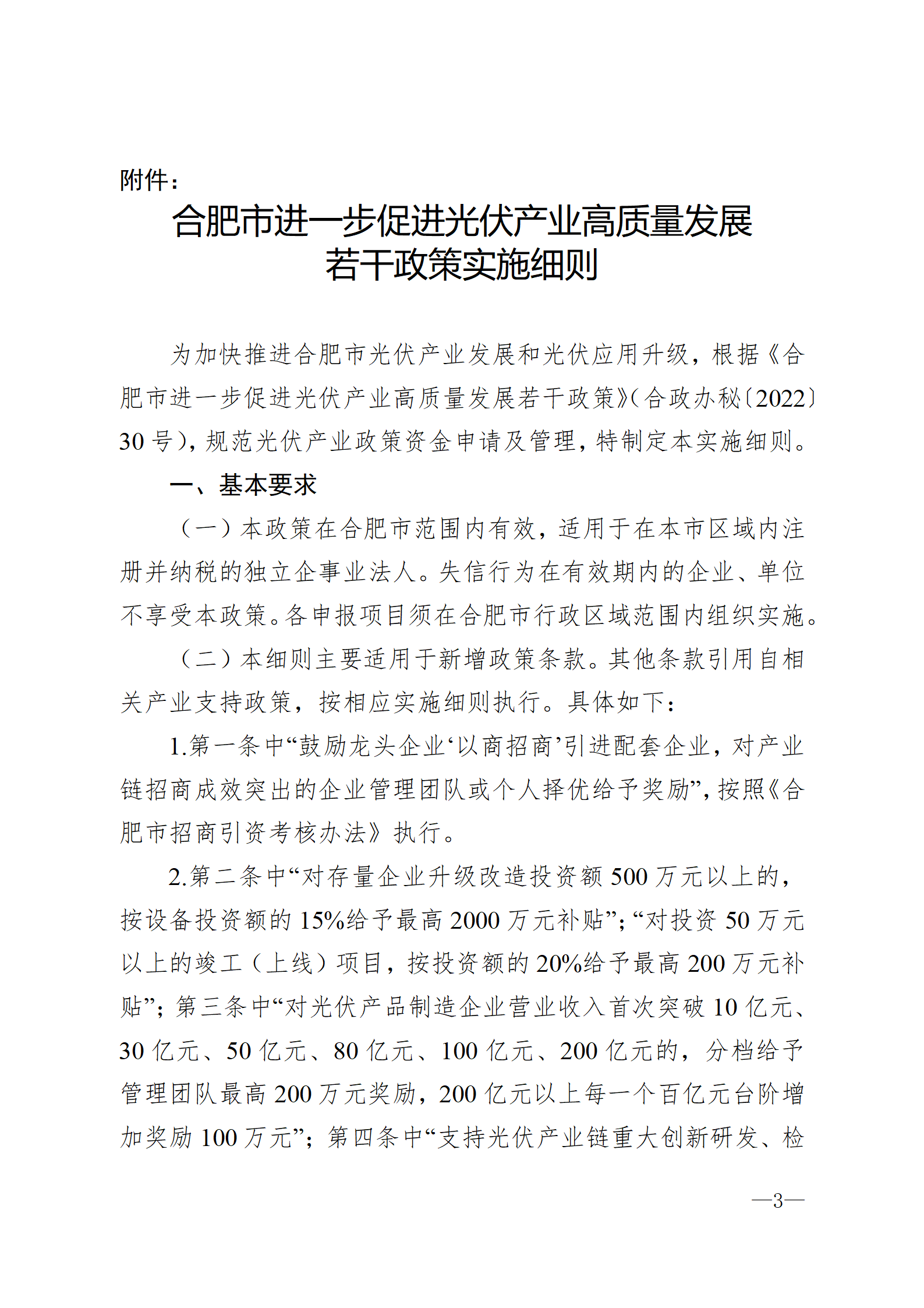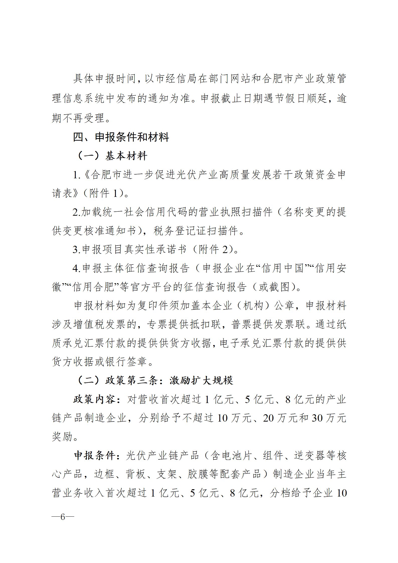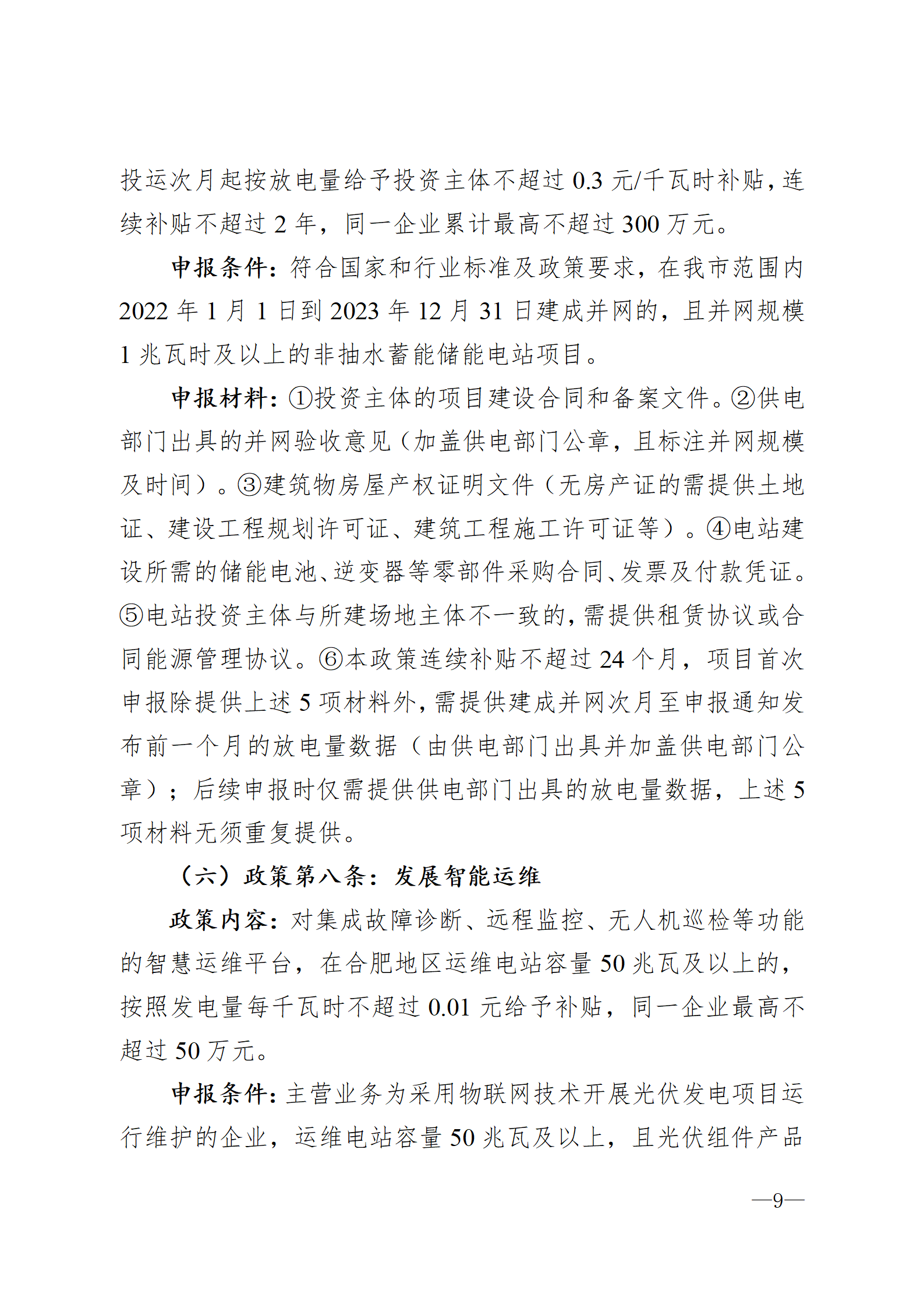 1月19日,安徽省合肥市高新區(qū)技術(shù)開(kāi)發(fā)管委會(huì)發(fā)布《關(guān)于開(kāi)展2022年度合肥市進(jìn)一步促進(jìn)光伏產(chǎn)業(yè)高質(zhì)量發(fā)展若干政策項(xiàng)目申報(bào)的通知》,本次項(xiàng)目申報(bào)主要包括實(shí)施細(xì)則中明確的政策第三條激勵(lì)擴(kuò)大規(guī)模、政策第五條支持分布式應(yīng)用、政策第六條拓展應(yīng)用場(chǎng)景、政策第七條推進(jìn)多能互補(bǔ)、政策第八條發(fā)展智能運(yùn)維。根據(jù)實(shí)施細(xì)則明確,政策其他有關(guān)條款按相應(yīng)產(chǎn)業(yè)政策及實(shí)施細(xì)則執(zhí)行,不在本次申報(bào)范圍內(nèi)。 申報(bào)主體于2023年1月16日至2月20日在合肥市產(chǎn)業(yè)政策綜合服務(wù)平臺(tái)進(jìn)行網(wǎng)上申報(bào)。 詳情如下: 關(guān)于開(kāi)展2022年度合肥市進(jìn)一步促進(jìn)光伏產(chǎn)業(yè)高質(zhì)量發(fā)展若干政策項(xiàng)目申報(bào)的通知 各有關(guān)單位: 為貫徹落實(shí)《合肥市人民政府辦公室關(guān)于印發(fā)合肥市進(jìn)一步促進(jìn)光伏產(chǎn)業(yè)高質(zhì)量發(fā)展若干政策的通知》(合政辦秘〔2022〕30號(hào))(以下簡(jiǎn)稱“光伏產(chǎn)業(yè)若干政策”),根據(jù)《合肥市進(jìn)一步促進(jìn)光伏產(chǎn)業(yè)高質(zhì)量發(fā)展若干政策實(shí)施細(xì)則》(以下簡(jiǎn)稱“實(shí)施細(xì)則”)要求,現(xiàn)開(kāi)展2022年度光伏若干政策項(xiàng)目申報(bào)工作。有關(guān)事項(xiàng)通知如下: 一、申報(bào)時(shí)間 申報(bào)主體于2023年1月16日至2月20日在合肥市產(chǎn)業(yè)政策綜合服務(wù)平臺(tái)進(jìn)行網(wǎng)上申報(bào)。 二、項(xiàng)目類(lèi)別 本次項(xiàng)目申報(bào)主要包括實(shí)施細(xì)則中明確的政策第三條激勵(lì)擴(kuò)大規(guī)模、政策第五條支持分布式應(yīng)用、政策第六條拓展應(yīng)用場(chǎng)景、政策第七條推進(jìn)多能互補(bǔ)、政策第八條發(fā)展智能運(yùn)維。根據(jù)實(shí)施細(xì)則明確,政策其他有關(guān)條款按相應(yīng)產(chǎn)業(yè)政策及實(shí)施細(xì)則執(zhí)行,不在本次申報(bào)范圍內(nèi)。 三、申報(bào)流程 申報(bào)主體登陸合肥市產(chǎn)業(yè)政策綜合服務(wù)平臺(tái)(https://hfcyzc.hfceloan.com/frontPage),完成注冊(cè)后,按照光伏產(chǎn)業(yè)若干政策和實(shí)施細(xì)則要求,在網(wǎng)上提交真實(shí)、完整的申報(bào)材料,于2月20日前同步報(bào)送項(xiàng)目申報(bào)材料紙質(zhì)版1份至高新區(qū)管委會(huì)1321辦公室。 附件:合肥市進(jìn)一步促進(jìn)光伏產(chǎn)業(yè)高質(zhì)量發(fā)展若干政策實(shí)施細(xì)則.docx 聯(lián)系人:張揚(yáng) 聯(lián)系電話:65869522