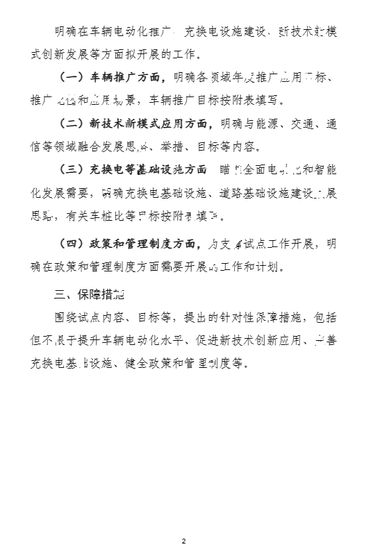 2月3日,工業(yè)和信息化部等八部門關于組織開展公共領域車輛全面電動化先行區(qū)試點工作的通知,通知指出,促進新技術創(chuàng)新應用。加快智能有序充電、大功率充電、自動充電、快速換電等新型充換電技術應用,加快“光儲充放”一體化試點應用。探索新能源汽車參與電力現(xiàn)貨市場的實施路徑,完善儲放綠色電力交易機制,加大智慧出行、智能綠色物流體系建設,促進智能網(wǎng)聯(lián)、車網(wǎng)融合等新技術應用,加快新能源汽車與能源、交通等領域融合發(fā)展。 原文如下: 工業(yè)和信息化部等八部門關于組織開展公共領域車輛全面電動化先行區(qū)試點工作的通知 工信部聯(lián)通裝函〔2023〕23號 各省、自治區(qū)、直轄市及計劃單列市、新疆生產(chǎn)建設兵團工業(yè)和信息化、交通運輸、發(fā)展改革、財政、生態(tài)環(huán)境、住房城鄉(xiāng)建設、能源、郵政主管部門: 為貫徹落實黨中央、國務院“碳達峰、碳中和”戰(zhàn)略部署,推進《新能源汽車產(chǎn)業(yè)發(fā)展規(guī)劃(2021—2035年)》深入實施,推動提升公共領域車輛電動化水平,加快建設綠色低碳交通運輸體系,工業(yè)和信息化部、交通運輸部會同發(fā)展改革委、財政部、生態(tài)環(huán)境部、住房城鄉(xiāng)建設部、能源局、郵政局在全國范圍內(nèi)啟動公共領域車輛全面電動化先行區(qū)試點工作[本文所指公共領域車輛包括公務用車、城市公交、出租(包括巡游出租和網(wǎng)絡預約出租汽車)、環(huán)衛(wèi)、郵政快遞、城市物流配送、機場等領域用車],試點期為2023—2025年。有關事項通知如下: 一、總體要求 按照需求牽引、政策引導、因地制宜、聯(lián)動融合的原則,在完善公共領域車輛全面電動化支撐體系,促進新能源汽車推廣、基礎設施建設、新技術新模式應用、政策標準法規(guī)完善等方面積極創(chuàng)新、先行先試,探索形成一批可復制可推廣的經(jīng)驗和模式,為新能源汽車全面市場化拓展和綠色低碳交通運輸體系建設發(fā)揮示范帶動作用。 二、主要目標 (一)車輛電動化水平大幅提高。試點領域新增及更新車輛中新能源汽車比例顯著提高,其中城市公交、出租、環(huán)衛(wèi)、郵政快遞、城市物流配送領域力爭達到80%。 (二)充換電服務體系保障有力。建成適度超前、布局均衡、智能高效的充換電基礎設施體系,服務保障能力顯著提升,新增公共充電樁(標準樁)與公共領域新能源汽車推廣數(shù)量(標準車)比例力爭達到1:1,高速公路服務區(qū)充電設施車位占比預期不低于小型停車位的10%,形成一批典型的綜合能源服務示范站。 (三)新技術新模式創(chuàng)新應用。建立健全適應新能源汽車創(chuàng)新發(fā)展的智能交通系統(tǒng)、綠色能源供給系統(tǒng)、新型信息通信網(wǎng)絡體系,實現(xiàn)新能源汽車與電網(wǎng)高效互動,與交通、通信等領域融合發(fā)展。智能有序充電、大功率充電、快速換電等新技術應用有效擴大,車網(wǎng)融合等新技術得到充分驗證。 三、重點任務 (一)提升車輛電動化水平??茖W合理制定新能源汽車推廣目標(參考數(shù)量標準見附件3),因地制宜開展多元化場景應用,鼓勵在短途運輸、城建物流以及礦場等特定場景開展新能源重型貨車推廣應用,加快老舊車輛報廢更新為新能源汽車,加快推進公共領域車輛全面電動化。支持換電、融資租賃、“車電分離”等商業(yè)模式創(chuàng)新。 (二)促進新技術創(chuàng)新應用。加快智能有序充電、大功率充電、自動充電、快速換電等新型充換電技術應用,加快“光儲充放”一體化試點應用。探索新能源汽車參與電力現(xiàn)貨市場的實施路徑,完善儲放綠色電力交易機制,加大智慧出行、智能綠色物流體系建設,促進智能網(wǎng)聯(lián)、車網(wǎng)融合等新技術應用,加快新能源汽車與能源、交通等領域融合發(fā)展。 (三)完善充換電基礎設施。優(yōu)化中心城區(qū)公共充電網(wǎng)絡建設布局,加強公路沿線、郊區(qū)鄉(xiāng)鎮(zhèn)充換電基礎設施建設和城際快充網(wǎng)絡建設。充分考慮公交、出租、物流、郵政快遞等充電需求,加強停車場站等專用充換電站建設。推動充換電設施納入市政設施范疇,推進充電運營平臺互聯(lián)互通,鼓勵內(nèi)部充電樁對外開放。鼓勵利用現(xiàn)有場地和設施,建設一批集充換電、加油等多位一體的綜合能源服務站。建立形成網(wǎng)絡完善、規(guī)范有序、循環(huán)高效的動力電池回收利用和處理體系。 (四)健全政策和管理制度。完善政策支撐體系,鼓勵試點城市加大財政支持力度,因地制宜研究出臺運營補貼、通行路權、用電優(yōu)惠、低/零碳排放區(qū)等支持政策,探索建立適應新技術新模式發(fā)展的政策體系。建立健全新能源汽車和基礎設施安全運行監(jiān)測體系,提升安全運行水平。探索制定綜合能源服務站、二手車流通等相關標準和技術規(guī)范。 四、組織實施 (一)試點申報。試點工作以城市為主體自愿申報,有意愿參加試點的城市,編寫試點工作方案(見附件1),經(jīng)省級相關部門審核后推薦上報工業(yè)和信息化部、交通運輸部。首批試點集中受理申報材料的截止時間為2023年3月31日,此后仍將常態(tài)化受理試點申報材料。工業(yè)和信息化部、交通運輸部會同相關部門,按照