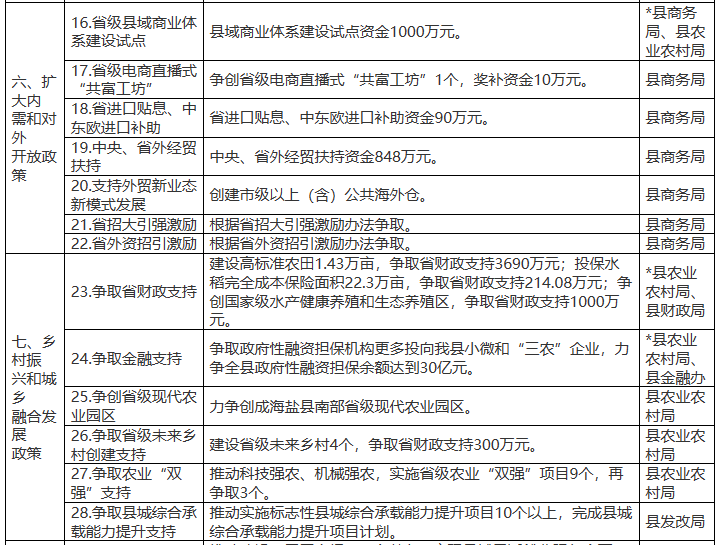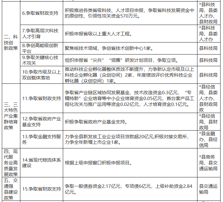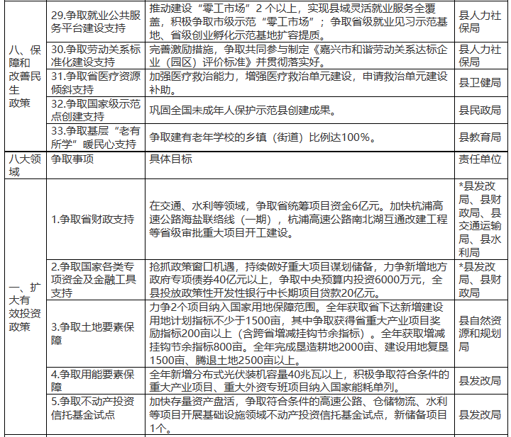 2月7日,浙江海鹽縣發(fā)展和改革局關(guān)于公開征求《海鹽縣貫徹<浙江省推動(dòng)經(jīng)濟(jì)高質(zhì)量發(fā)展若干政策>承接落實(shí)方案(征求意見稿)》的通知,通知提到: 支持推進(jìn)重點(diǎn)領(lǐng)域投資。加快清潔電源、電網(wǎng)、油氣儲(chǔ)運(yùn)等重大能源項(xiàng)目建設(shè),繼續(xù)實(shí)施“風(fēng)光倍增”,對(duì)投產(chǎn)的光伏、風(fēng)電項(xiàng)目實(shí)行全額保障性并網(wǎng),支持建設(shè)符合規(guī)定的農(nóng)光互補(bǔ)項(xiàng)目,整縣推進(jìn)公共建筑、公共設(shè)施、工業(yè)園區(qū)及企業(yè)廠房、居民屋頂分布式光伏規(guī)模化發(fā)展,對(duì)2022年1月1日起至2023年12月31日期間建成并網(wǎng)發(fā)電的農(nóng)戶屋頂光伏項(xiàng)目,對(duì)屋頂所有方給予每瓦0.2元一次性投資補(bǔ)助,單戶最高不超過(guò)2000元。推進(jìn)一批儲(chǔ)能、新型電力系統(tǒng)示范項(xiàng)目建設(shè),對(duì)制造業(yè)企業(yè)投資300萬(wàn)元及以上的新型儲(chǔ)能電站,給予實(shí)際設(shè)備投資的10%限額400萬(wàn)元的一次性補(bǔ)助。強(qiáng)化存量資產(chǎn)盤活,支持符合條件的高速公路、倉(cāng)儲(chǔ)物流、水利等項(xiàng)目開展基礎(chǔ)設(shè)施領(lǐng)域不動(dòng)產(chǎn)投資信托基金試點(diǎn)。 原文如下: 關(guān)于公開征求《海鹽縣貫徹<浙江省推動(dòng)經(jīng)濟(jì)高質(zhì)量發(fā)展若干政策>承接落實(shí)方案(征求意見稿)》的通知 為深入貫徹中央、省委和嘉興市委經(jīng)濟(jì)工作會(huì)議精神,進(jìn)一步提振市場(chǎng)主體信心,穩(wěn)定發(fā)展預(yù)期,推動(dòng)經(jīng)濟(jì)高質(zhì)量發(fā)展,在貫徹《浙江省人民政府印發(fā)關(guān)于推動(dòng)經(jīng)濟(jì)高質(zhì)量發(fā)展若干政策的通知》(浙政發(fā)〔2023〕2號(hào))的基礎(chǔ)之上,結(jié)合海鹽實(shí)際,縣發(fā)改局起草了《海鹽縣貫徹<浙江省推動(dòng)經(jīng)濟(jì)高質(zhì)量發(fā)展若干政策>承接落實(shí)方案(征求意見稿)》,現(xiàn)將征求意見稿全文進(jìn)行公示,公示期內(nèi)若有意見,可書面、網(wǎng)上留言或電話反饋至海鹽縣發(fā)展和改革局。 公示日期:2023年2月7日至2月15日。 聯(lián)系人:徐飛 聯(lián)系電話:0573-86021647 聯(lián)系地址:海鹽縣武原街道秦山路128號(hào) 郵編:314300 附件:1.《海鹽縣貫徹<浙江省推動(dòng)經(jīng)濟(jì)高質(zhì)量發(fā)展若干政策>承接落實(shí)方案(征求意見稿)》 2.海鹽縣貫徹《浙江省推動(dòng)經(jīng)濟(jì)高質(zhì)量發(fā)展若干政策》承接落實(shí)方案的起草說(shuō)明.pdf 海鹽縣發(fā)展和改革局 2023年2月7日 海鹽縣貫徹《浙江省推動(dòng)經(jīng)濟(jì)高質(zhì)量發(fā)展若干政策》承接落實(shí)方案(征求意見稿) 為深入貫徹中央、省委和市委經(jīng)濟(jì)工作會(huì)議精神,進(jìn)一步提振市場(chǎng)主體信心,穩(wěn)定發(fā)展預(yù)期,推動(dòng)經(jīng)濟(jì)高質(zhì)量發(fā)展,實(shí)現(xiàn)質(zhì)的有效提升和量的合理增長(zhǎng),結(jié)合海鹽縣實(shí)際,現(xiàn)就貫徹浙江省推動(dòng)經(jīng)濟(jì)高質(zhì)量發(fā)展若干政策,制定承接落實(shí)方案。 一、擴(kuò)大有效投資政策(由縣發(fā)改局牽頭實(shí)施) 高質(zhì)量開展比拼“有效投入”活動(dòng),堅(jiān)持“項(xiàng)目為王、項(xiàng)目為先”,形成儲(chǔ)備一批、謀劃一批、開工一批、建設(shè)一批、投產(chǎn)一批的良性循環(huán)。重點(diǎn)以2023年擴(kuò)投資清單920個(gè)項(xiàng)目為抓手,實(shí)施動(dòng)態(tài)管理全程跟進(jìn)服務(wù),深化完善領(lǐng)導(dǎo)掛帥、節(jié)點(diǎn)管理、三色預(yù)警、專班推進(jìn)、分級(jí)協(xié)調(diào)機(jī)制,抓項(xiàng)目促投資,推動(dòng)固定資產(chǎn)投資增長(zhǎng)10%以上。 1.精準(zhǔn)財(cái)政資金投向。聚焦重大項(xiàng)目資金保障,縣財(cái)政2023 年安排政府投資項(xiàng)目資金29.7億元,其中交通類資金15.4億元、城建類資金4.58億元、教育衛(wèi)生類資金9.05億元、其他類 0.57億元。加快項(xiàng)目前期,全年繼續(xù)統(tǒng)籌1000萬(wàn)元用于重大項(xiàng)目前期研究。 2.向上爭(zhēng)取資金支持。搶抓政策窗口機(jī)遇,謀劃儲(chǔ)備一批符合國(guó)家、省重點(diǎn)支持投向領(lǐng)域項(xiàng)目。爭(zhēng)取國(guó)家各類專項(xiàng)資金、金融工具對(duì)重大項(xiàng)目的支持,力爭(zhēng)新增地方政府專項(xiàng)債券40億元以上,力爭(zhēng)中央預(yù)算內(nèi)投資6000萬(wàn)元,全縣投放政策性開發(fā)性銀行中長(zhǎng)期項(xiàng)目貸款20億元以上。 3.加強(qiáng)土地要素保障。2023年,全縣供應(yīng)建設(shè)用地5000畝以上,力爭(zhēng)2個(gè)項(xiàng)目納入國(guó)家用地保障范圍。全年獲取省下達(dá)新增建設(shè)用地計(jì)劃指標(biāo)不少于1500畝,其中爭(zhēng)取獲得省重大產(chǎn)業(yè)項(xiàng)目獎(jiǎng)勵(lì)指標(biāo)200畝以上(含跨省增減掛鉤節(jié)余指標(biāo))。通過(guò)農(nóng)村土地綜合整治,獲取增減掛鉤節(jié)余指標(biāo)800畝。全年完成墾造耕地2000畝、建設(shè)用地復(fù)墾1500畝、騰退土地2500畝以上,優(yōu)先保障重大項(xiàng)目建設(shè)需求。強(qiáng)化計(jì)劃指標(biāo)執(zhí)行,確保6月底前省自然資源廳下