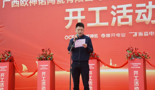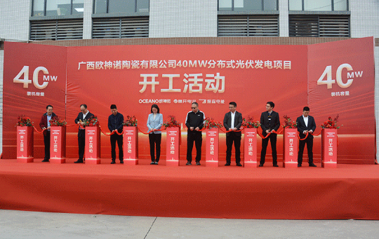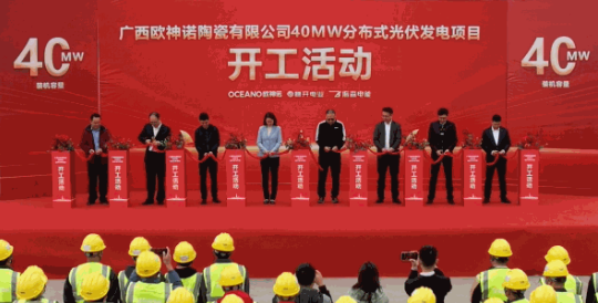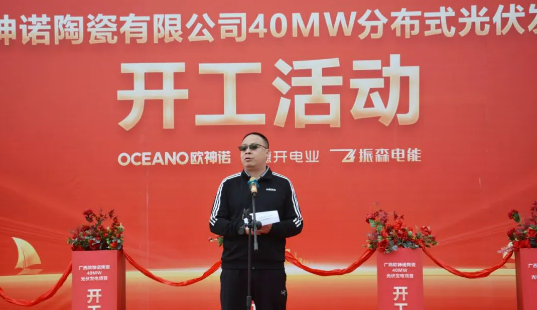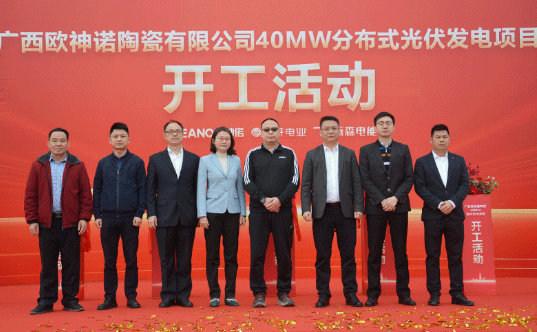 2023年2月15日上午,由振森電能公司和穗開電業(yè)公司投資建設(shè)的 “廣西歐神諾40MWp分布式光伏發(fā)電項(xiàng)目” 開工活動(dòng)在廣西歐神諾陶瓷有限公司隆重舉行。振森電能有限公司董事長(zhǎng)黃保江、總經(jīng)理王磊,現(xiàn)代能源集團(tuán)副總經(jīng)理、穗開電業(yè)公司董事長(zhǎng)楊珂、穗開電業(yè)副總經(jīng)理李為民,廣西歐神諾陶瓷有限公司總經(jīng)理蒙臻明及施工方代表等聯(lián)合出席活動(dòng)。