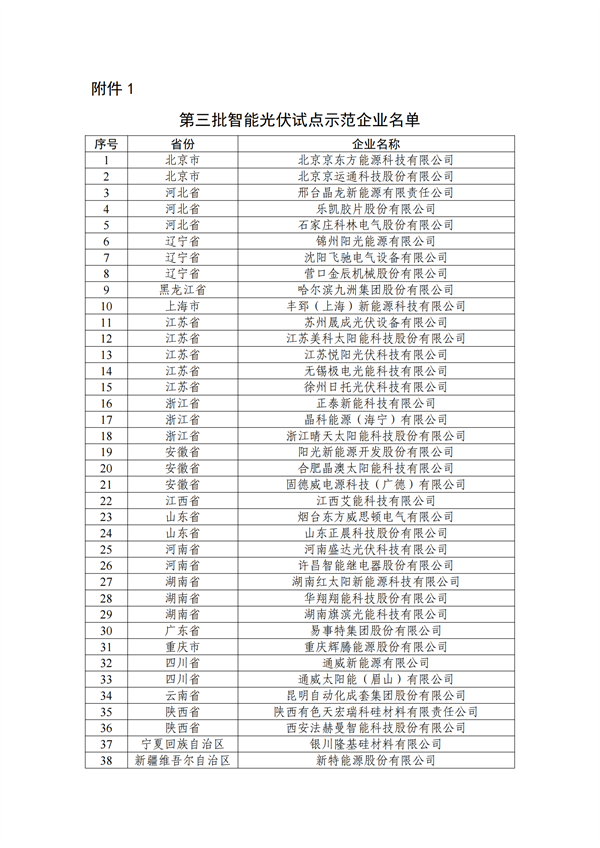 2月23日,工業(yè)和信息化部公布了第三批智能光伏試點示范名單,共有43家企業(yè)、54個項目入選。 原文見下: 工業(yè)和信息化部 住房和城鄉(xiāng)建設部 交通運輸部 農(nóng)業(yè)農(nóng)村部 國家能源局公告 2023年 第1號 為貫徹落實《智能光伏產(chǎn)業(yè)創(chuàng)新發(fā)展行動計劃(2021—2025年)》(工信部聯(lián)電子〔2021〕226號),經(jīng)省級有關部門推薦、專家評審、網(wǎng)上公示等程序,現(xiàn)將第三批智能光伏試點示范企業(yè)和示范項目名單予以公告。 附件: 1.第三批智能光伏試點示范企業(yè)名單 2.第三批智能光伏試點示范項目名單 工業(yè)和信息化部 住房和城鄉(xiāng)建設部 交通運輸部 農(nóng)業(yè)農(nóng)村部 國家能源局 2023年2月9日