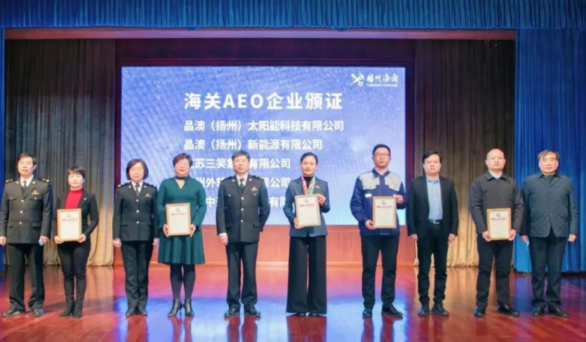 近日,揚(yáng)州海關(guān)舉行新獲批AEO企業(yè)頒證儀式。南京海關(guān)、揚(yáng)州市政府領(lǐng)導(dǎo)為晶澳科技揚(yáng)州基地等企業(yè)頒發(fā)《AEO高級(jí)認(rèn)證企業(yè)證書》。全球貿(mào)易“綠色通行證”的獲得,將為晶澳科技繼續(xù)深耕國(guó)際市場(chǎng)注入新動(dòng)能。 AEO即“經(jīng)認(rèn)證的經(jīng)營(yíng)者(Authorized?Economic?Operator)”。通過(guò)AEO認(rèn)證的企業(yè),享有中國(guó)海關(guān)授予企業(yè)的最高信用等級(jí),通過(guò)各國(guó)(地區(qū))海關(guān)間AEO互認(rèn),給予誠(chéng)信守法企業(yè)最大程度的通關(guān)便利,是全球貿(mào)易的“綠色通行證”。AEO企業(yè)可享受海關(guān)優(yōu)先辦理、減少監(jiān)管頻次、降低通關(guān)成本、縮短辦理時(shí)間以及AEO互認(rèn)國(guó)家或者地區(qū)海關(guān)通關(guān)便利等多項(xiàng)優(yōu)惠措施。截至今年2月,我國(guó)已與23個(gè)經(jīng)濟(jì)體簽署AEO互認(rèn)協(xié)議,覆蓋50個(gè)國(guó)家和地區(qū)。