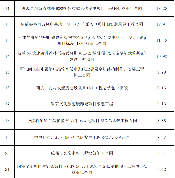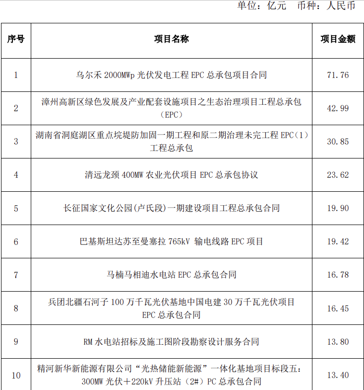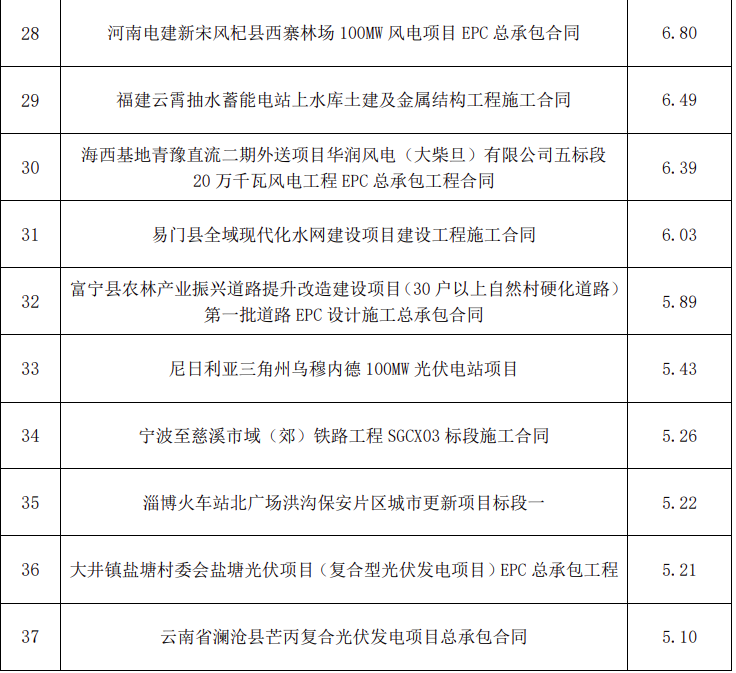中國電建2023年前2月新簽?zāi)茉措娏贤?56億 同比增超3倍中國電建1月至2月新簽合同金額1736.02億元,同比增長43.26%。其中能源電力新簽項目數(shù)量765個, 簽約金額956.47億元,同比增長330.96%。 2023年2月,中國電建新簽合同金額在人民幣5億元以上的單個項目包括兵團北疆石河子 100 萬千瓦光伏基地中國電建 30 萬千瓦光伏項目 EPC 總承包合同等37個項目,具體如下: