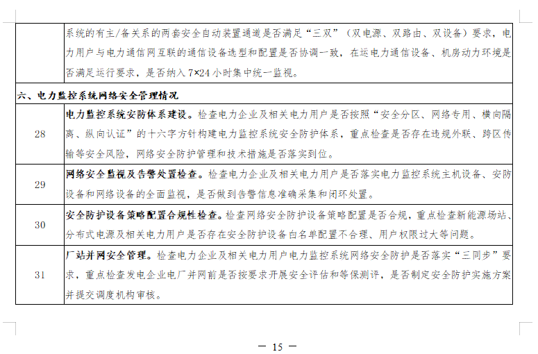 3月16日,國家能源局綜合司公布關(guān)于開展電力二次系統(tǒng)安全專項(xiàng)監(jiān)管工作的通知,通知指出,監(jiān)管范圍及重點(diǎn)任務(wù)包括:依據(jù)國家及行業(yè)相關(guān)規(guī)程規(guī)定、技術(shù)標(biāo)準(zhǔn)及反事故措施要求,檢查電力監(jiān)控系統(tǒng)安防體系、人員配置、安全監(jiān)視、風(fēng)險管控、應(yīng)急機(jī)制等方面的建設(shè)運(yùn)行情況,重點(diǎn)檢查可能影響電網(wǎng)安全的新能源場站、分布式電源及鐵路牽引站等電力企業(yè)及相關(guān)電力用戶的網(wǎng)絡(luò)安全專人專崗配置、涉網(wǎng)安防措施建設(shè)應(yīng)用、安防設(shè)備策略配置合規(guī)性、網(wǎng)絡(luò)安全監(jiān)視、風(fēng)險管控及隱患治理等情況。 原文如下: 國家能源局綜合司關(guān)于開展電力二次系統(tǒng)安全專項(xiàng)監(jiān)管工作的通知 國能綜通安全〔2023〕21號 各?。ㄗ灾螀^(qū)、直轄市)能源局,有關(guān)?。ㄗ灾螀^(qū)、直轄市)及新疆生產(chǎn)建設(shè)兵團(tuán)發(fā)展改革委,工業(yè)和信息化主管部門,北京市城市管理委,各派出機(jī)構(gòu),全國電力安全生產(chǎn)委員會有關(guān)企業(yè)成員單位: 為進(jìn)一步加強(qiáng)電力二次系統(tǒng)安全管理,確保電力系統(tǒng)安全穩(wěn)定運(yùn)行和電力可靠供應(yīng),國家能源局決定在全國范圍內(nèi)組織開展電力二次系統(tǒng)安全專項(xiàng)監(jiān)管工作。現(xiàn)將《電力二次系統(tǒng)安全專項(xiàng)監(jiān)管工作方案》印發(fā)你們,請認(rèn)真組織落實(shí)。 電力二次系統(tǒng)安全專項(xiàng)監(jiān)管工作方案 為深入貫徹習(xí)近平總書記關(guān)于安全生產(chǎn)重要指示批示精神,嚴(yán)格執(zhí)行黨中央、國務(wù)院關(guān)于電力安全風(fēng)險管控決策部署,進(jìn)一步強(qiáng)化電力二次系統(tǒng)安全管理,切實(shí)筑牢電力系統(tǒng)安全防線,堅決杜絕電網(wǎng)大面積停電事件,國家能源局決定開展電力二次系統(tǒng)安全專項(xiàng)監(jiān)管?,F(xiàn)制定方案如下。 一、總體要求 認(rèn)真貫徹落實(shí)黨的二十大精神和習(xí)近平總書記關(guān)于安全生產(chǎn)重要論述和重要指示批示精神,堅持人民至上、生命至上,統(tǒng)籌發(fā)展和安全,通過開展電力二次系統(tǒng)安全專項(xiàng)監(jiān)管,進(jìn)一步健全電力二次系統(tǒng)安全管理體制,加強(qiáng)電力二次系統(tǒng)各專業(yè)、全過程、全環(huán)節(jié)技術(shù)監(jiān)督,全面強(qiáng)化電力二次系統(tǒng)運(yùn)行風(fēng)險管控和安全隱患治理,全力提升大電網(wǎng)安全運(yùn)行和電力供應(yīng)保障能力。 二、監(jiān)管依據(jù) (一)《電網(wǎng)調(diào)度管理?xiàng)l例》 (二)《中華人民共和國網(wǎng)絡(luò)安全法》 (三)《電力監(jiān)控系統(tǒng)安全防護(hù)規(guī)定》 (四)《電網(wǎng)運(yùn)行準(zhǔn)則》(GB/T 31464-2015) (五)國家能源局關(guān)于印發(fā)《電力二次系統(tǒng)安全管理若干規(guī)定》的通知(國能發(fā)安全規(guī)〔2022〕92號) (六)國家能源局綜合司關(guān)于印發(fā)《防止直流輸電系統(tǒng)安全事故的重點(diǎn)要求》的通知(國能綜通安全〔2022〕115號) (七)其他相關(guān)法律法規(guī)、規(guī)章制度和國家、行業(yè)標(biāo)準(zhǔn) (八)各電力調(diào)度機(jī)構(gòu)相關(guān)規(guī)程規(guī)定 三、監(jiān)管范圍及重點(diǎn)任務(wù) 落實(shí)《電力二次系統(tǒng)安全管理若干規(guī)定》(以下簡稱《規(guī)定》)關(guān)于安全監(jiān)管的相關(guān)要求,組織電力調(diào)度機(jī)構(gòu)(以下簡稱調(diào)度機(jī)構(gòu))對其調(diào)度管轄范圍內(nèi)電力企業(yè)、相關(guān)電力用戶(指農(nóng)林水利、工礦企業(yè)、交通運(yùn)輸、公共服務(wù)等具有二次系統(tǒng)的大負(fù)荷用戶,以及能夠響應(yīng)調(diào)度指令的負(fù)荷聚合商等)以及下一級調(diào)度機(jī)構(gòu)二次系統(tǒng)安全管理工作開展專項(xiàng)監(jiān)管,重點(diǎn)開展以下7方面工作。 (一)二次系統(tǒng)技術(shù)監(jiān)督工作情況 依據(jù)《規(guī)定》要求,檢查電力企業(yè)及相關(guān)電力用戶二次系統(tǒng)各專業(yè)規(guī)劃建設(shè)、安裝調(diào)試、驗(yàn)收檢驗(yàn)、運(yùn)行維護(hù)等全過程技術(shù)監(jiān)督工作機(jī)制建設(shè)及相關(guān)管理職責(zé)落實(shí)情況,國家行業(yè)電力二次系統(tǒng)反事故措施、調(diào)度機(jī)構(gòu)關(guān)于涉網(wǎng)二次系統(tǒng)相關(guān)技術(shù)監(jiān)督意見及相關(guān)規(guī)定要求等的落實(shí)整改情況。 (二)安全生產(chǎn)責(zé)任落實(shí)情況 依據(jù)《規(guī)定》要求,檢查電力企業(yè)及相關(guān)電力用戶二次系統(tǒng)安全管理主體責(zé)任落實(shí)和體制機(jī)制建設(shè)情況,重點(diǎn)檢查二次系統(tǒng)全員安全生產(chǎn)責(zé)任制是否落實(shí)、專業(yè)技術(shù)人員配置是否完備、專業(yè)管理界面劃分是否清晰、安全雙重預(yù)防體系是否健全、涉網(wǎng)二次系統(tǒng)安全管理是否到位、安全生產(chǎn)相關(guān)事項(xiàng)報送是否及時、安全事故調(diào)查分析是否全面、負(fù)荷控制措施是否落實(shí)等。 (三)繼電保護(hù)及安全自動裝置安全管理情況 依據(j