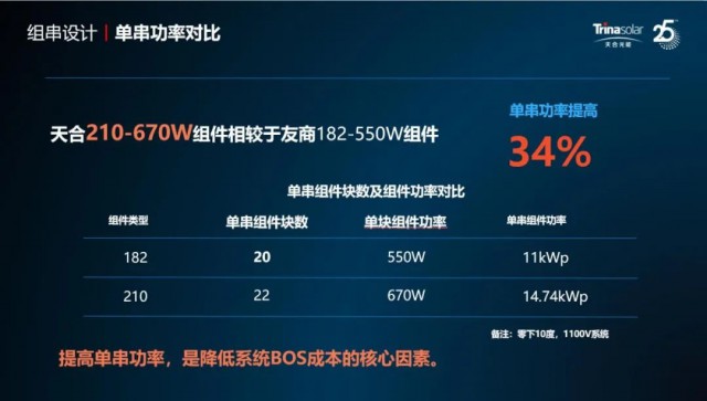 2023年4月12日,福建(廈門)光儲展覽會于廈門隆重開幕。天合光能中國區(qū)組件分銷技術服務經(jīng)理杜偉分享了《大勢所趨,登峰造極670W+引領分布式高質(zhì)量發(fā)展》的主題報告,與參會上下游代表企業(yè)共同探討福建分布式光伏市場高質(zhì)量發(fā)展的路徑,助力能源綠色低碳轉(zhuǎn)型升級。 光伏6.0時代 超高功率大勢所趨 隨著行業(yè)發(fā)展,光伏組件技術不斷迭代,組件功率隨著210等大硅片技術的升級迭代迅速增加,躍入光伏6.0時代。降低度電成本是光伏應用的持續(xù)趨勢,而影響度電成本的關鍵因素為電站全生命周期的成本和發(fā)電量。要想實現(xiàn)更低的度電成本,促使光伏發(fā)電進入平價時代,高功率、高效率、高可靠性及高發(fā)電量的組件產(chǎn)品是關鍵因素所在。 光伏6.0時代已然來臨,天合光能至尊670W+系列超高功率組件采用210mm大硅片、低電壓設計、多分片、多主柵、無損切割、高密度封裝等先進技術,提高組件的轉(zhuǎn)化效率;從選材、檢測、測試、質(zhì)量、研發(fā)、生產(chǎn)等各個角度,優(yōu)化了各個環(huán)節(jié)的質(zhì)量管控體系,保證系統(tǒng)全生命周期的安全、穩(wěn)定、可靠;“1標5嚴”的極限加嚴測試,全方位,多維度展示670W+組件的高可靠性,保障組件在全生命周期穩(wěn)定運行。 降本增效 超高功率組件系統(tǒng)價值突出 高功率+高效率+低電壓的600W+超高功率組件擁有更低的系統(tǒng)成本,在近期組件居高不下的價格下,超高功率組件能夠帶來更多系統(tǒng)價值,更高裝機容量。210-670W組件相較于友商182-550W組件單串功率提高34%,這也意味著更高裝機容量和更低系統(tǒng)成本。從系統(tǒng)應用出發(fā),提升組串功率,降低BOS,保障投資收益率,實現(xiàn)客戶價值最大化。 此外,天合光能從客戶需求出發(fā),推出了一系列提效工具,“天合查”小程序、670W+超高功率組件分布式典型設計圖集、智能組件提升和安裝裝置、天能瓦屋頂光伏系統(tǒng)解決方案等,從多維度層面推動分布式光伏行業(yè)的發(fā)展,為客戶與行業(yè)創(chuàng)造更多價值。 作為全球領先的光伏智慧能源整體解決方案供應商,天合光能踐行綠色能源變革的腳步堅定,天合光能670W+超高功率組件既順應了光伏行業(yè)的發(fā)展潮流,也成為了開啟分布式光伏新紀元的必然選擇。天合光能將全面助力碳達峰、碳中和目標的實施,為“八閩福地”貢獻更多“天合力量”!