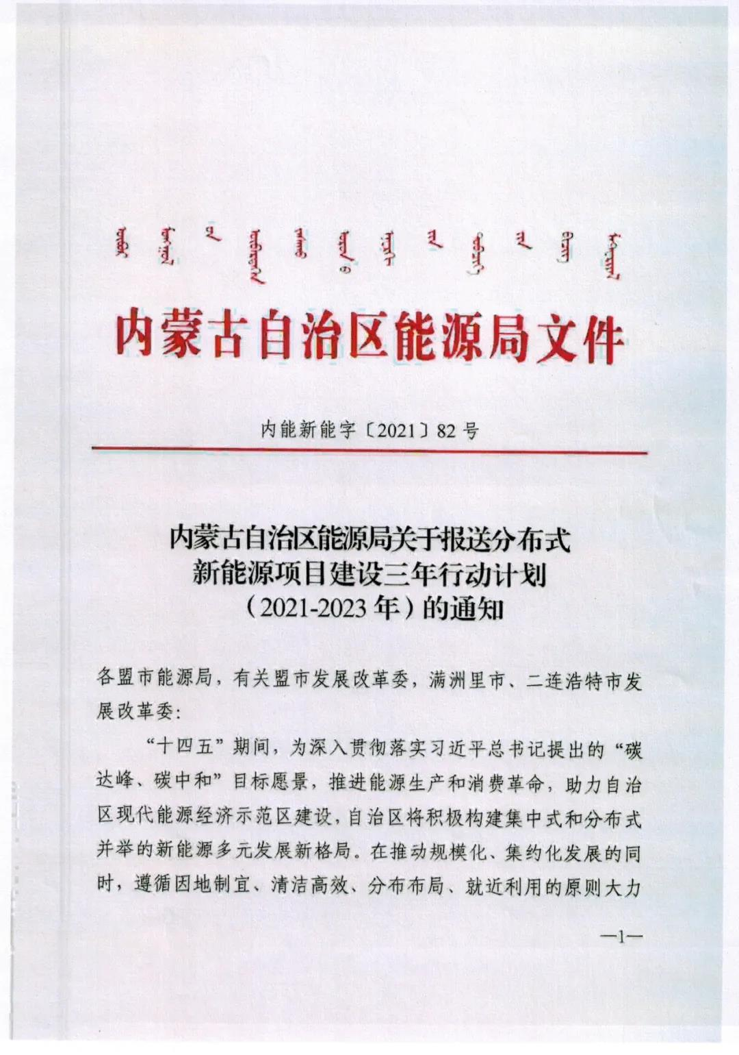 僅限工商業(yè)分布式 內(nèi)蒙古開(kāi)始申報(bào)2021-2023年分布式新能源項(xiàng)目建設(shè)三年行動(dòng)計(jì)劃2021-02-22 10:54來(lái)源:內(nèi)蒙古太陽(yáng)能行業(yè)協(xié)會(huì)作者:內(nèi)蒙古太陽(yáng)能行業(yè)協(xié)會(huì)瀏覽數(shù):8次