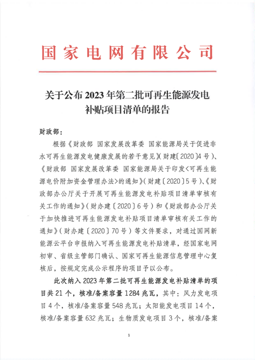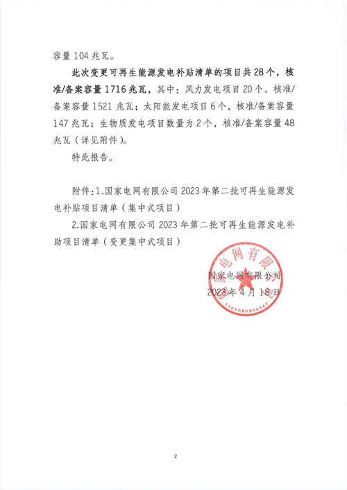 近日,國(guó)家電網(wǎng)關(guān)于公布2023年第二批可再生能源發(fā)電補(bǔ)貼項(xiàng)目清單的報(bào)告。 公告顯示,此次納入2023年第二批可再生能源發(fā)電補(bǔ)貼清單的項(xiàng)目共21個(gè),核準(zhǔn)/備案容量1284兆瓦,其中:風(fēng)力發(fā)電項(xiàng)目4個(gè),核準(zhǔn)/備案容量548兆瓦;太陽(yáng)能發(fā)電項(xiàng)目14個(gè),核準(zhǔn)/備案容量632兆瓦;生物質(zhì)發(fā)電項(xiàng)目3個(gè),核準(zhǔn)/備案容量104兆瓦。 此次變更可再生能源發(fā)電補(bǔ)貼清單的項(xiàng)目共28個(gè),核準(zhǔn)/備案容量1716兆瓦,其中:風(fēng)力發(fā)電項(xiàng)目20個(gè),核準(zhǔn)/備案容量1521 兆瓦;太陽(yáng)能發(fā)電項(xiàng)目6個(gè),核準(zhǔn)/備案容量147兆瓦;生物質(zhì)發(fā)電項(xiàng)目數(shù)量為2個(gè),核準(zhǔn)/備案容量48兆瓦。 原文如下: 關(guān)于公布2023年第二批可再生能源發(fā)電補(bǔ)貼項(xiàng)目清單的報(bào)告 根據(jù)《財(cái)政部 國(guó)家發(fā)展改革委 國(guó)家能源局關(guān)于促進(jìn)非水可再生能源發(fā)電健康發(fā)展的若干意見》(財(cái)建〔2020〕4號(hào))、《財(cái)政部 國(guó)家發(fā)展改革委 國(guó)家能源局關(guān)于印發(fā)<可再生能源電價(jià)附加資金管理辦法>的通知》(財(cái)建〔2020〕5號(hào))、《財(cái)政部辦公廳關(guān)于開展可再生能源發(fā)電補(bǔ)貼項(xiàng)目清單審核有關(guān)工作的通知》(財(cái)辦建〔2020〕6號(hào))和《財(cái)政部辦公廳關(guān)于加快推進(jìn)可再生能源發(fā)電補(bǔ)貼項(xiàng)目清單審核有關(guān)工作的通知》(財(cái)辦建〔2020〕70號(hào))等文件要求,對(duì)通過(guò)國(guó)網(wǎng)新能源云平臺(tái)申報(bào)納入可再生能源發(fā)電補(bǔ)貼清單,經(jīng)國(guó)家電網(wǎng)初審、省級(jí)主管部門確認(rèn)、國(guó)家可再生能源信息管理中心復(fù)核后,按規(guī)定完成公示程序的項(xiàng)目予以公布。 此次納入2023年第二批可再生能源發(fā)電補(bǔ)貼清單的項(xiàng)目共21個(gè),核準(zhǔn)/備案容量1284兆瓦,其中:風(fēng)力發(fā)電項(xiàng)目4個(gè),核準(zhǔn)/備案容量548兆瓦;太陽(yáng)能發(fā)電項(xiàng)目14個(gè),核準(zhǔn)/備案容量632兆瓦;生物質(zhì)發(fā)電項(xiàng)目3個(gè),核準(zhǔn)/備案容量104兆瓦。 此次變更可再生能源發(fā)電補(bǔ)貼清單的項(xiàng)目共28個(gè),核準(zhǔn)/備案容量1716兆瓦,其中:風(fēng)力發(fā)電項(xiàng)目20個(gè),核準(zhǔn)/備案容量1521 兆瓦;太陽(yáng)能發(fā)電項(xiàng)目6個(gè),核準(zhǔn)/備案容量147兆瓦;生物質(zhì)發(fā)電項(xiàng)目數(shù)量為2個(gè),核準(zhǔn)/備案容量48兆瓦。 國(guó)家電網(wǎng)有限公司 2023年4月18日