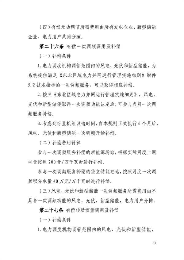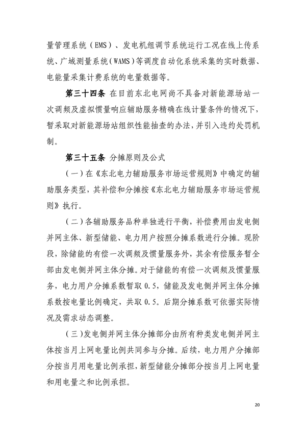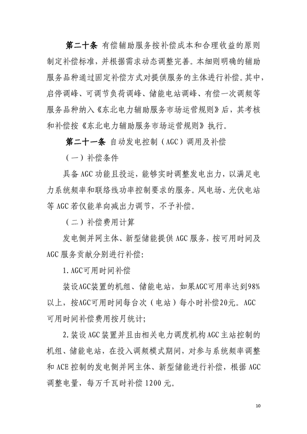 明確新型儲能各類補償!《東北區(qū)域電力運行管理實施細則(模擬運行稿)》印發(fā)4月14日,東北能監(jiān)局印發(fā)《東北區(qū)域電力運行管理實施細則(模擬運行稿)》《東北區(qū)域電力輔助服務管理實施細則(模擬運行稿)》。其中,《東北區(qū)域電力運行管理實施細則(模擬運行稿)》提出:按照“誰提供、誰獲利;誰受益、誰承擔”的原則,結(jié)合東北區(qū)域電網(wǎng)運行需求和特性,對有償輔助服務進行補償和分攤?,F(xiàn)階段,有償服務的補償費用主要由發(fā)電側(cè)并網(wǎng)主體分攤,后期結(jié)合各省實際與實施情況逐步將新型儲能、市場化電力用戶納入補償費用分攤范圍。 AGC: 發(fā)電側(cè)并網(wǎng)主體、新型儲能提供AGC服務,按可用時間及AGC服務貢獻分別進行補償。針對新型儲能,如果AGC可用率達到98%以上,按AGC可用時間每臺次(電站)每小時補償20元。根據(jù)AGC調(diào)整電量,每萬千瓦時補償1200元。AGC服務所需補償費用由發(fā)電企業(yè)、新型儲能企業(yè)和電力用戶共同分攤。 新型儲能電站調(diào)峰調(diào)用及補償: 新型儲能參與調(diào)峰輔助服務,參照《東北電力輔助服務市場運營規(guī)則》執(zhí)行。新型儲能的調(diào)峰(頂峰)費用在參與東北調(diào)峰輔助服務全體市場化用戶中分攤;新型儲能的調(diào)峰(填谷)費用在新能源、核電及未達到調(diào)峰基準負荷率以下的火電企業(yè)中分攤。 一次調(diào)頻: 參與一次調(diào)頻服務補償?shù)男履茉磮稣?,根?jù)實際月度上網(wǎng)電量按照200元/萬千瓦時進行補償。參與一次調(diào)頻服務補償?shù)莫毩?span style="font-weight:bolder;">儲能電站,按照月度一次調(diào)頻積分電量40萬元/萬千瓦時進行補償。風電、光伏和新型儲能一次調(diào)頻服務所需費用由不具備一次調(diào)頻功能的風電、光伏,新型儲能,電力用戶分攤。 虛擬慣量: 參與虛擬慣量響應服務補償?shù)男履茉磮稣?,根?jù)實際月度上網(wǎng)電量按照50元/萬千瓦時進行補償。參與虛擬慣量響應服務補償?shù)?span style="font-weight:bolder;">新型儲能,根據(jù)裝機容量按照月度0.8萬元/萬千瓦進行補償。 對于儲能的有償一次調(diào)頻及慣量服務,電力用戶分攤系數(shù)暫取0.5,儲能及發(fā)電側(cè)并網(wǎng)主體分攤系數(shù)按電量比例確定,共取0.5。 新型儲能某項輔助服務分攤費用=新型儲能分攤系數(shù)×月度該項輔助服務總補償費用×新型儲能月度上網(wǎng)電量和用電量之和/各新型儲能總月度上網(wǎng)電量和用電量之和。