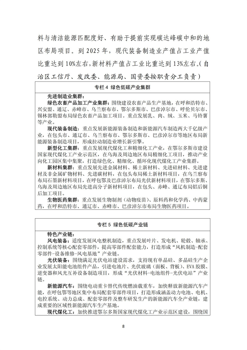 5月4日,內(nèi)蒙古自治區(qū)工業(yè)和信息化廳發(fā)布內(nèi)蒙古自治區(qū)工業(yè)領(lǐng)域碳達(dá)峰實(shí)施方案,關(guān)于光伏裝備,指出圍繞滿足光伏電站建設(shè)需求,支持現(xiàn)有單晶硅、多晶硅生產(chǎn)企業(yè)發(fā)展太陽(yáng)能電池組件產(chǎn)品,引進(jìn)電池片、光伏玻璃(面板、背板)、EVA 膠膜、 逆變器和風(fēng)光互補(bǔ)設(shè)備制造項(xiàng)目,形成“光伏材料-電池組件-光伏電站”產(chǎn)業(yè)鏈。 原文如下: 對(duì)內(nèi)蒙古自治區(qū)工業(yè)領(lǐng)域碳達(dá)峰實(shí)施方案的公布 為深入貫徹落實(shí)黨中央、國(guó)務(wù)院,自治區(qū)黨委、人民政府關(guān)于碳達(dá)峰碳中和決策部署,切實(shí)做好內(nèi)蒙古自治區(qū)工業(yè)領(lǐng)域碳達(dá)峰碳中和工作,內(nèi)蒙古自治區(qū)工業(yè)和信息化廳編制完成了《內(nèi)蒙古自治區(qū)工業(yè)領(lǐng)域碳達(dá)峰實(shí)施方案》,并已由自治區(qū)碳達(dá)峰碳中和工作領(lǐng)導(dǎo)小組印發(fā),現(xiàn)對(duì)外公布。 2023年5月4日 附件:內(nèi)蒙古自治區(qū)工業(yè)領(lǐng)域碳達(dá)峰實(shí)施方案