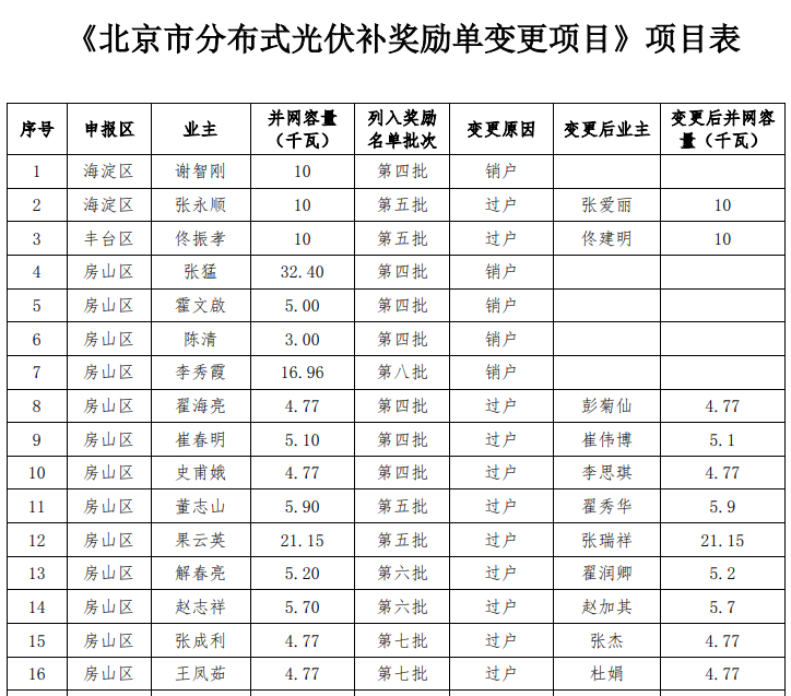 附件二:《北京市分布式光伏發(fā)電項目補貼名單(個人, 2021 年第一次)》項目表(點擊預覽)