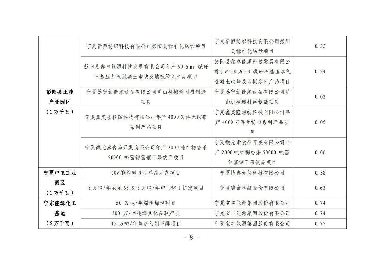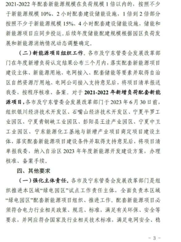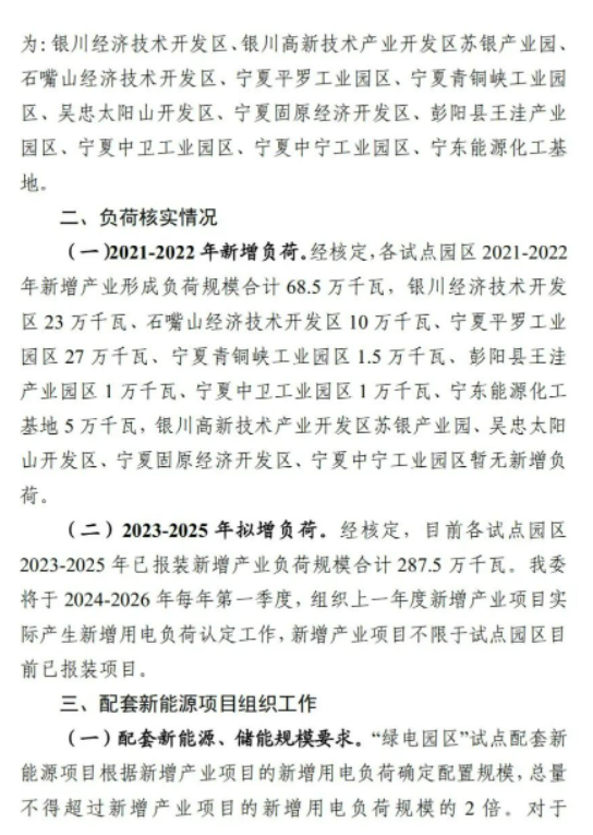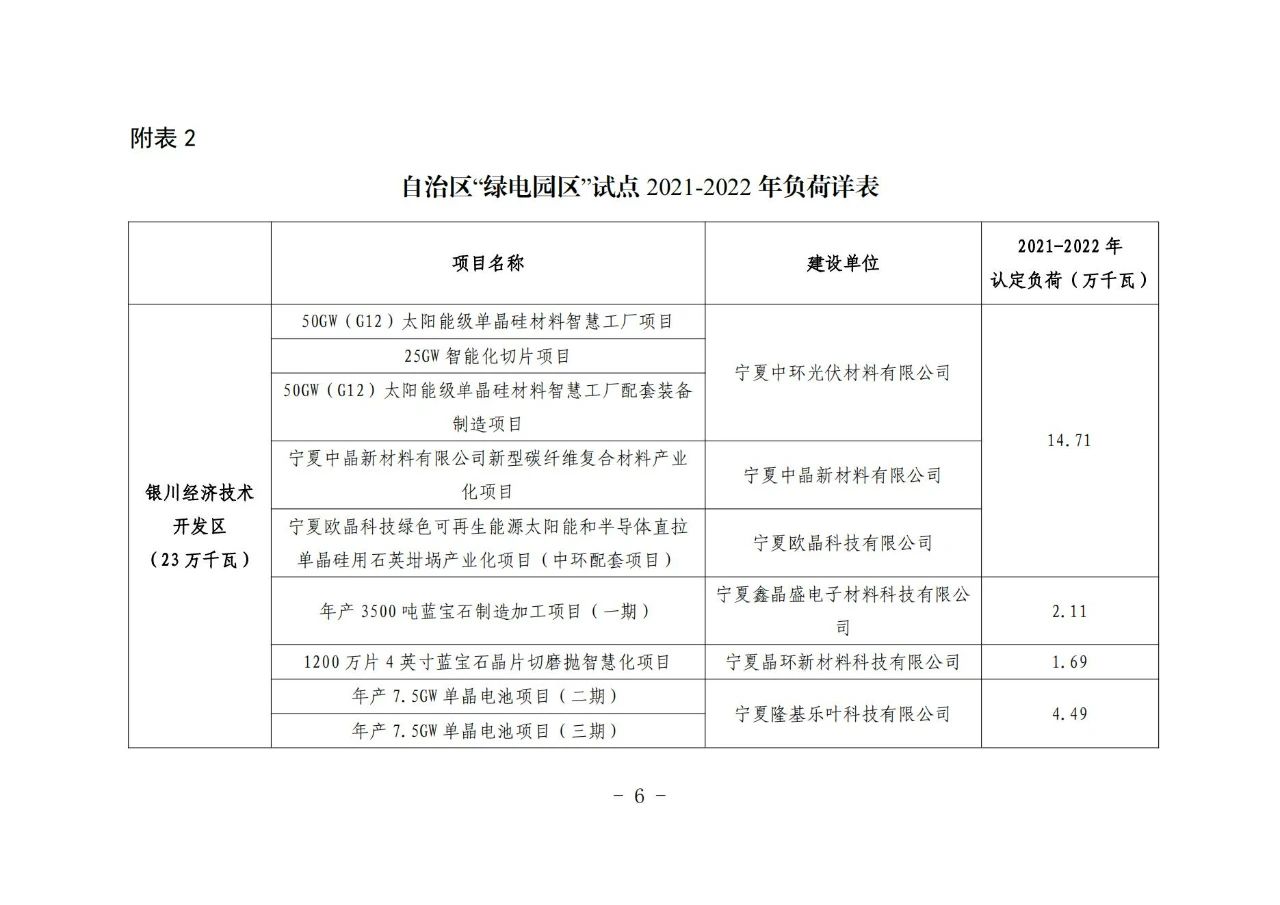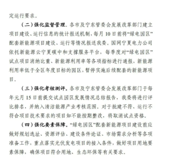 5月9日,寧夏發(fā)改委下發(fā)《關(guān)于“綠電園區(qū)”試點(diǎn)有關(guān)工作的通知》,擬對11個(gè)納入“綠電園區(qū)”試點(diǎn)的園區(qū)新增與擬增負(fù)荷配套新能源。根據(jù)文件,本次納入試點(diǎn)的11個(gè)園區(qū)其2021—2022年新增負(fù)荷為685MW,2023—2025年擬增負(fù)荷為2.875GW,以新增用電負(fù)荷確定配置新能源規(guī)模。需要注意的是,配套新能源規(guī)模不得超過新增用電負(fù)荷的2倍,2021-2022年配套新能源規(guī)模在負(fù)荷規(guī)模1倍以內(nèi)的,按照不少于新能源規(guī)模10%、2 小時(shí)配套建設(shè)儲(chǔ)能設(shè)施,1倍到2倍部分按照不少于新能源規(guī)模15%、4小時(shí)配套建設(shè)儲(chǔ)能設(shè)施。后續(xù)年度儲(chǔ)能配建規(guī)模根據(jù)園區(qū)負(fù)荷發(fā)展和新能源消納情況動(dòng)態(tài)調(diào)整確定。 在項(xiàng)目組織方面,新增負(fù)荷配套新能源項(xiàng)目由各市及寧東管委會(huì)發(fā)展改革部門會(huì)同入選工業(yè)園區(qū)商定項(xiàng)目建設(shè)主體,落實(shí)配套新能源項(xiàng)目建設(shè)條件并取得支持意見后,將項(xiàng)目清單報(bào)于發(fā)改委,納入自治區(qū)2023年年度新能源開發(fā)建設(shè)方案,辦理核準(zhǔn)、備案手續(xù),于6月30日前報(bào)送。 需要強(qiáng)調(diào)的是,國網(wǎng)寧夏將每季度對“綠電園區(qū)”試點(diǎn)項(xiàng)目消納比重、新能源利用率等各項(xiàng)指標(biāo)進(jìn)行通報(bào),新能源利用率低于全區(qū)年度目標(biāo)的園區(qū),暫停實(shí)施后續(xù)配套的新能源項(xiàng)目。 另外,從“綠電園區(qū)”試點(diǎn)負(fù)荷表來看,新能源制造產(chǎn)業(yè)所需負(fù)荷約450MW左右,主要以硅料、硅片、電池片等項(xiàng)目為主,其投資企業(yè)包括中環(huán)、中晶、隆基、潤陽、協(xié)鑫等光伏企業(yè)。