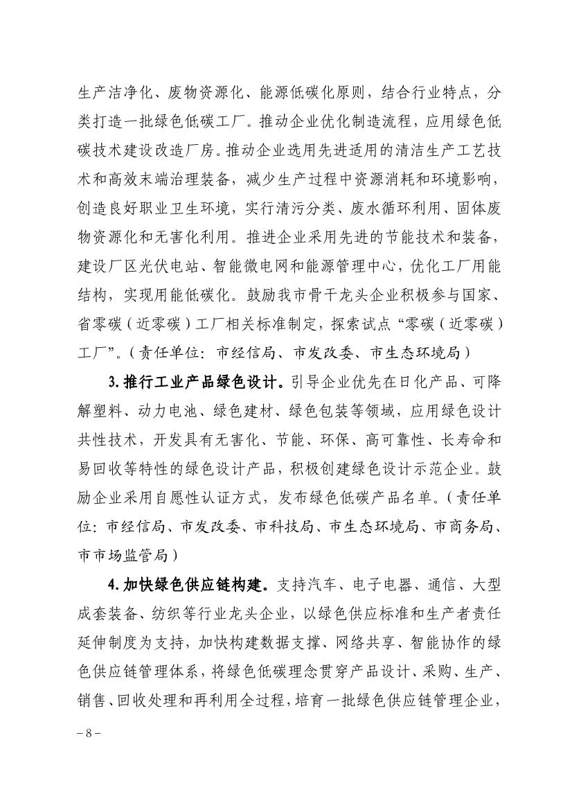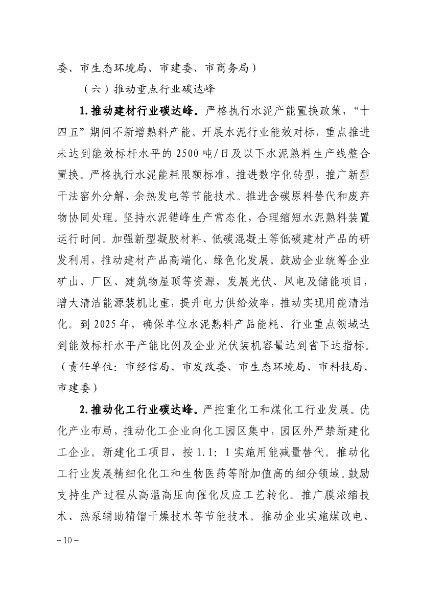 5月26日,杭州印發(fā)《杭州市工業(yè)領(lǐng)域碳達(dá)峰實(shí)施方案》?!斗桨浮诽岢?,支持工業(yè)企業(yè)實(shí)施傳統(tǒng)能源改造,推動(dòng)能源消費(fèi)結(jié)構(gòu)綠色低碳轉(zhuǎn)型,鼓勵(lì)開發(fā)利用可再生能源,持續(xù)提高光伏、風(fēng)電、水電等可再生能源使用比例。開展工業(yè)綠色低碳微電網(wǎng)建設(shè),鼓勵(lì)工廠、園區(qū)加快屋頂光伏、分布式風(fēng)電、多元儲(chǔ)能、高效熱泵、余熱余壓利用、智慧能源管控系統(tǒng)等一體化系統(tǒng)開發(fā)運(yùn)行,推進(jìn)多能高效互補(bǔ)利用。 推進(jìn)企業(yè)采用先進(jìn)的節(jié)能技術(shù)和裝備,建設(shè)廠區(qū)光伏電站、智能微電網(wǎng)和能源管理中心,優(yōu)化工廠用能結(jié)構(gòu),實(shí)現(xiàn)用能低碳化。鼓勵(lì)我市骨干龍頭企業(yè)積極參與國(guó)家、省零碳(近零碳)工廠相關(guān)標(biāo)準(zhǔn)制定,探索試點(diǎn)“零碳(近零碳)工廠”。 統(tǒng)籌布局退役光伏、動(dòng)力電池、風(fēng)力發(fā)電裝置、海洋工程裝備等新興固廢綜合利用,加快探索資源綜合利用技術(shù)路線及產(chǎn)業(yè)發(fā)展路徑。 鼓勵(lì)企業(yè)統(tǒng)籌企業(yè)礦山、廠區(qū)、建筑物屋頂?shù)荣Y源,發(fā)展光伏、風(fēng)電及儲(chǔ)能項(xiàng)目,增大清潔能源裝機(jī)比重,提升電力供給效率,推動(dòng)實(shí)現(xiàn)用能清潔化。到 2025年,確保單位水泥熟料產(chǎn)品能耗、行業(yè)重點(diǎn)領(lǐng)域達(dá)到能效標(biāo)桿水平產(chǎn)能比例及企業(yè)光伏裝機(jī)容量達(dá)到省下達(dá)指標(biāo)。