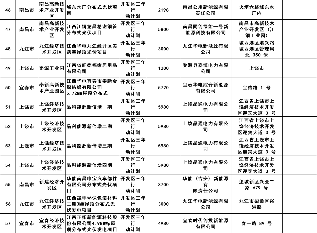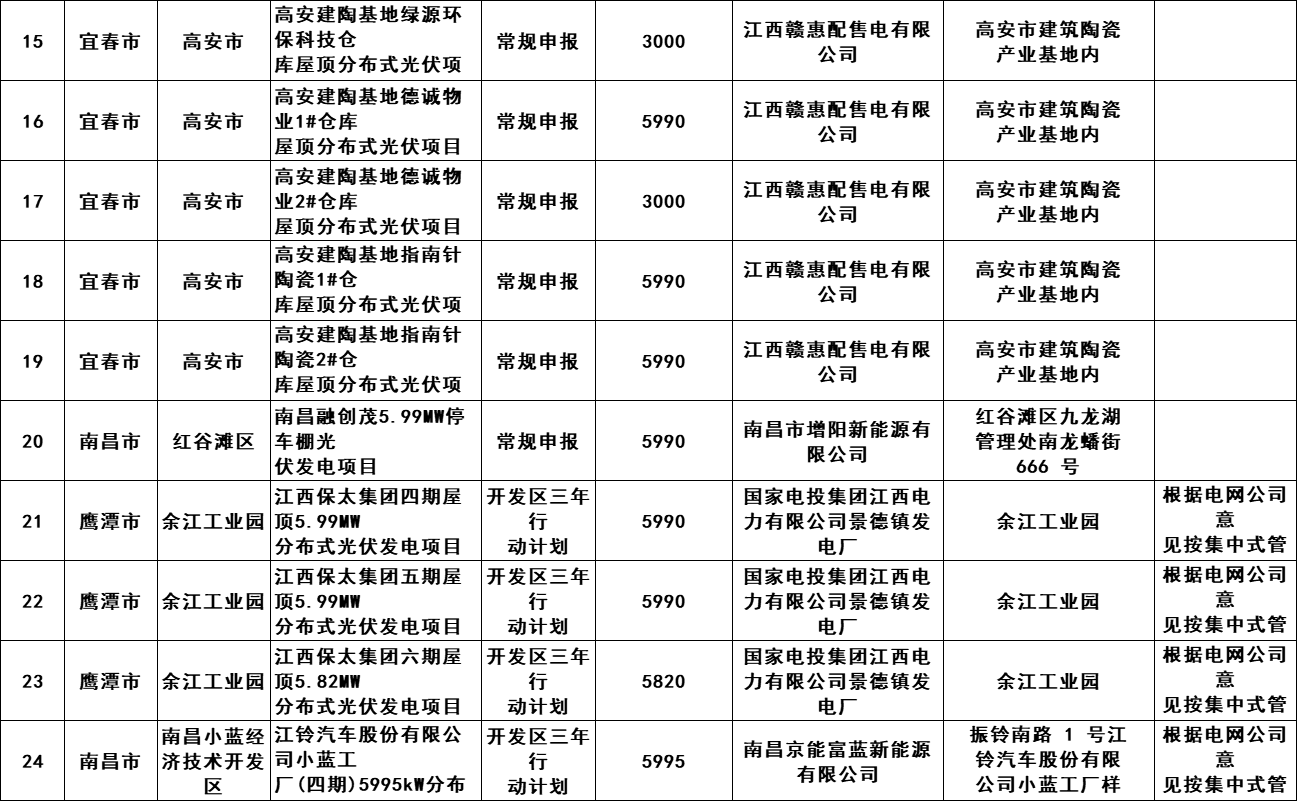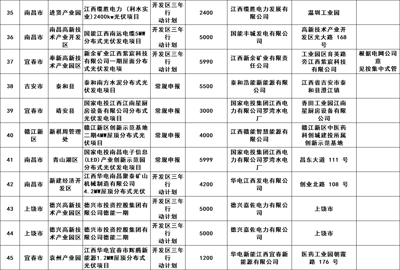 6月5日,江西開發(fā)區(qū)三年行動(dòng)計(jì)劃、整縣開發(fā)試點(diǎn)及全省其他屋頂光伏項(xiàng)目2023年5月競(jìng)爭(zhēng)性優(yōu)選結(jié)果發(fā)布,共計(jì)57個(gè)項(xiàng)目,規(guī)模268MW。 原文如下: 根據(jù)《江西省整體推進(jìn)開發(fā)區(qū)屋頂光伏建設(shè)三年行動(dòng)計(jì)劃(2022-2024年)》(贛發(fā)改能源〔2022〕27號(hào))與《江西省能源局關(guān)于進(jìn)一步做好整縣屋頂分布式光伏開發(fā)試點(diǎn)工作的通知》(贛能新能字〔2022〕29號(hào))要求,江西省能源局組織開展了開發(fā)區(qū)三年行動(dòng)計(jì)劃、整縣開發(fā)試點(diǎn)及全省其他屋頂光伏項(xiàng)目2023年5月競(jìng)爭(zhēng)性優(yōu)選工作,江西省可再生能源信息中心對(duì)項(xiàng)目材料進(jìn)行合規(guī)性審查,省電網(wǎng)公司對(duì)電網(wǎng)消納材料進(jìn)行合規(guī)性審查,經(jīng)省能源局同意,現(xiàn)將優(yōu)選結(jié)果予以線上公布。各地應(yīng)在保障安全的前提下組織好項(xiàng)目建設(shè)工作,并督促已開工的項(xiàng)目在可再生能源規(guī)劃項(xiàng)目庫管理系統(tǒng)中及時(shí)更新建設(shè)進(jìn)度,及時(shí)開展建檔立卡工作。