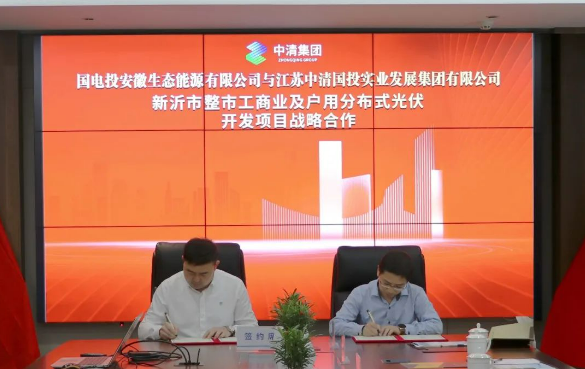 潮起揚(yáng)帆,正當(dāng)其時(shí)。二季度,圍繞集團(tuán)公司產(chǎn)能效益“雙提升”經(jīng)營(yíng)主線,在全體員工的不懈努力下,取得了不平凡的成績(jī):第十六屆上海SNEC光伏展完美收官,包頭基地順利投產(chǎn),淮北基地陸續(xù)開(kāi)工,東至基地投產(chǎn)在即,新疆克拉瑪依基地簽約,新沂基地迎來(lái)一批批國(guó)內(nèi)外考察團(tuán)……隨著眼下新沂市整市工商業(yè)、戶(hù)用分布式光伏開(kāi)發(fā)項(xiàng)目及570兆瓦光伏組件供貨協(xié)議的成功簽約,“中清的足跡”不斷在大步拓展。 01、新沂整市分布式光伏開(kāi)發(fā)項(xiàng)目簽約 高效低成本實(shí)現(xiàn)能源系統(tǒng)的平穩(wěn)交替和優(yōu)化運(yùn)營(yíng)始終是中清的“致勝法寶”。當(dāng)天,在與會(huì)人員的共同見(jiàn)證下,國(guó)電投安徽生態(tài)能源有限公司副總經(jīng)理江繼波與中清綠電總經(jīng)理陳慶林,就新沂市整市工商業(yè)、戶(hù)用分布式光伏開(kāi)發(fā)項(xiàng)目簽約戰(zhàn)略合作。