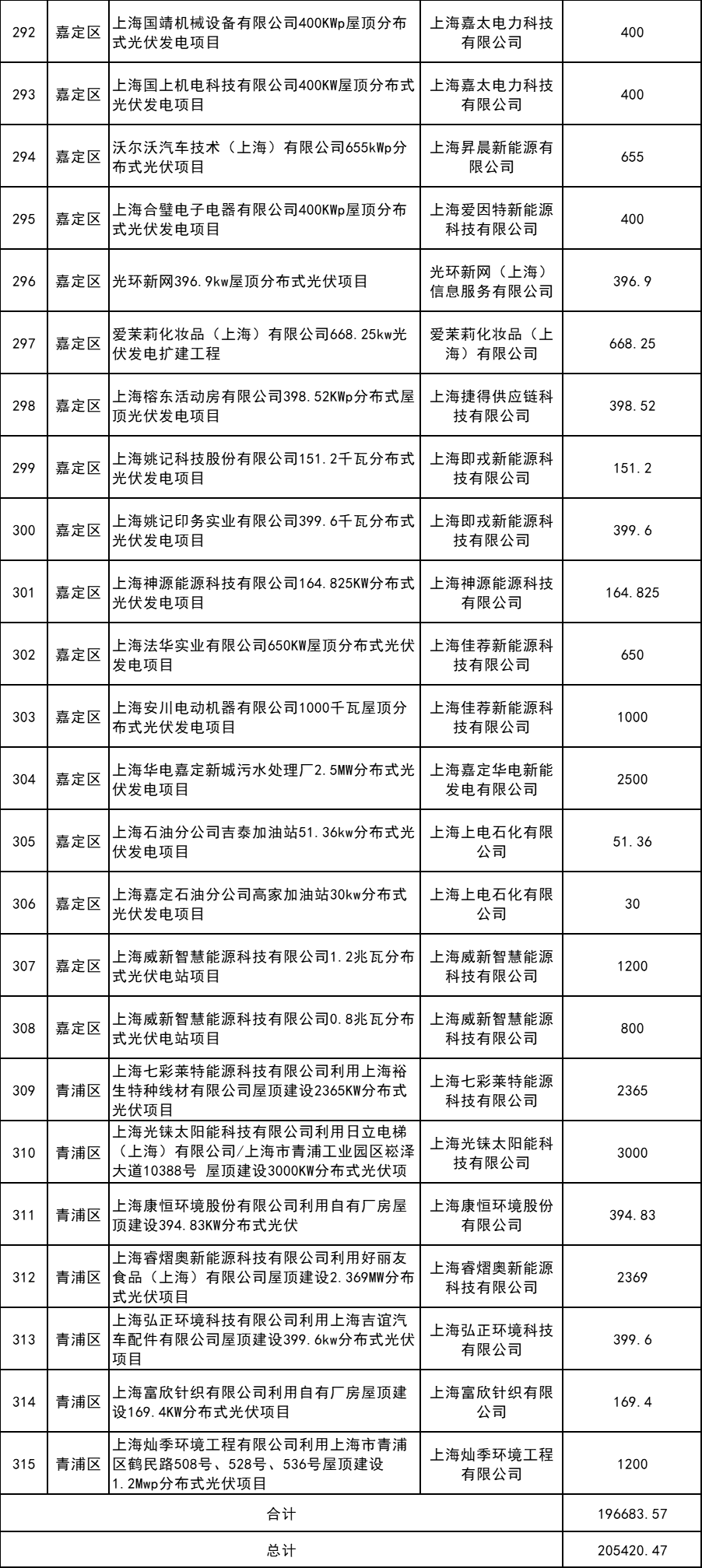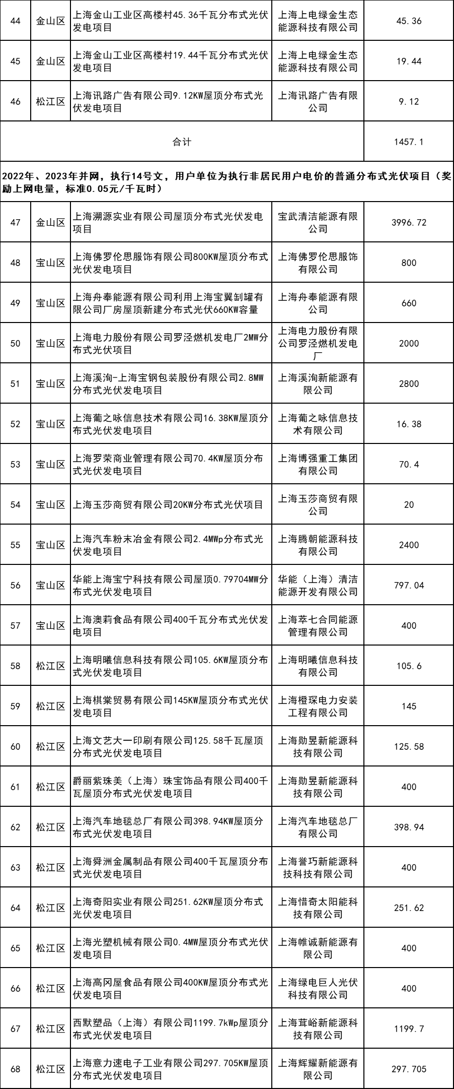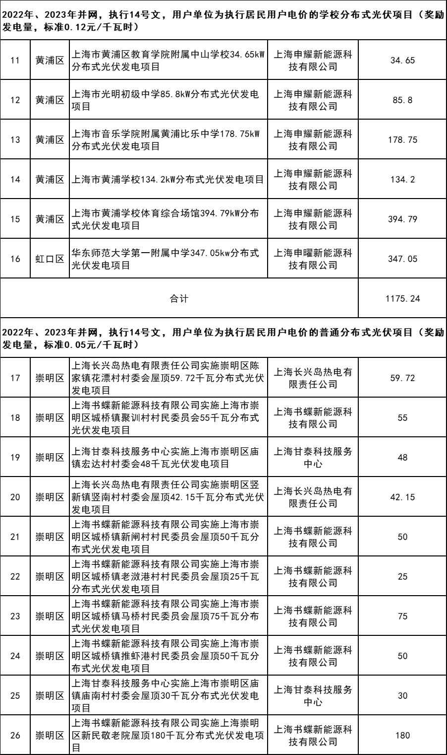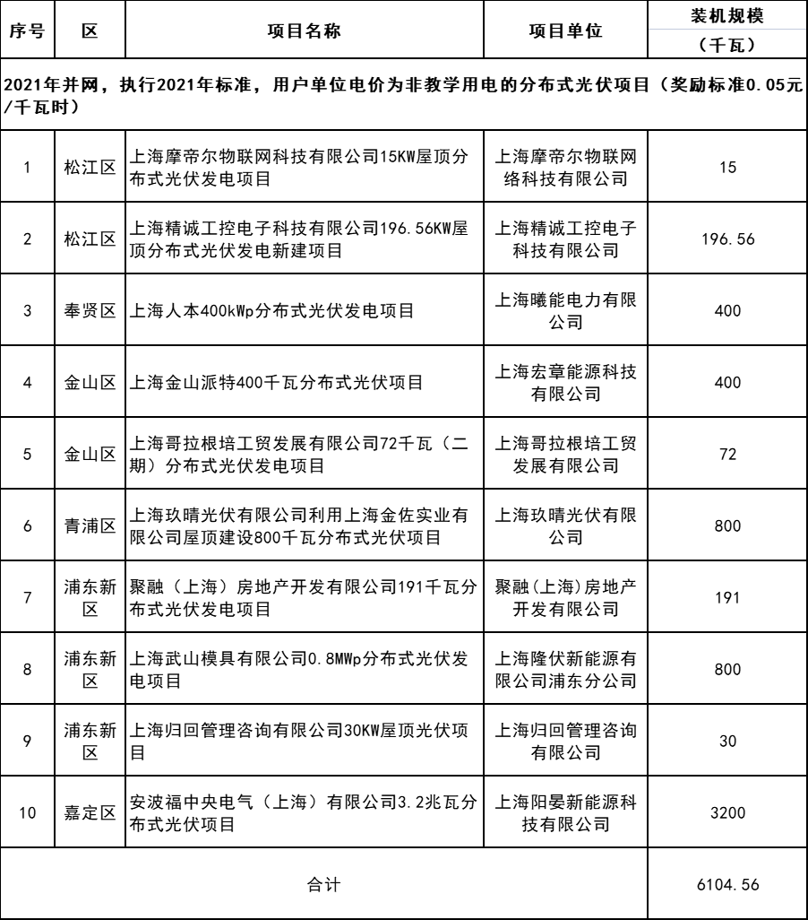 6月13日,上海市發(fā)改委發(fā)布2023年第一批可再生能源和新能源發(fā)展專項資金獎勵目錄(草案)公示。 詳情如下: 根據(jù)《上海市可再生能源和新能源發(fā)展專項資金扶持辦法(2020版)》(滬發(fā)改規(guī)范〔2020〕7號,以下稱“7號文”)、《上海市可再生能源和新能源發(fā)展專項資金扶持辦法》(滬發(fā)改規(guī)范〔2022〕14號,以下稱“14號文”),市發(fā)展改革委組織開展了2023年度第一批可再生能源和新能源發(fā)展專項資金獎勵目錄的核實確認工作。 經(jīng)各區(qū)發(fā)改委初審、申請,并委托市節(jié)能減排中心評估核實,擬將以下項目納入2023年第一批可再生能源和新能源發(fā)展專項資金獎勵目錄,現(xiàn)予公示。公示日期:2023年6月13日-6月19日;公示電話:021-23119484。 附件:1.2023年第一批上海市可再生能源和新能源專項資金獎勵項目表(海上風電項目) 2.2023年第一批上海市可再生能源和新能源專項資金獎勵項目表(企業(yè)分布式光伏項目) 3.2023年第一批上海市可再生能源和新能源專項資金獎勵項目表(居民分布式光伏項目) 4.2023年第一批上海市可再生能源和新能源專項資金獎勵項目表(變更項目) 上海市發(fā)展和改革委員會 2023年6月12日 附件1:2023年第一批上海市可再生能源和新能源專項資金獎勵項目表(海上風電項目) 附件2:2023年第一批上海市可再生能源和新能源專項資金獎勵項目表(企業(yè)分布式光伏項目) 附件3.2023年第一批上海市可再生能源和新能源專項資金獎勵項目表(居民分布式光伏項目) 附件4 2023年第一批上海市可再生能源和新能源專項資金獎勵項目表(變更項目) (a)企業(yè)分布式光伏項目 (b)居民分布式光伏項目